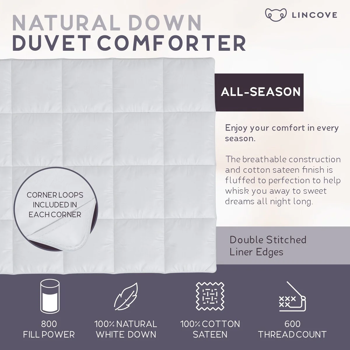 Luxury White Goose Down Comforter �C 330TC Cotton Sateen, 700 Fill Power - 100% Cotton Shell