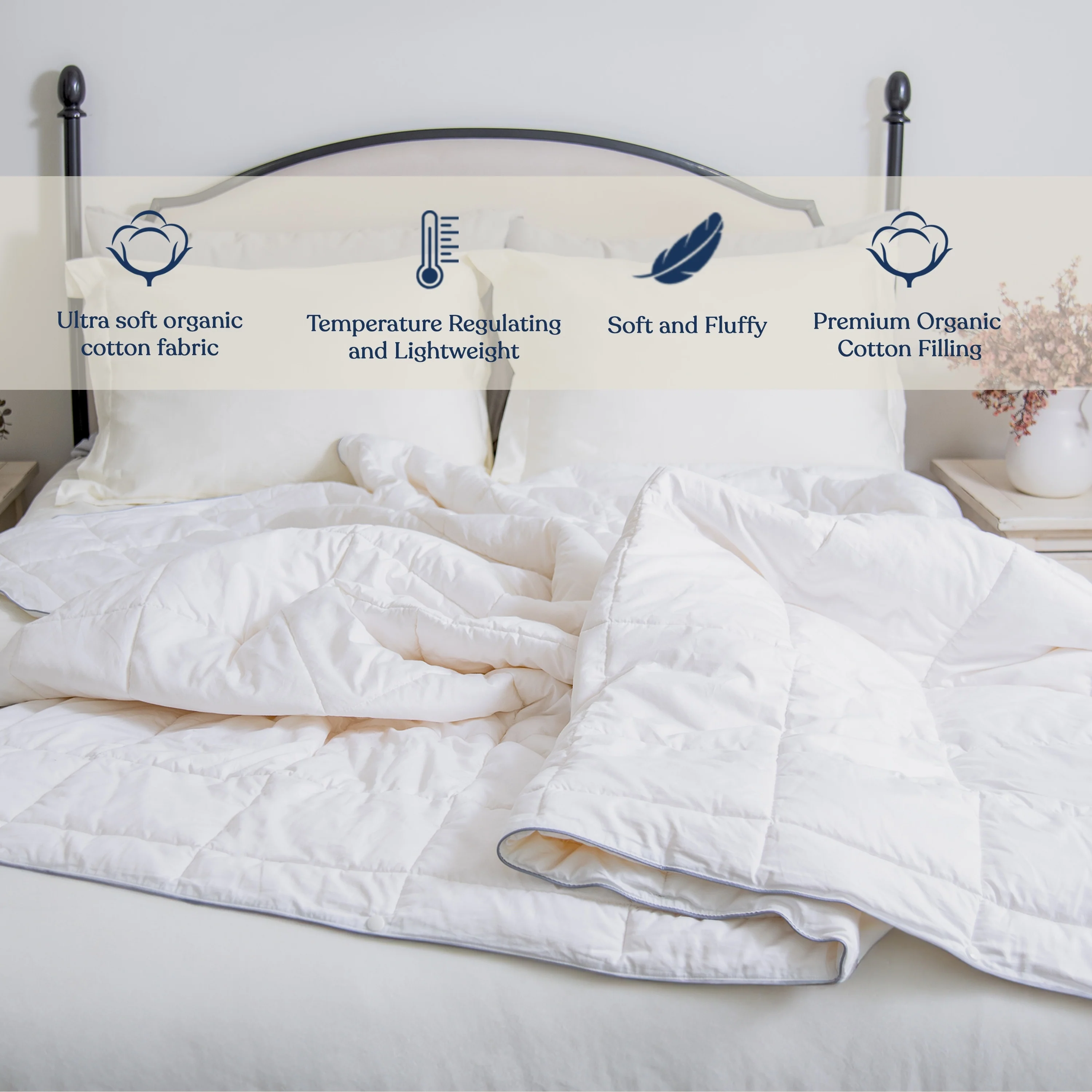 Farm To Home 233 Thread Count Organic Cotton White Feather and Down Comforter