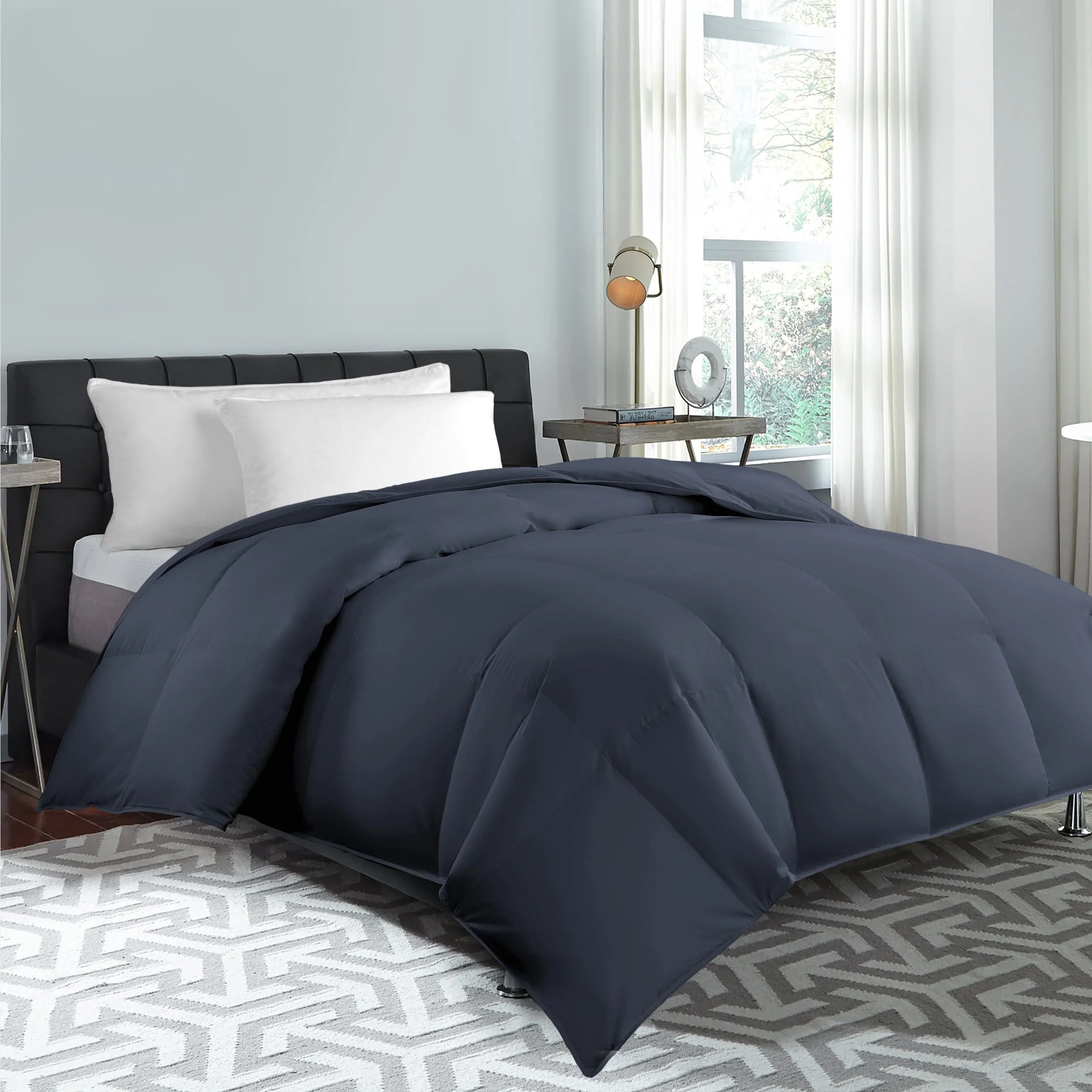 Black King Box Stitch Microfiber Down Alternative Comforter