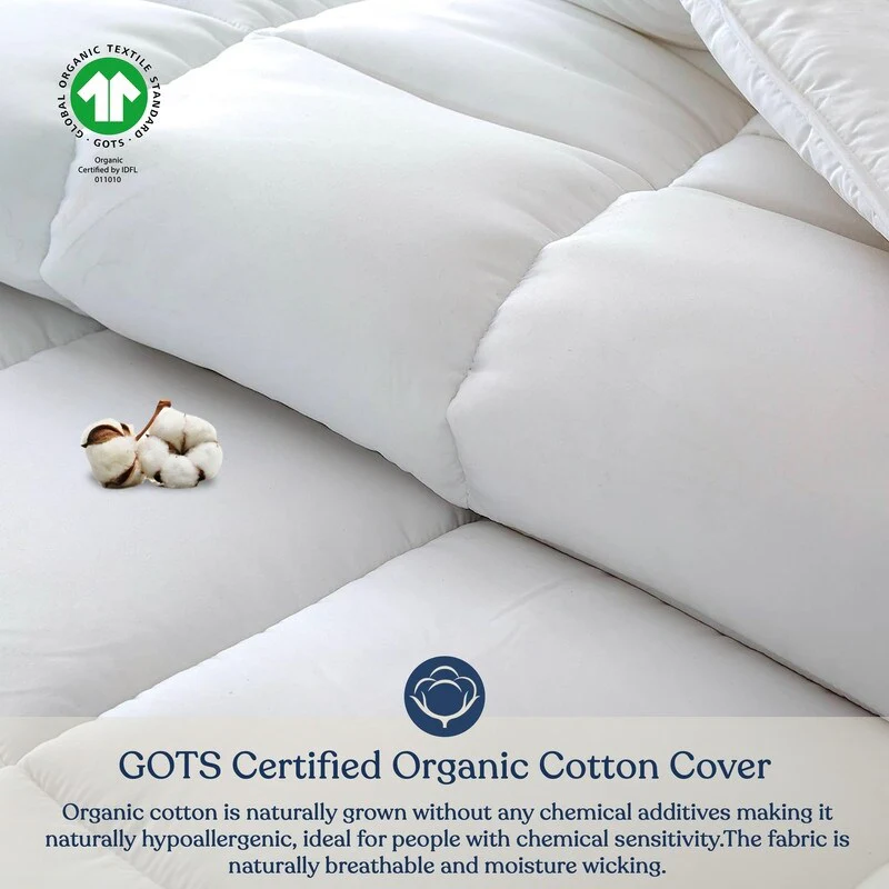 Luxury 800 Fill Power Organic Cotton White Goose Down Comforter Duvet Insert