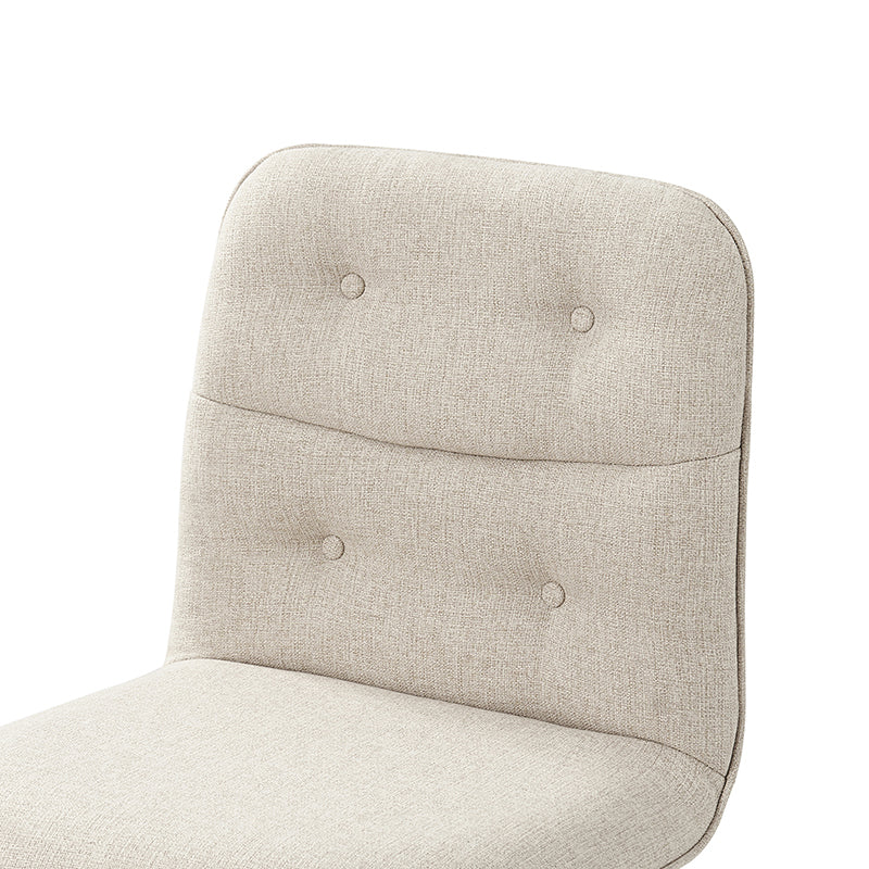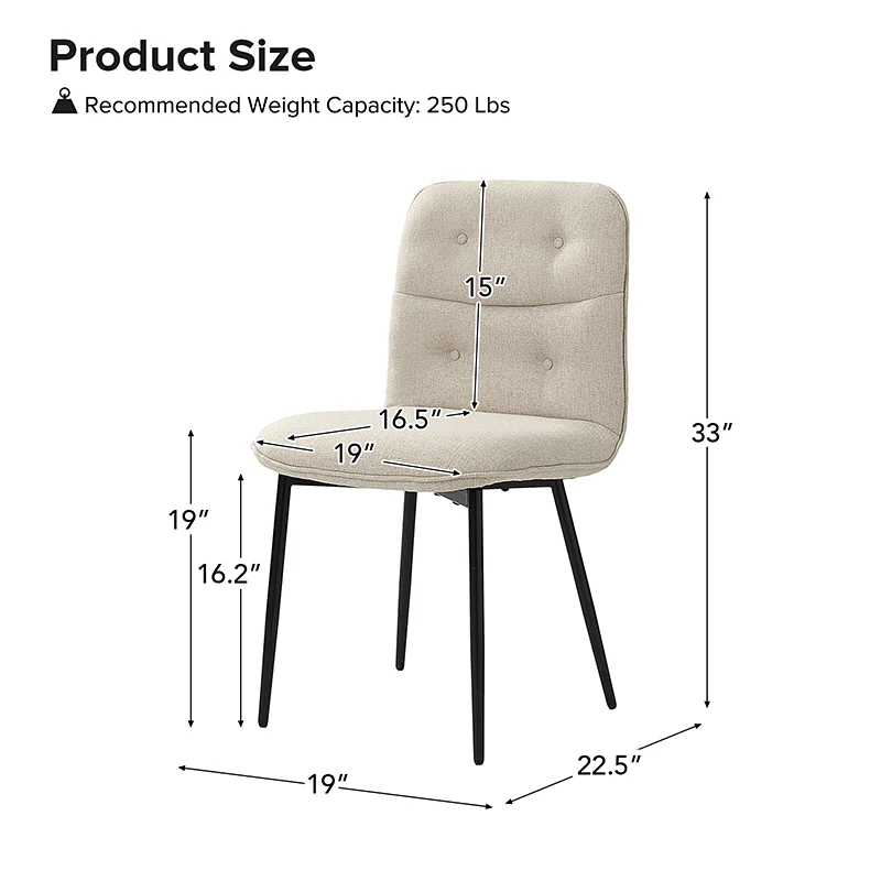 The mid-century modern dining chair set of 2 seamlessly blends style and comfort, featuring sumptuous upholstery in a luxurious blend of velvet and faux linen. Embracing the essence of sophistication, the chair set of 2 boasts meticulous piping and button tufting, creating a timeless appeal. The exquisite channel tufting on the backrest adds a touch of refinement, elevating the overall design. Crafted for comfort, it invites you to linger over meals with its soft cushion and ergonomic structure. Supported by sleek metal legs, the chair set of 2 effortlessly marries form and function. Its fusion of retro charm and contemporary elegance makes it a statement piece, perfect for enhancing any dining space with its understated yet captivating design.
