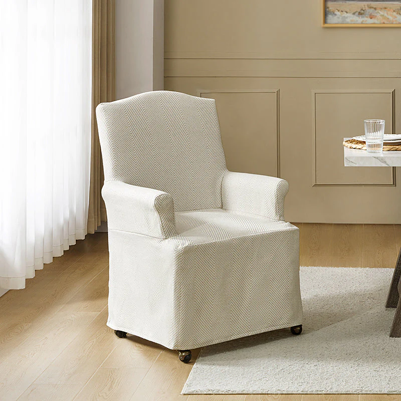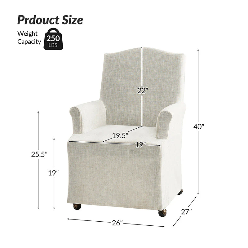 Agnes Traditional Upholstered Roll Arm Slipcovered Dining Chair