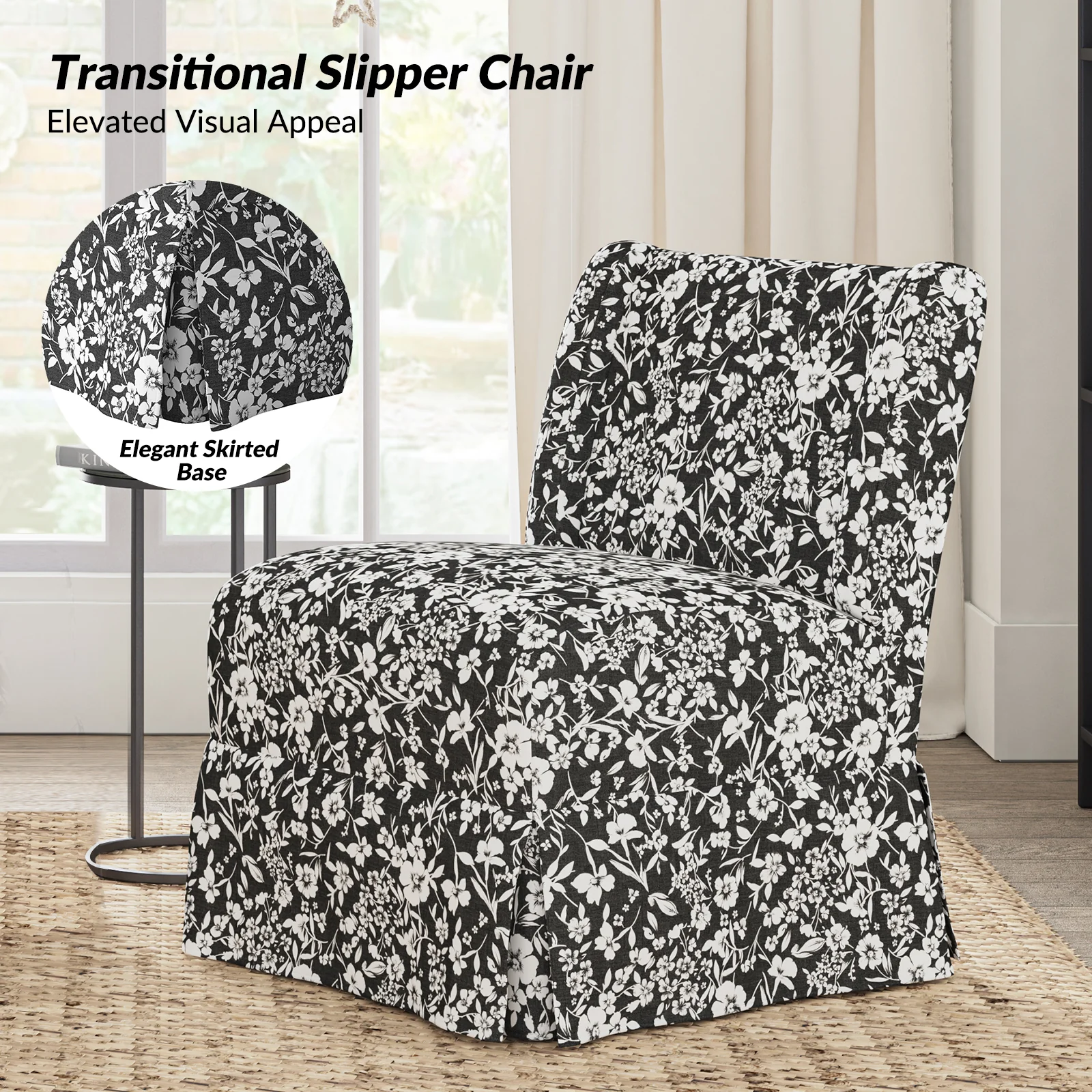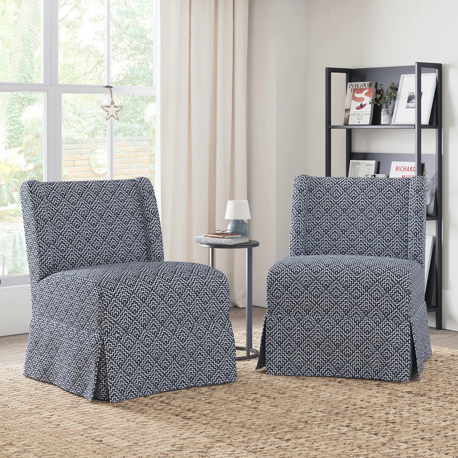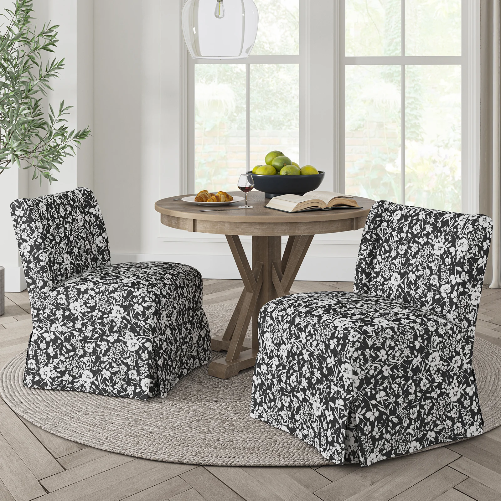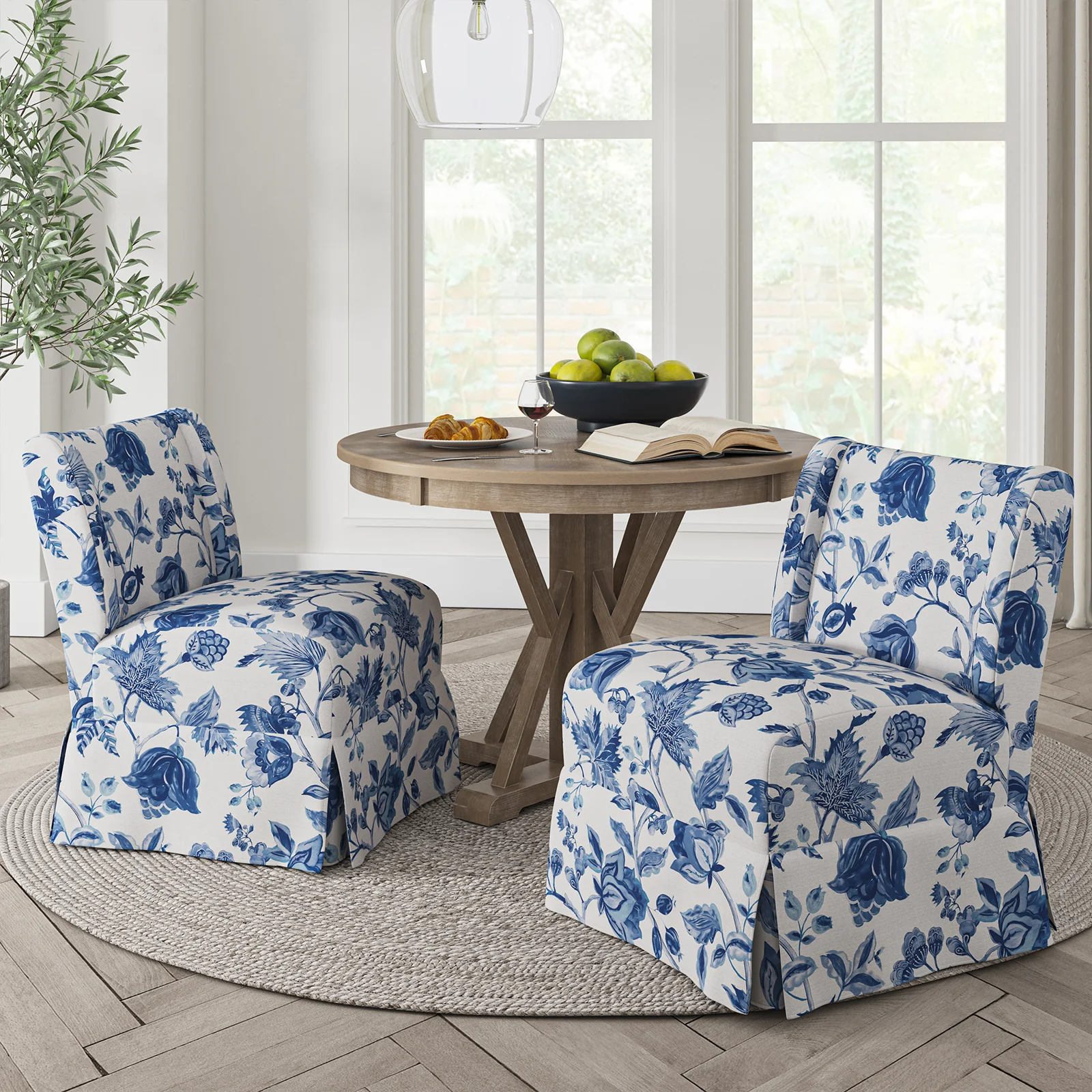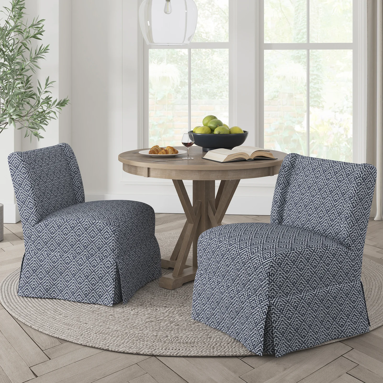 Ellmar Slipper Chair with Washable Slipcover and Solid Wood Legs Set Of 2