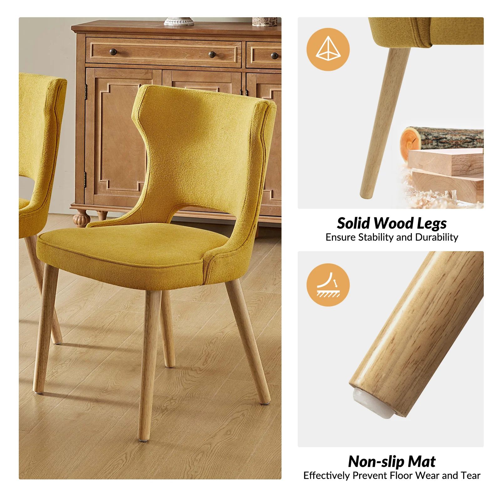 Reynold Modern Upholstered Dining Chair with Solid Wood Leg Set of 2/4/6