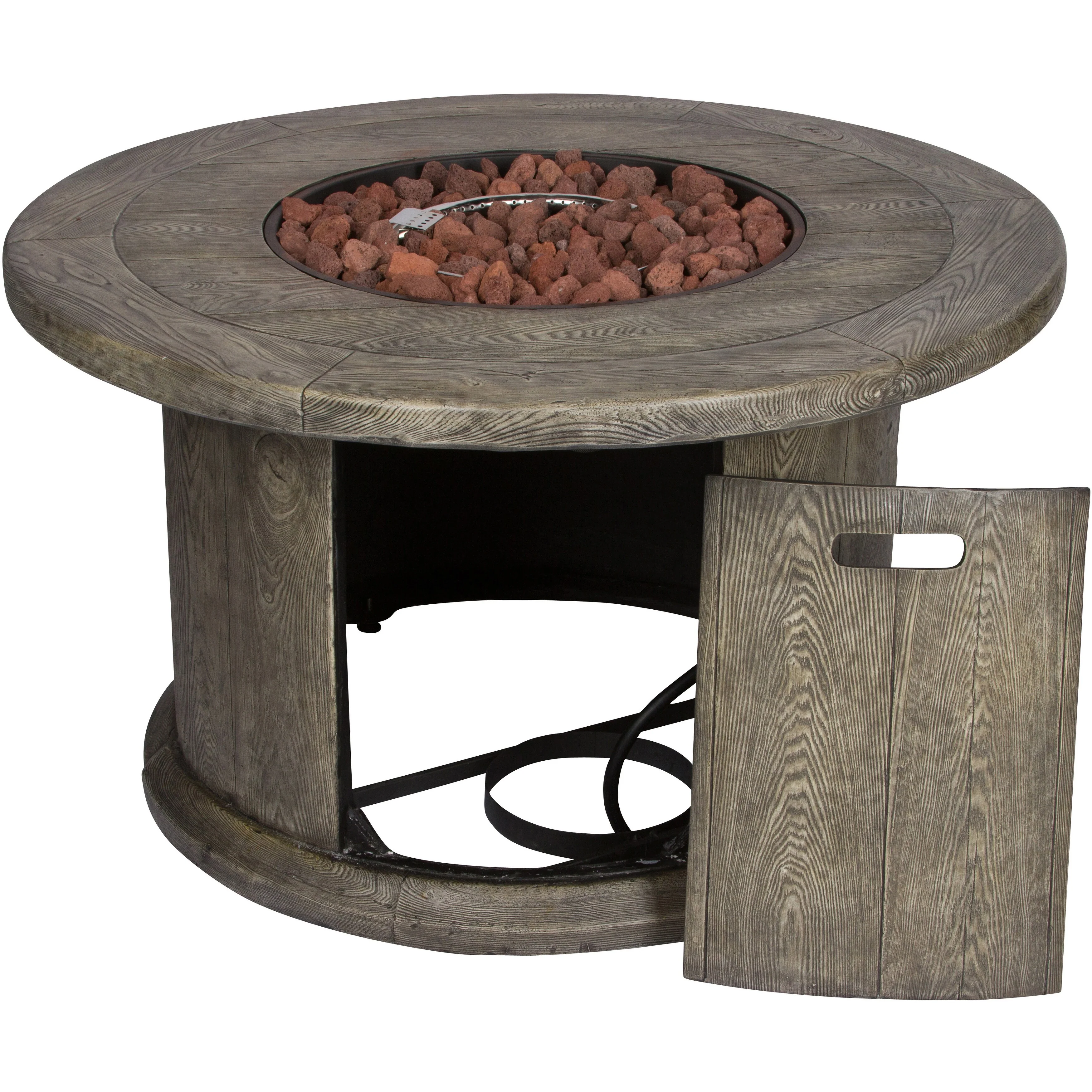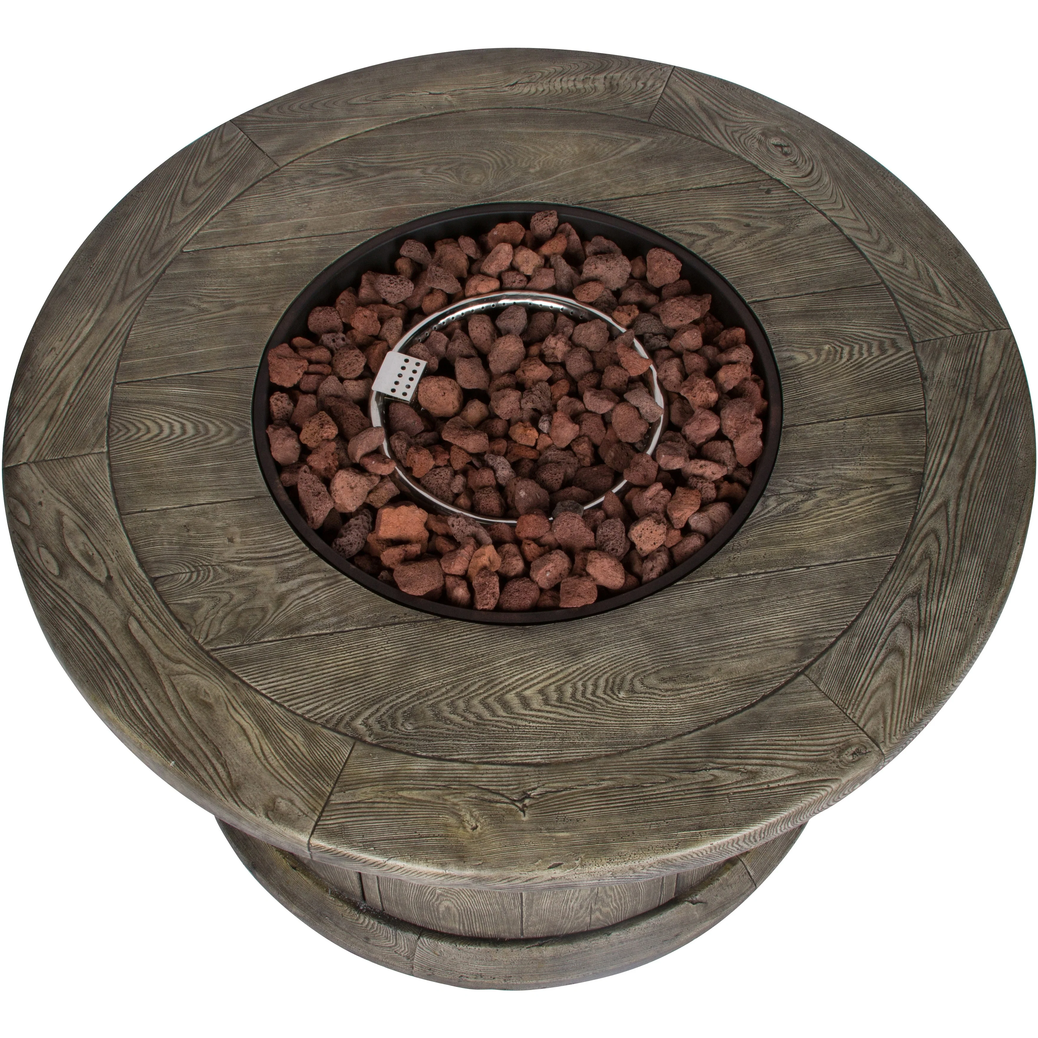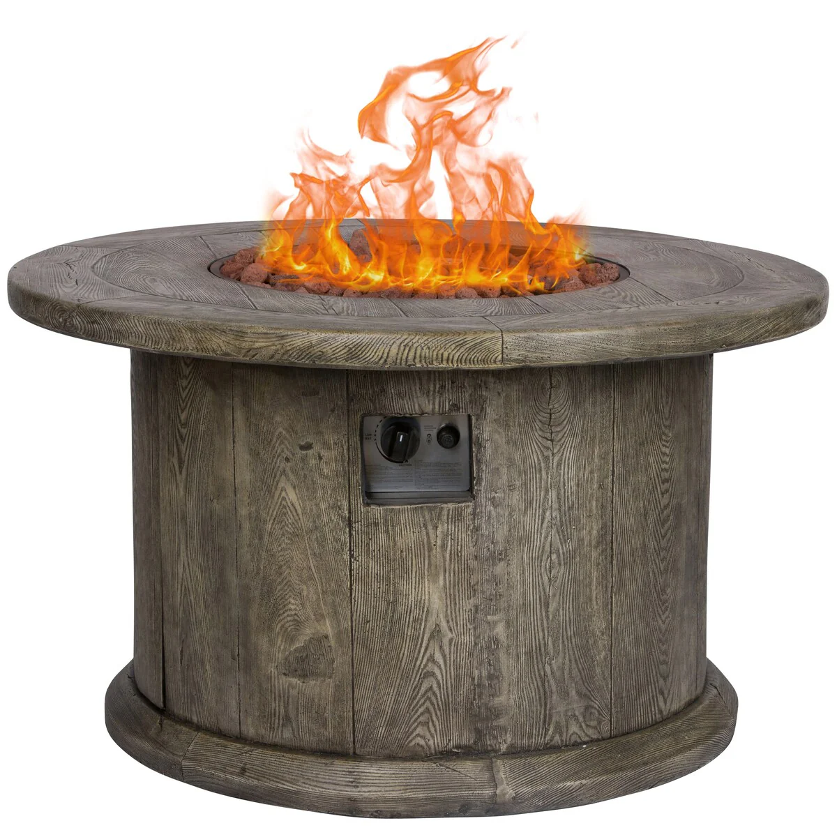 Enhance your outdoor entertainment experience with the Shine Round Outdoor Propane Gas Fire Pit Table. Designed with durable magnesium oxide and a stunning natural wood-like texture, this fire pit adds a touch of elegance to any patio setting. The stainless steel burner offers a robust 50,000 BTU output, ensuring ample warmth for intimate gatherings. Complete with lava rocks that enhance both aesthetics and heat retention, this fire pit is a perfect combination of style and functionality. Additionally, a custom-fit vinyl cover is provided to safeguard your fire pit when it's not in use, keeping it protected and ready for the next gathering.