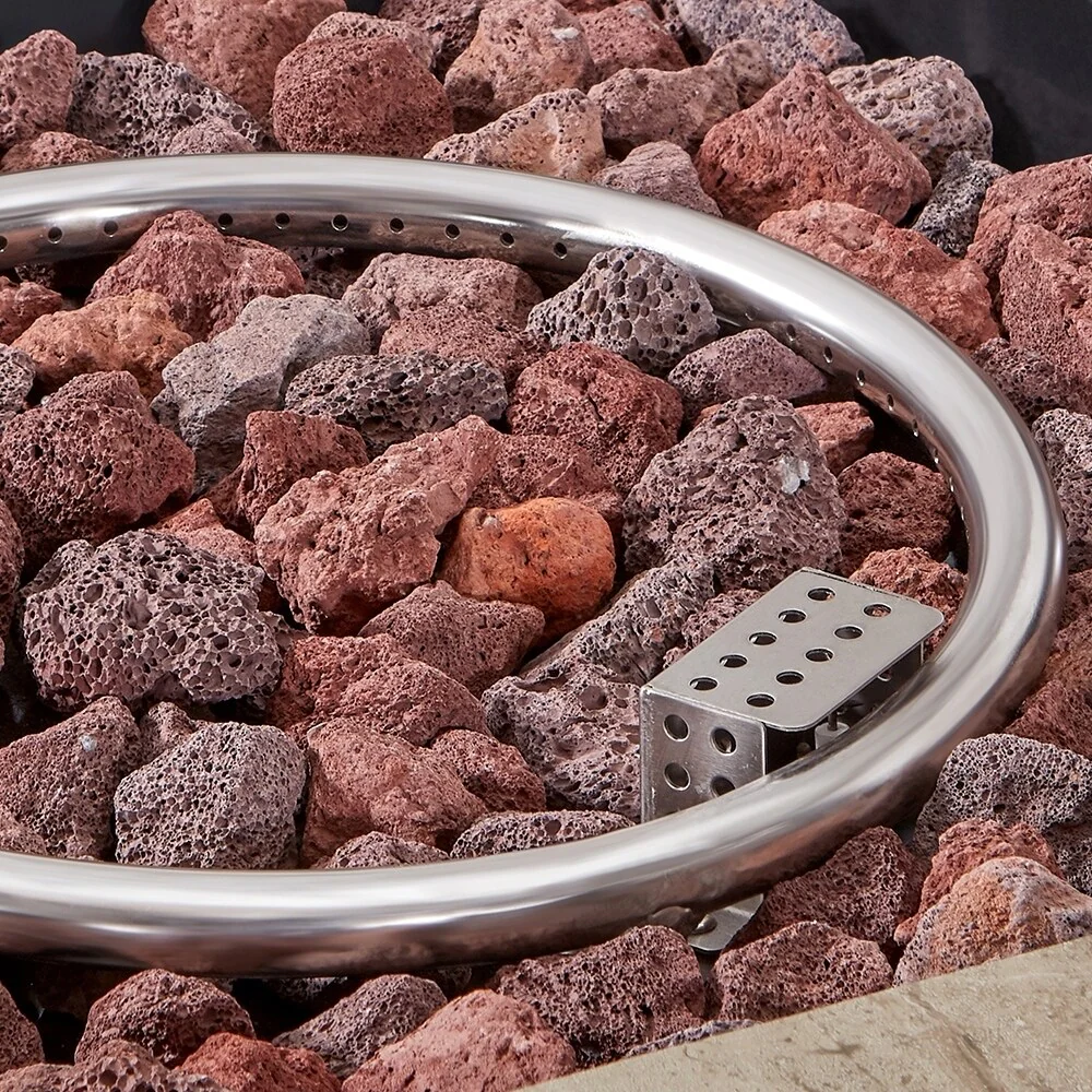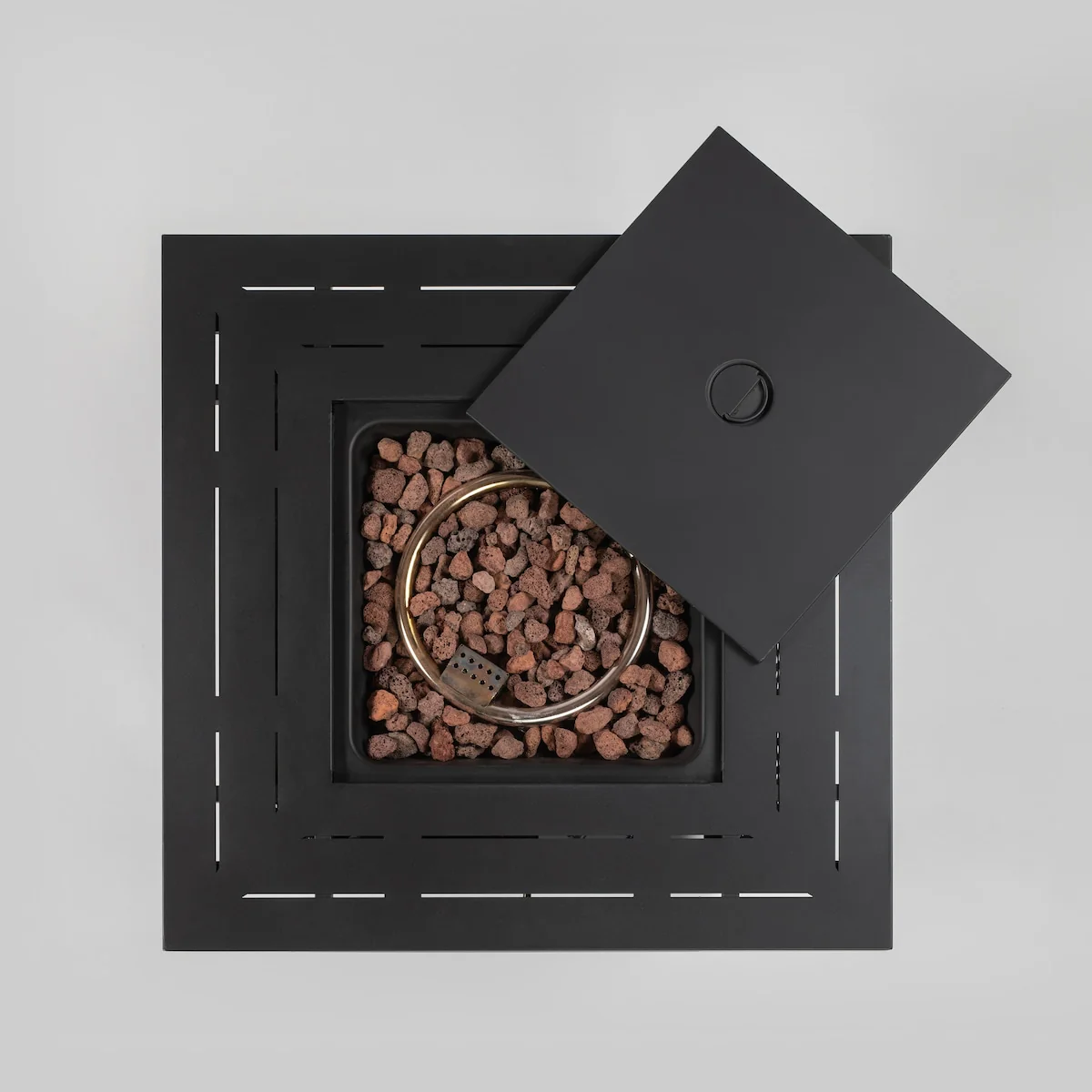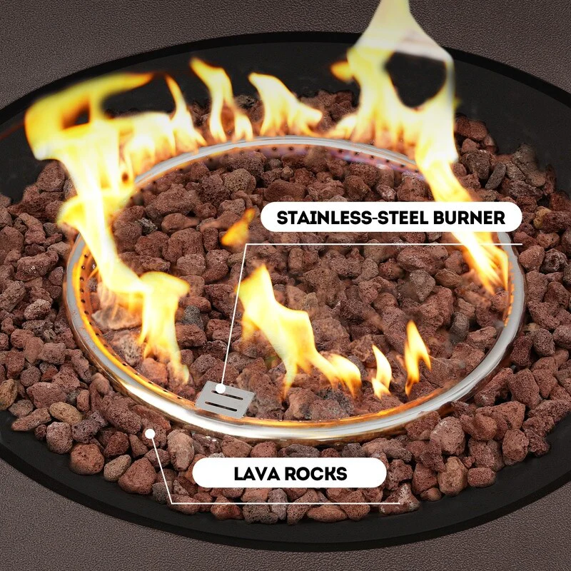 GDFStudio - Phoenix Round Steel Fire Pit Table with Steel Lid and Lava Rocks