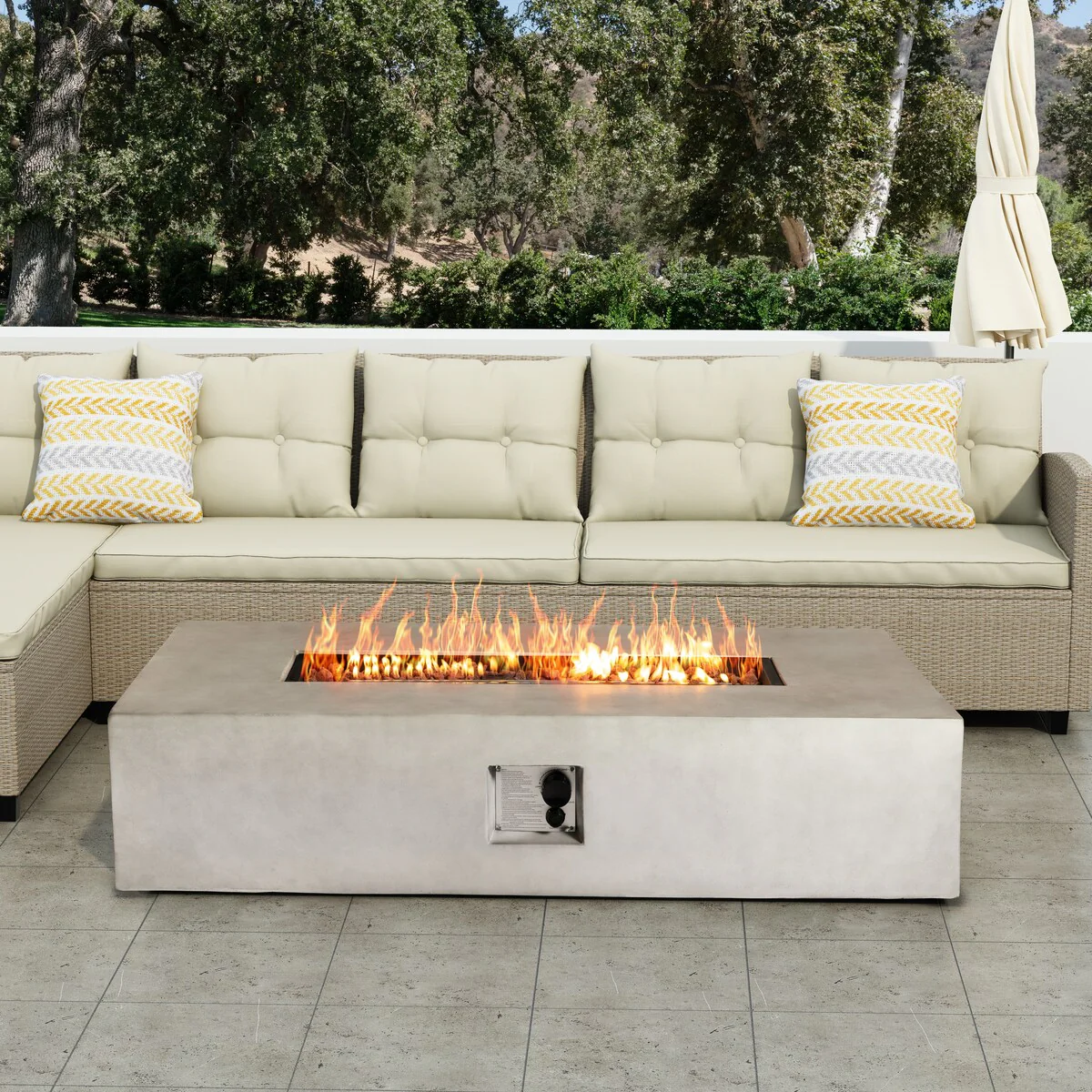 56" Concrete Rectangle Propane Gas Fire Pit