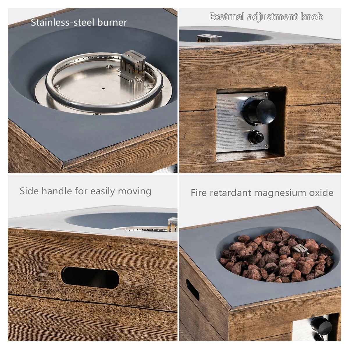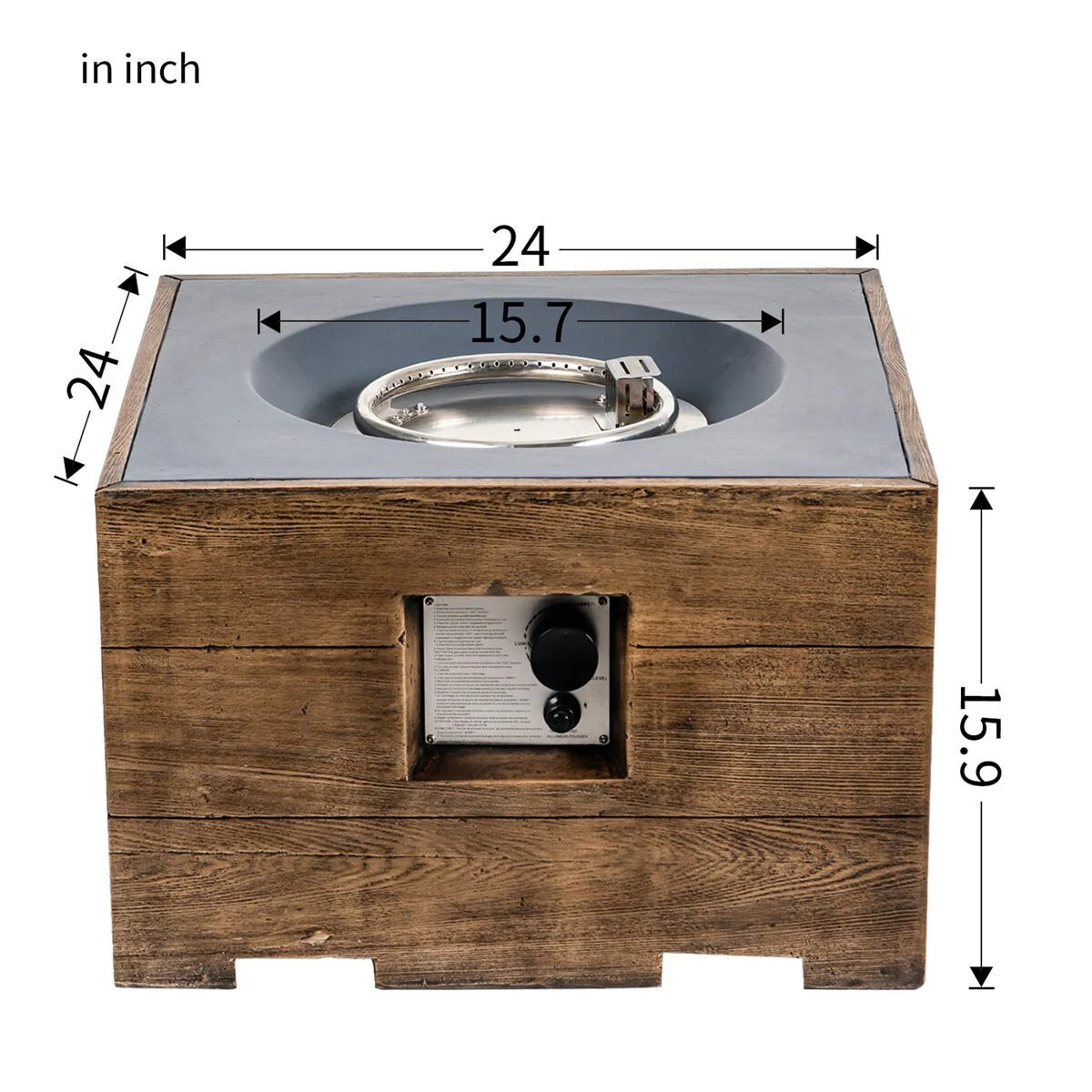 16'' H x 24'' W Wood Texture Outdoor Fire Table