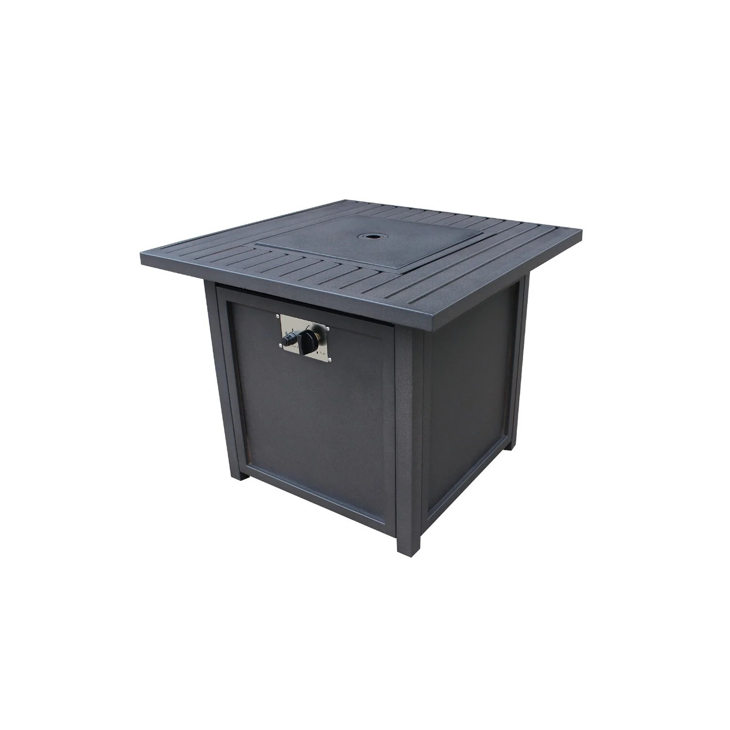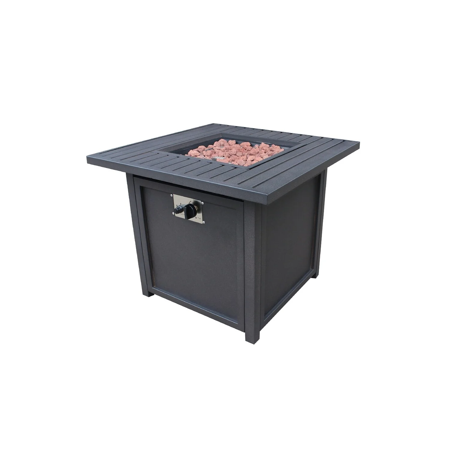 Metal Square Slats Top Gas Fire Pit with Lava Rocks and Pulse Ignitor, 30''L*30''W*25''H, 62.7LBS