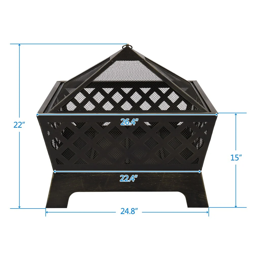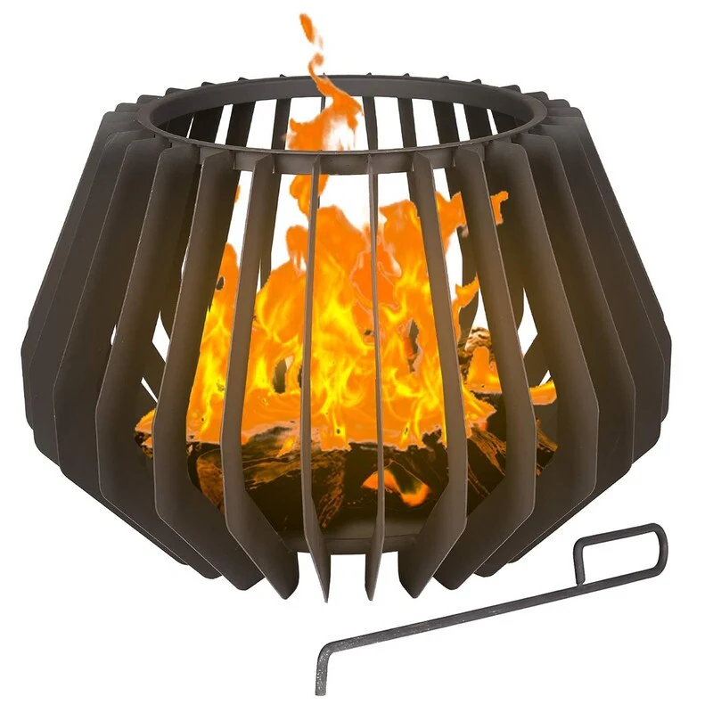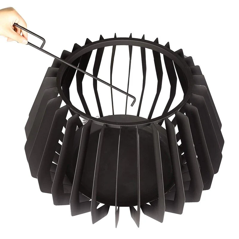 Outdoor Black Steel Wood Burning Fire Pit with Brazier Hook