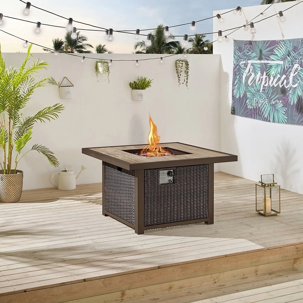 28inch Wicker Square Fire Pit Table