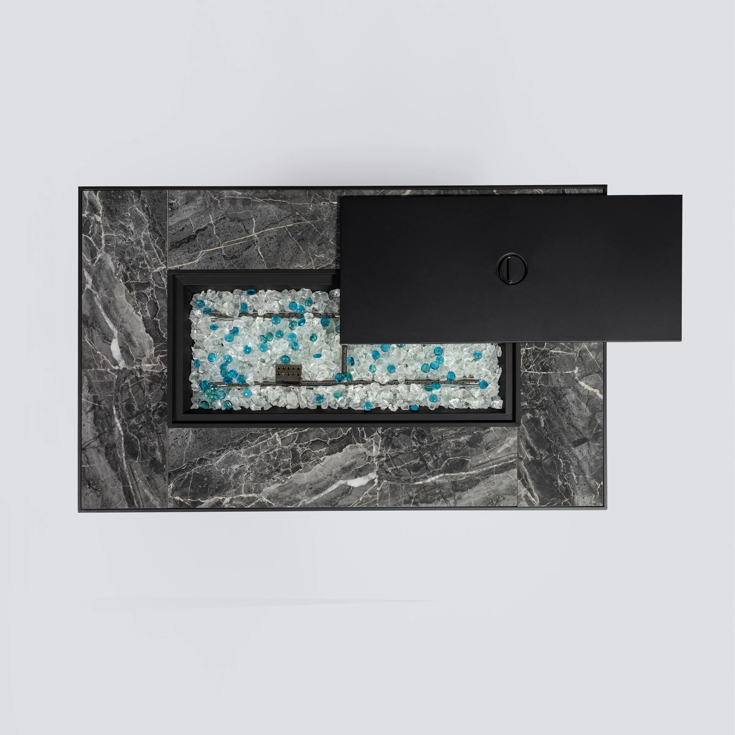 GDFStudio - Mason Rectangular Propane Fire Table with Glass Wind Guard and External Tank Holder