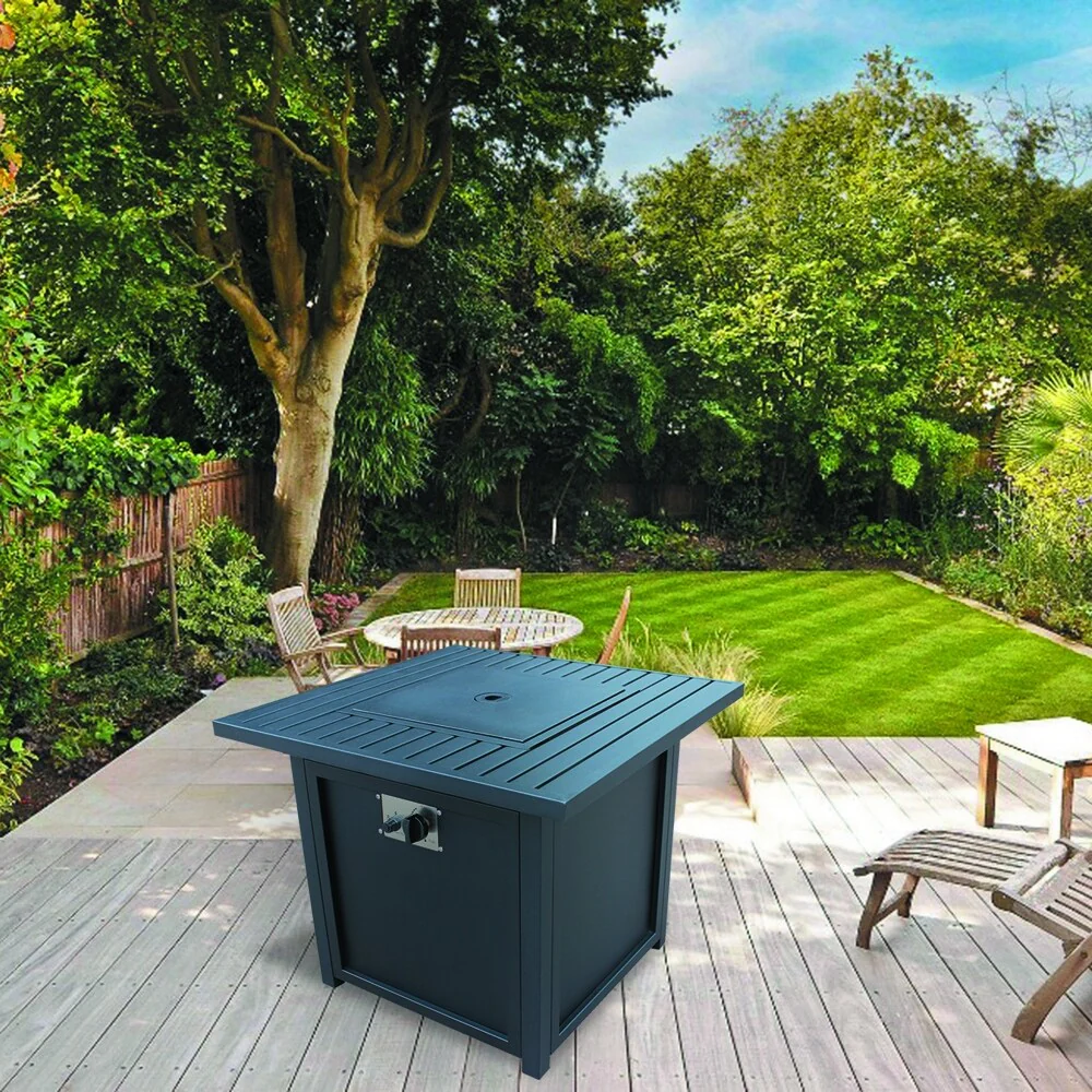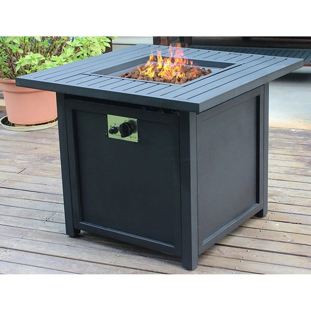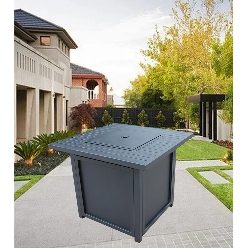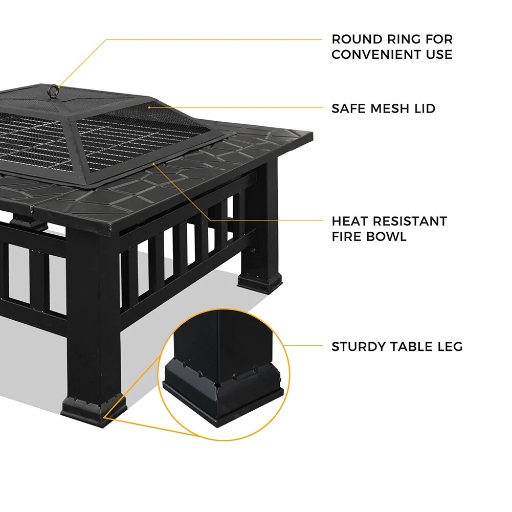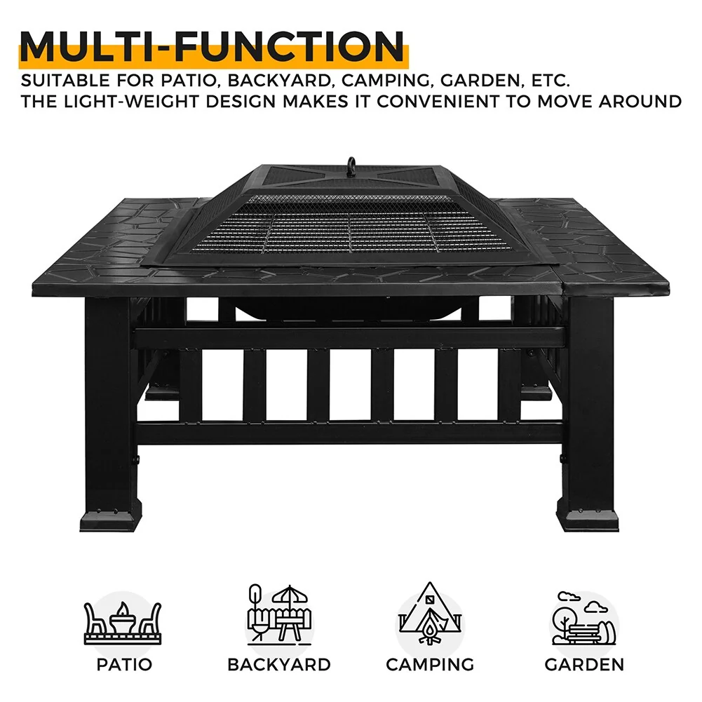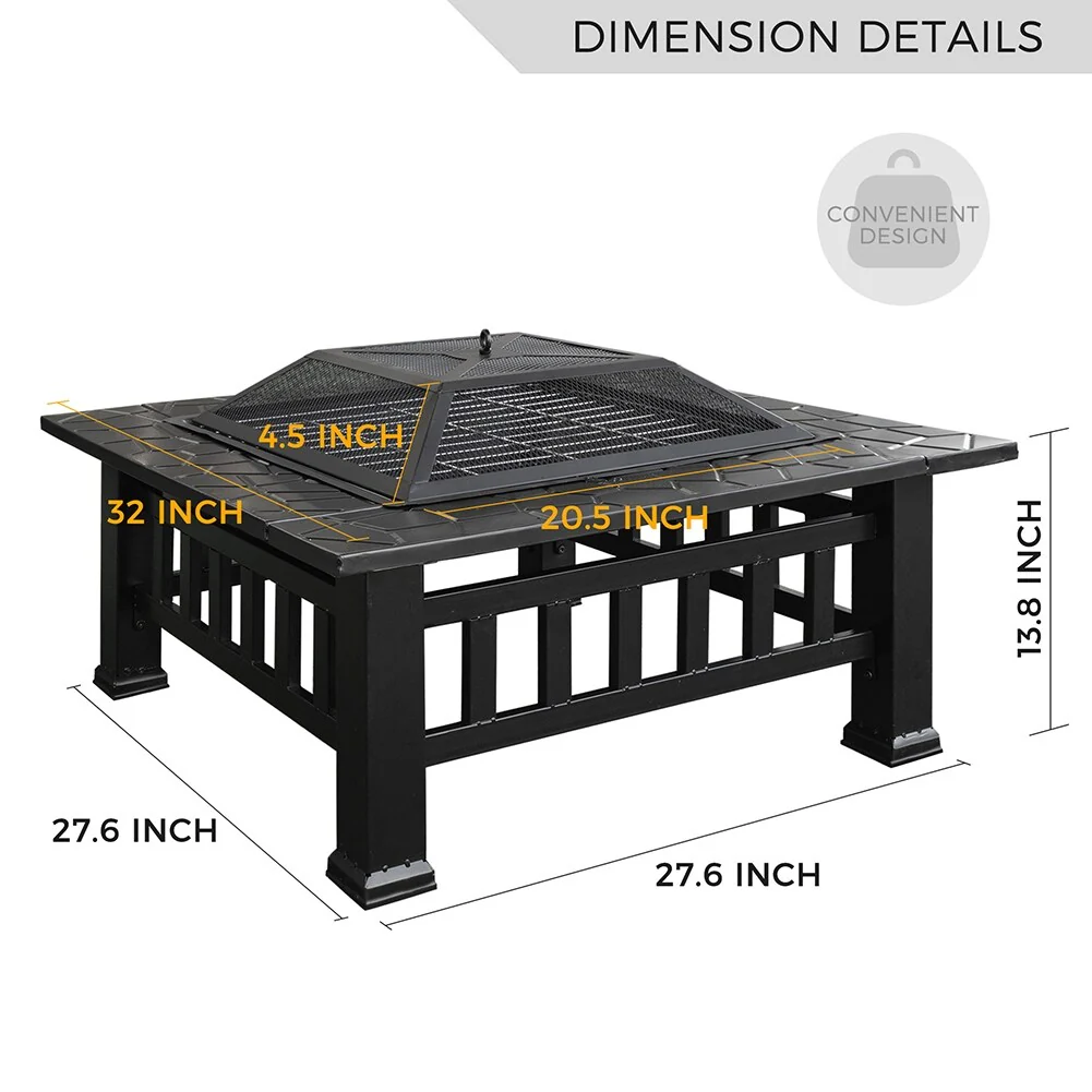 Multifunctional Fire Pit Table 32" Metal Square Patio Firepit Table