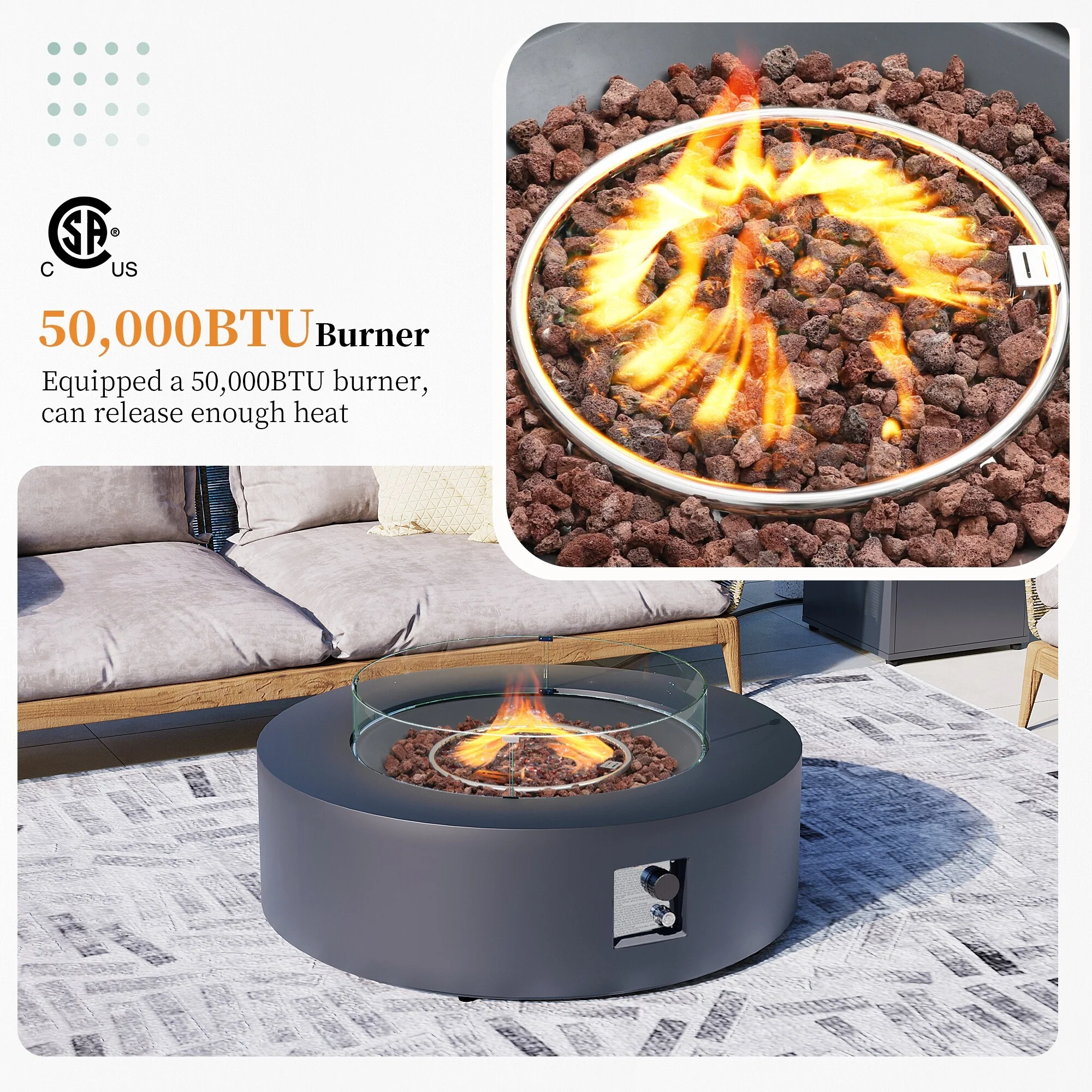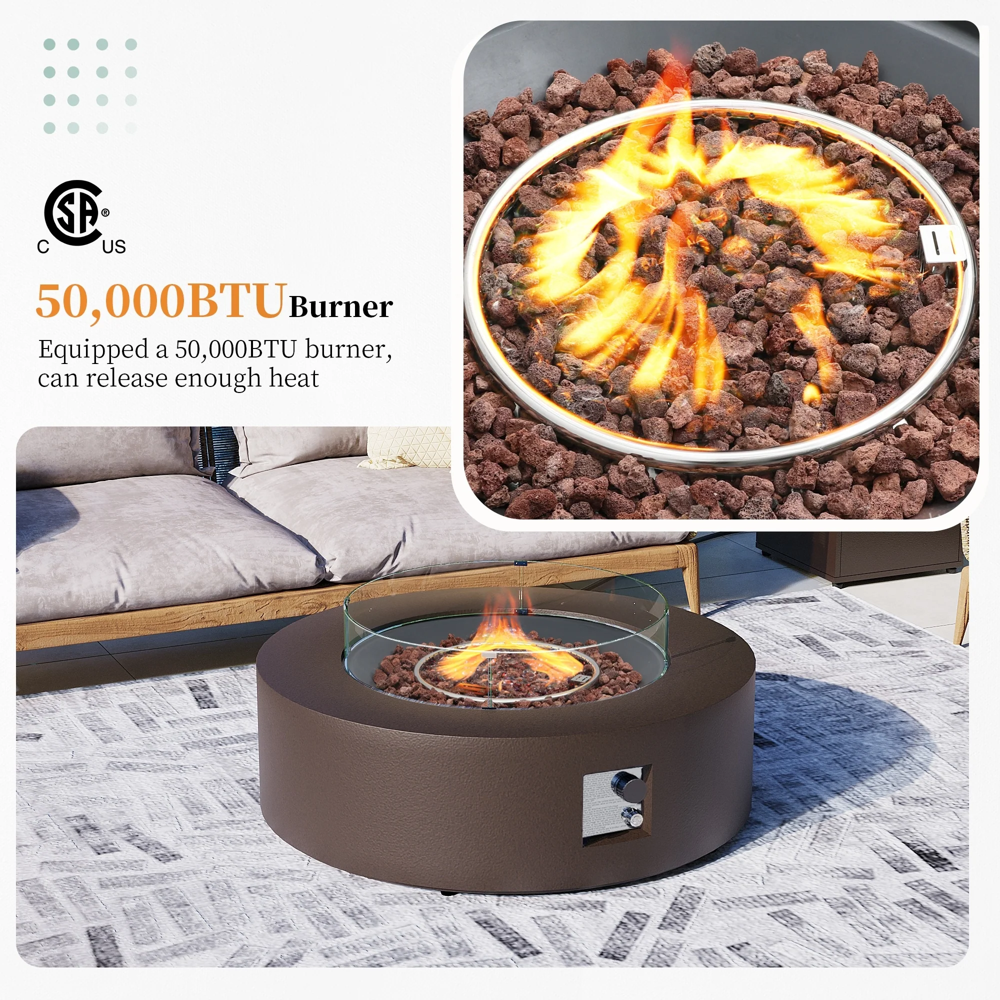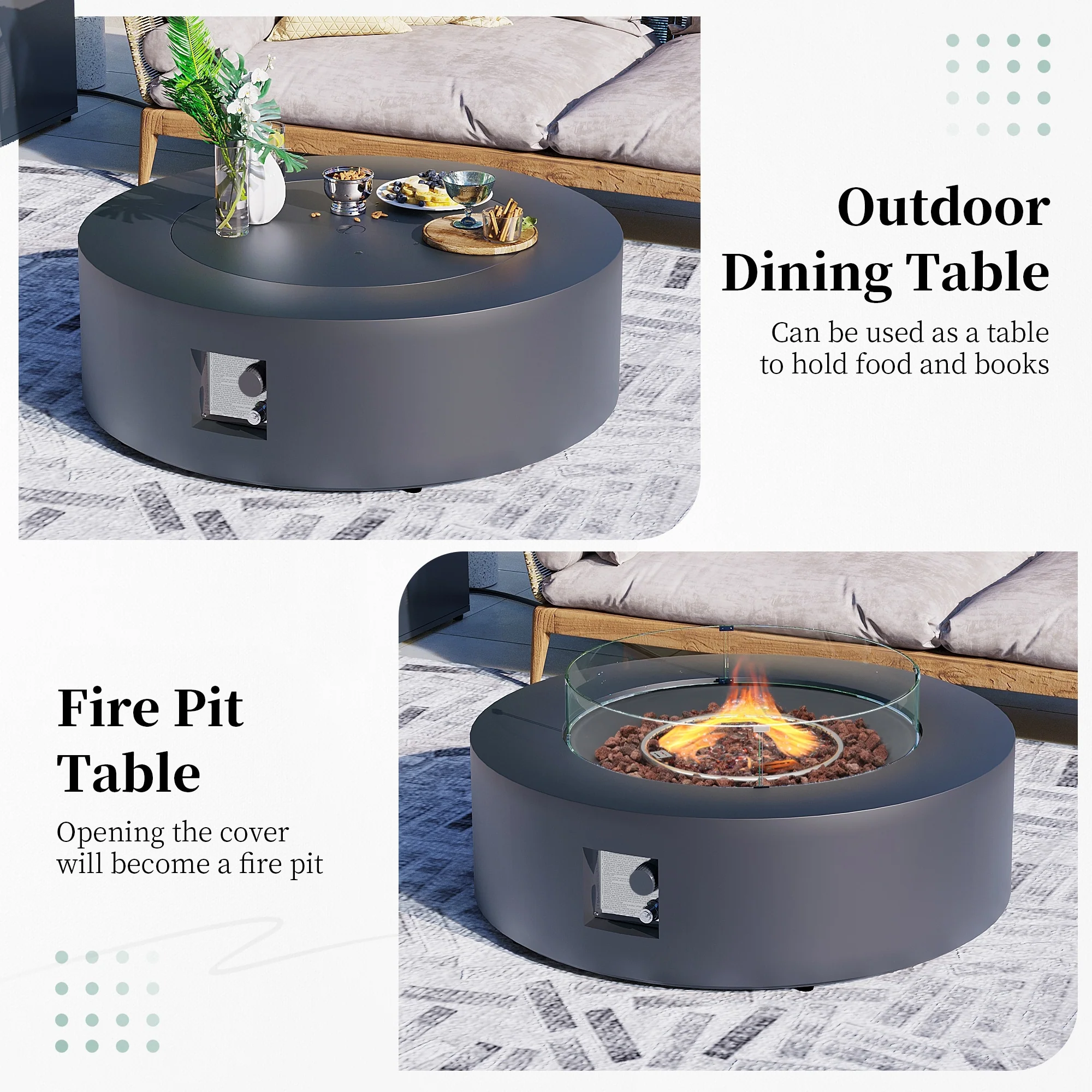 Propane Gas Fire Pit Table with PVC Cover