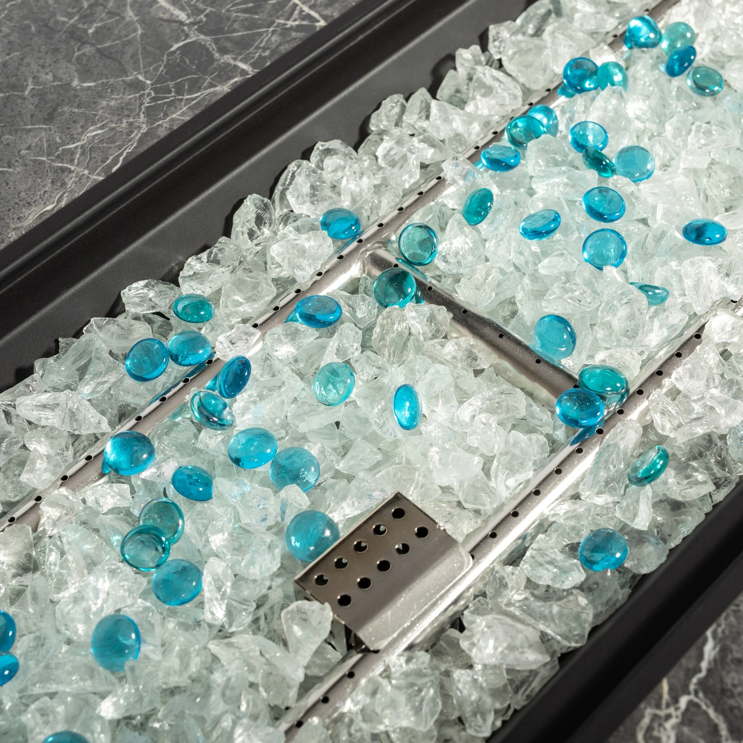 50,000 BTU Rectangle Fire Pit Table with Blue stone and Free Waterproof Cover