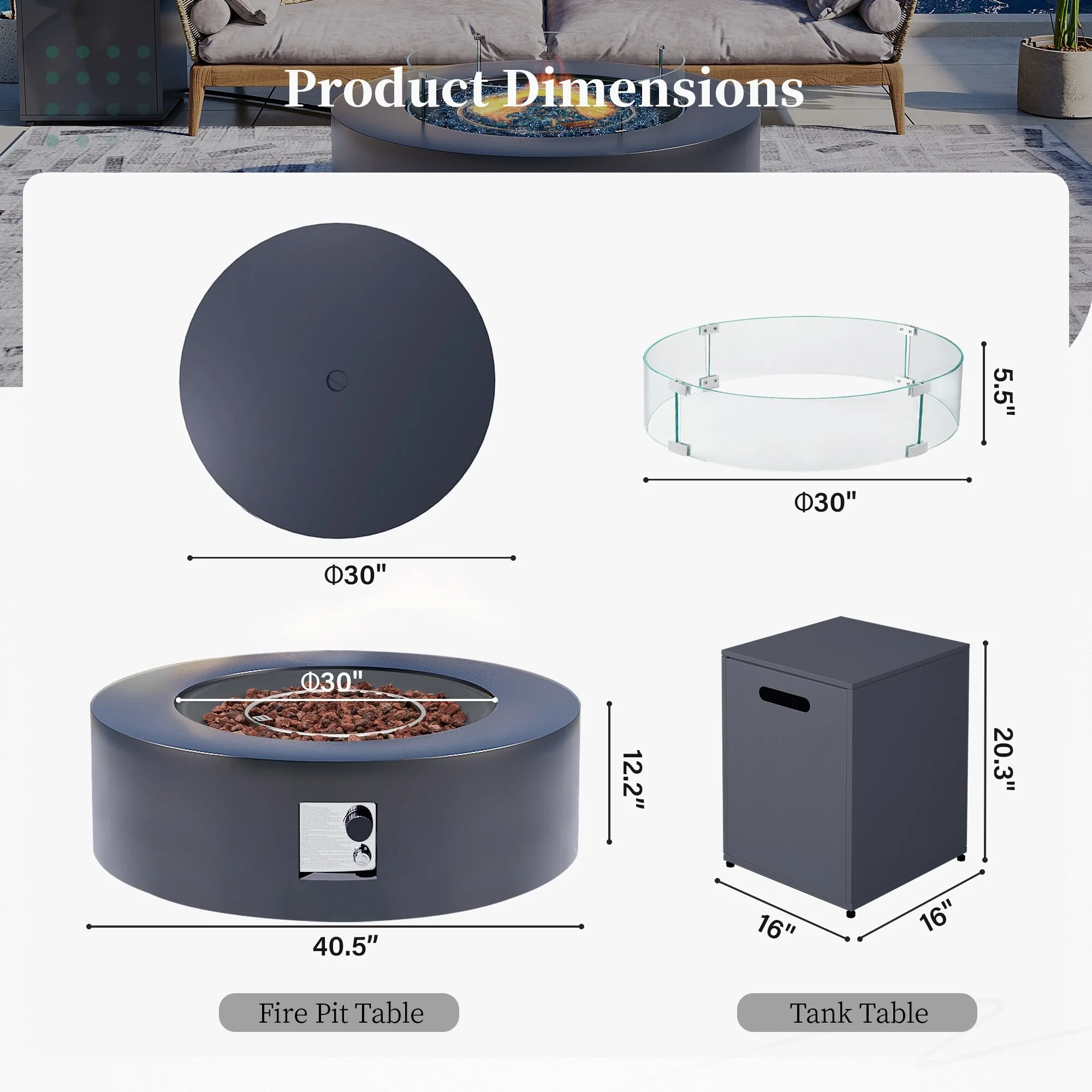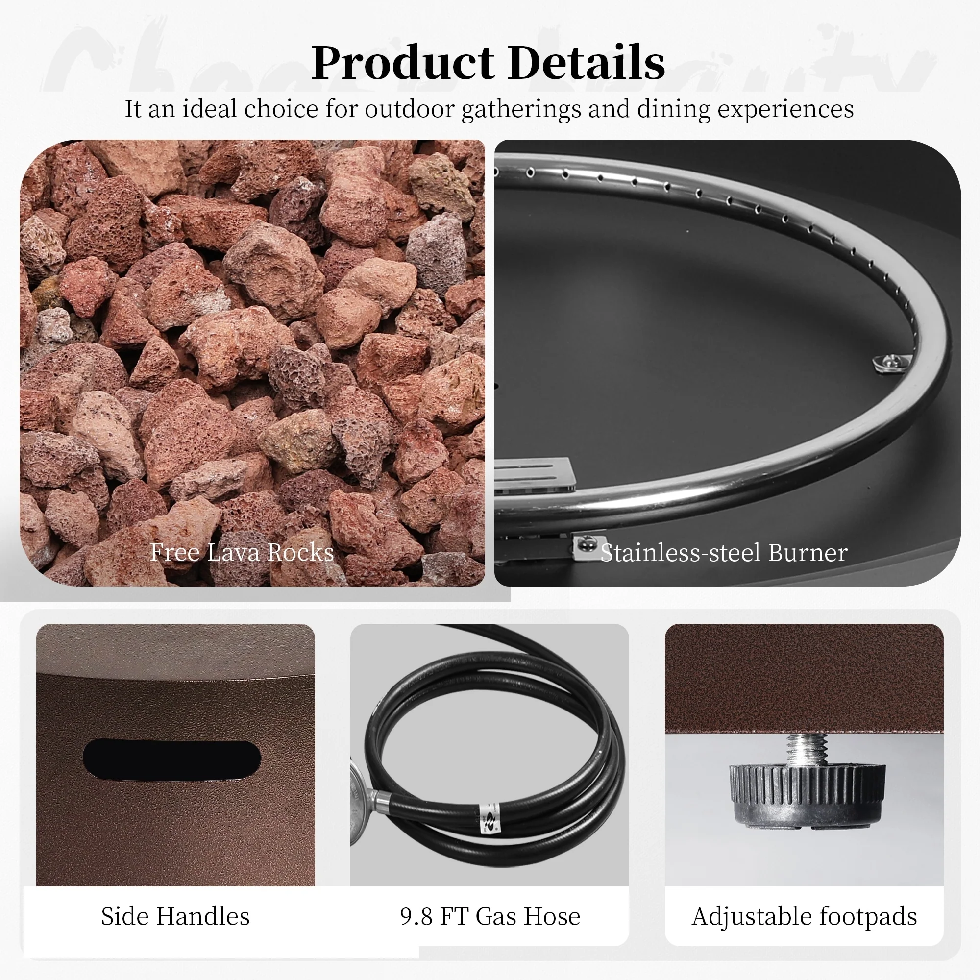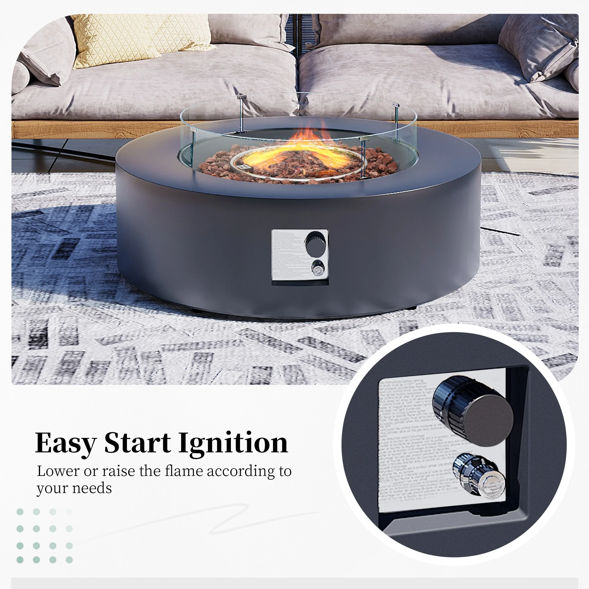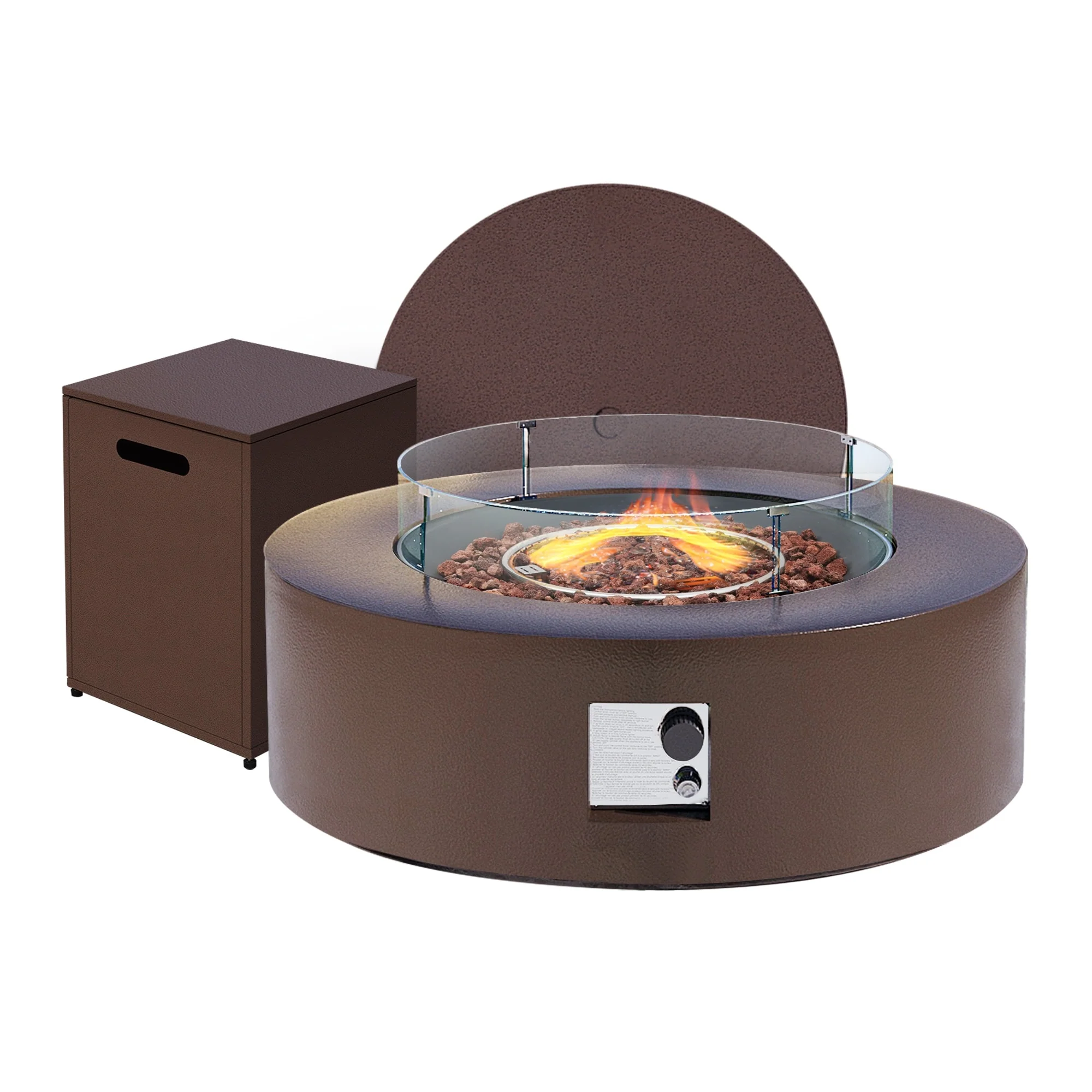 UPHA 40.5-Inch Round Iron Propane Outdoor Fire Pit Table includes Tank Cover, Lid, Rain Cover and Wind Guard