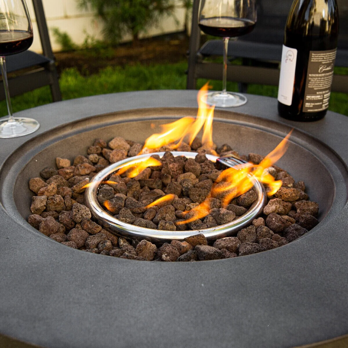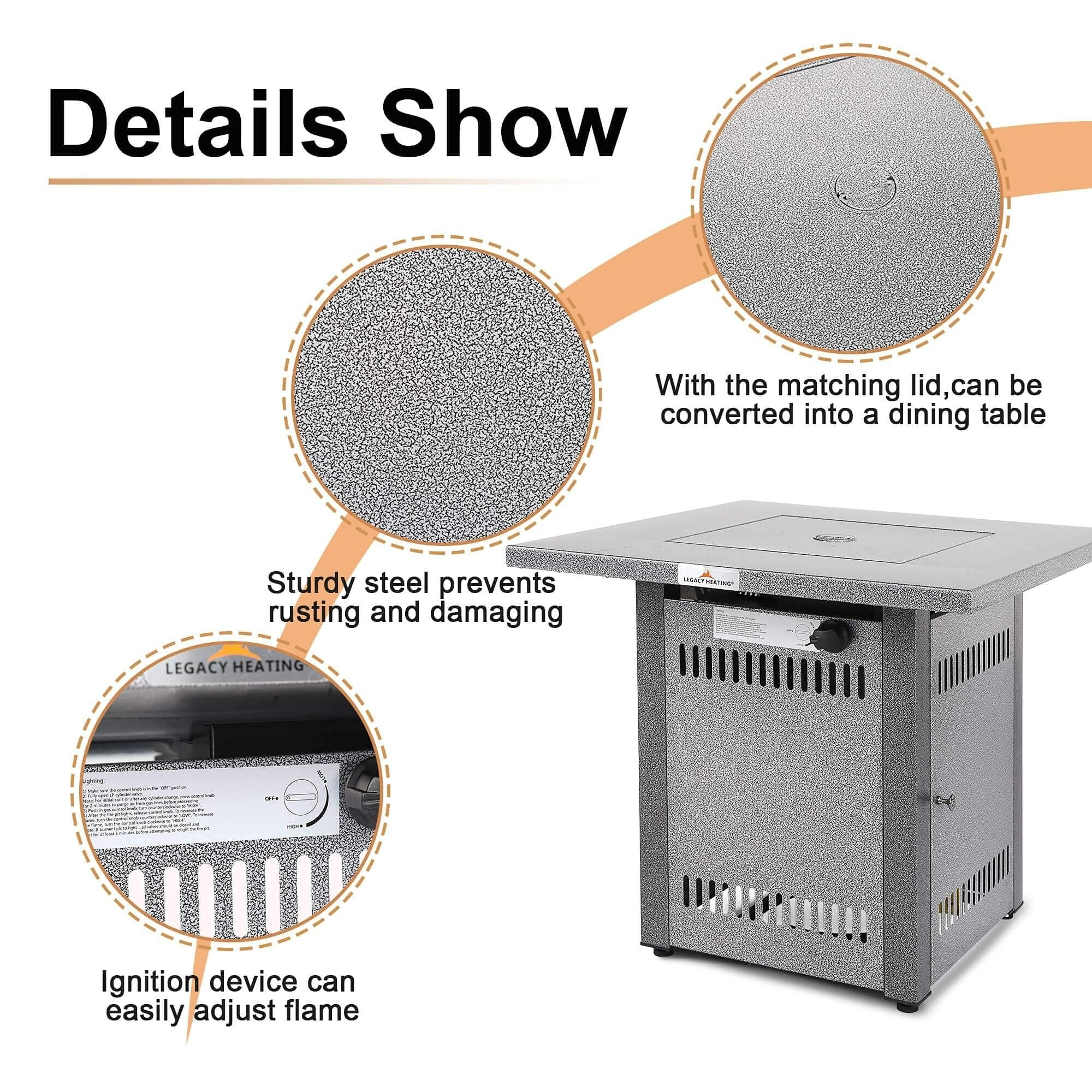 Silver Outdoor Propane Gas Fire Pit Table
