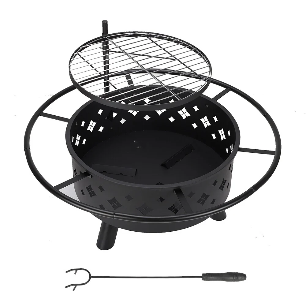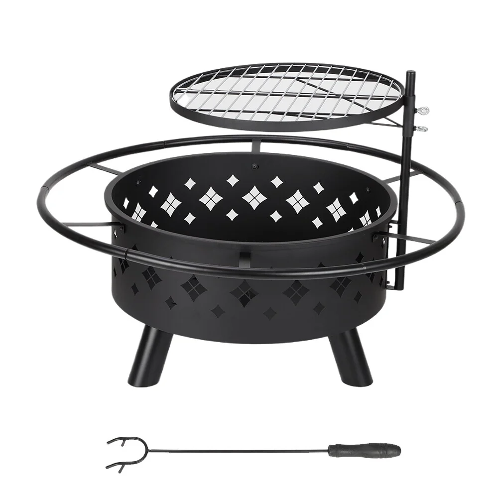 22 Inch Steel Outdoor Fire Pit Bowl With Wood Grate