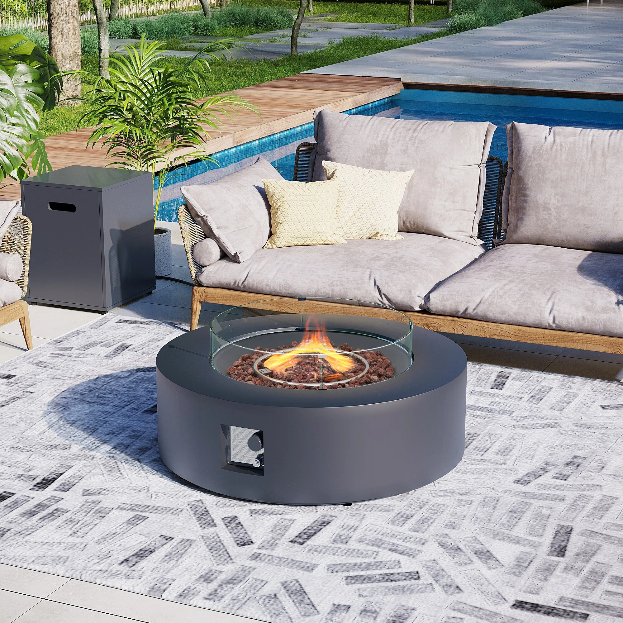 GDFStudio - Summit Steel Propane Fire Bowl with Tank Holder