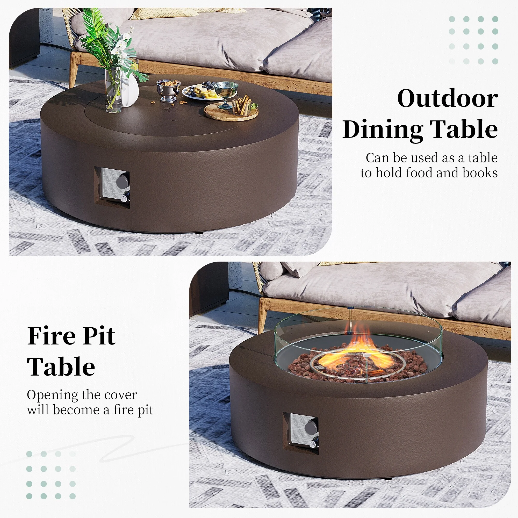 GDFStudio - Bella 44" Outdoor Propane Fire Pit Table with Ceramic Tile Top and Lid