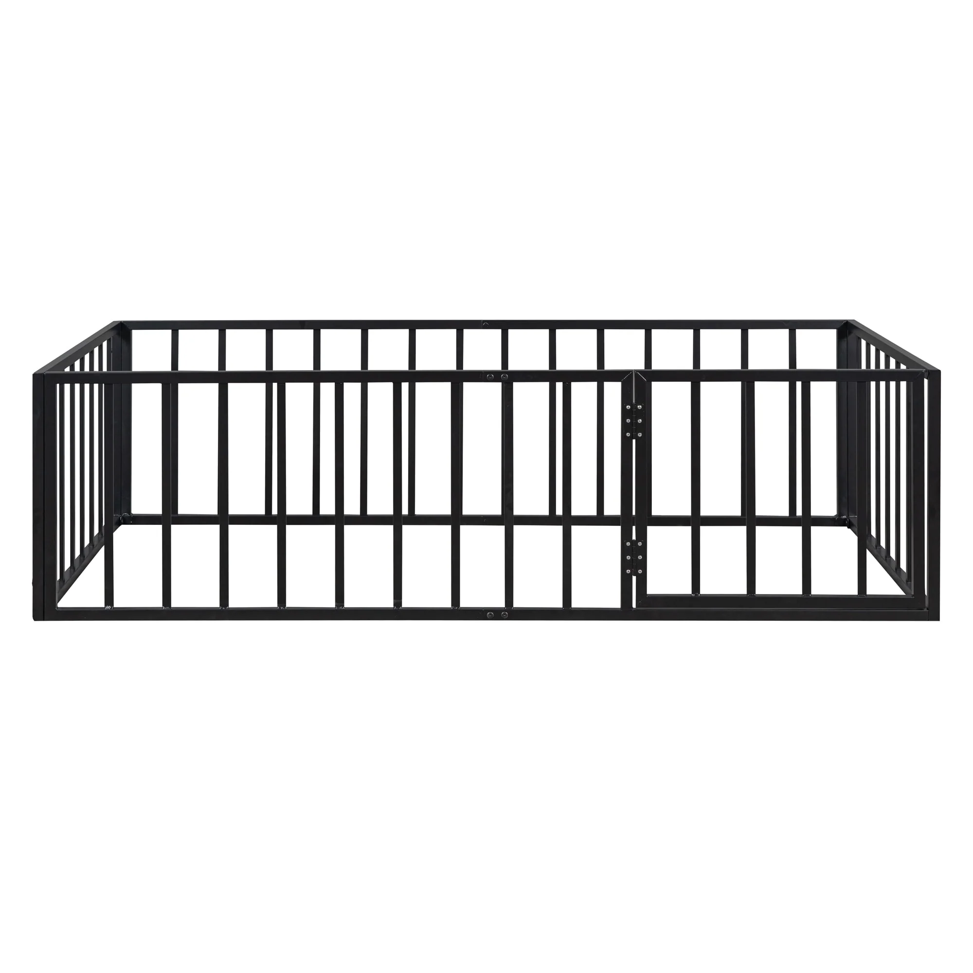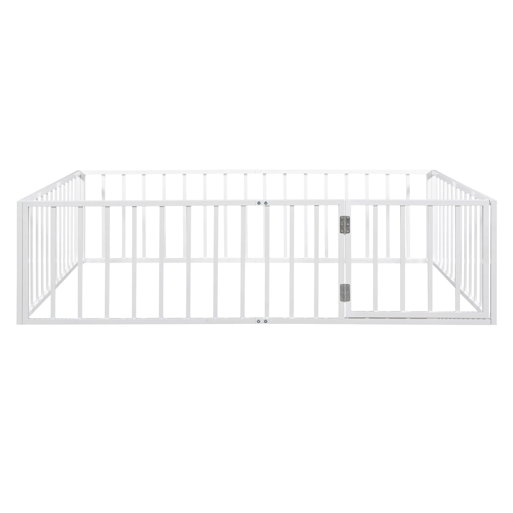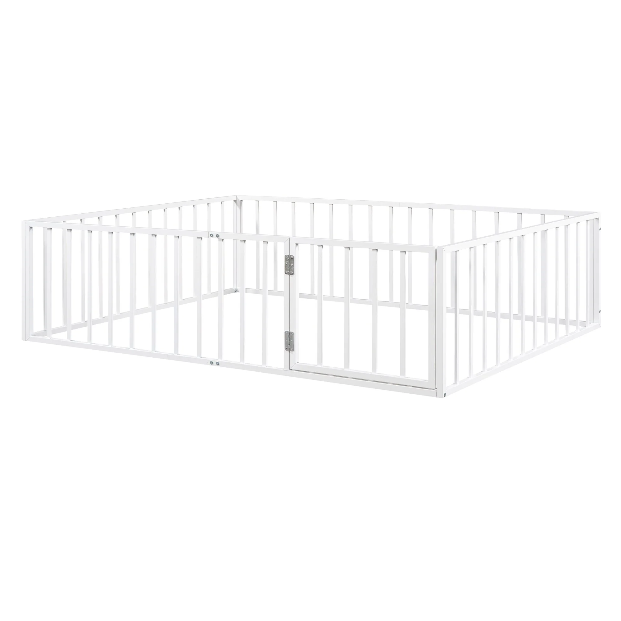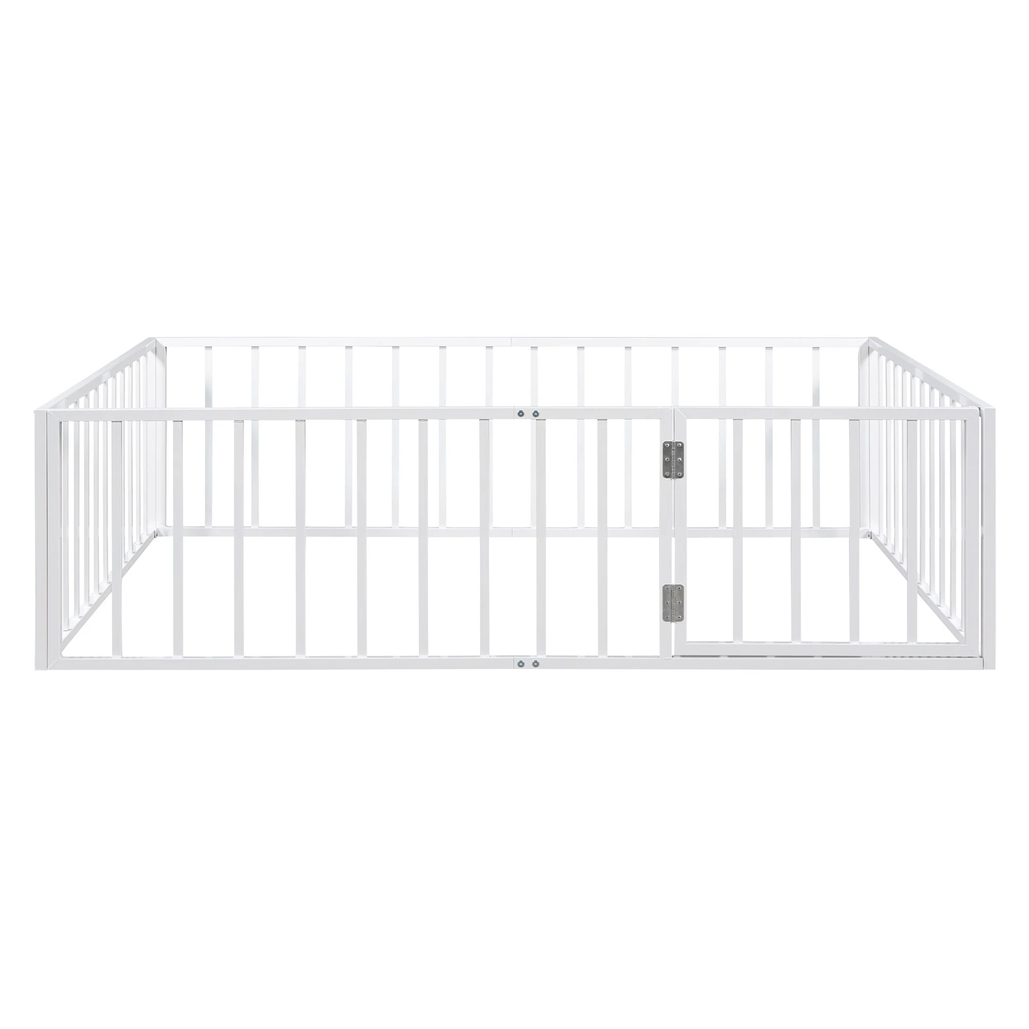 Twin Size Metal Floor Bed with Door and Fence, No Slats, Kids Play Space