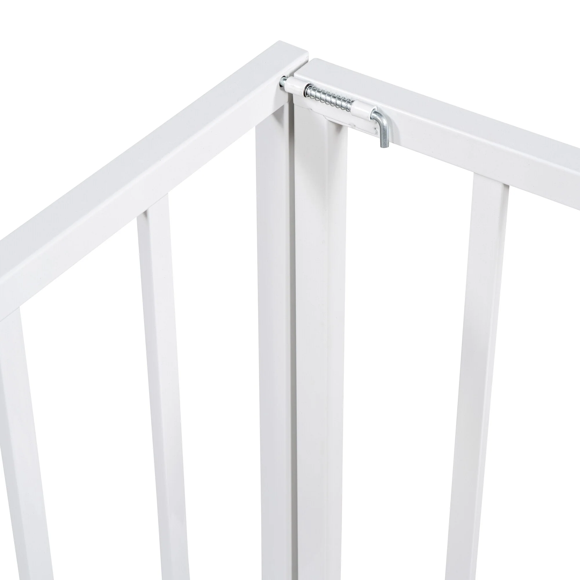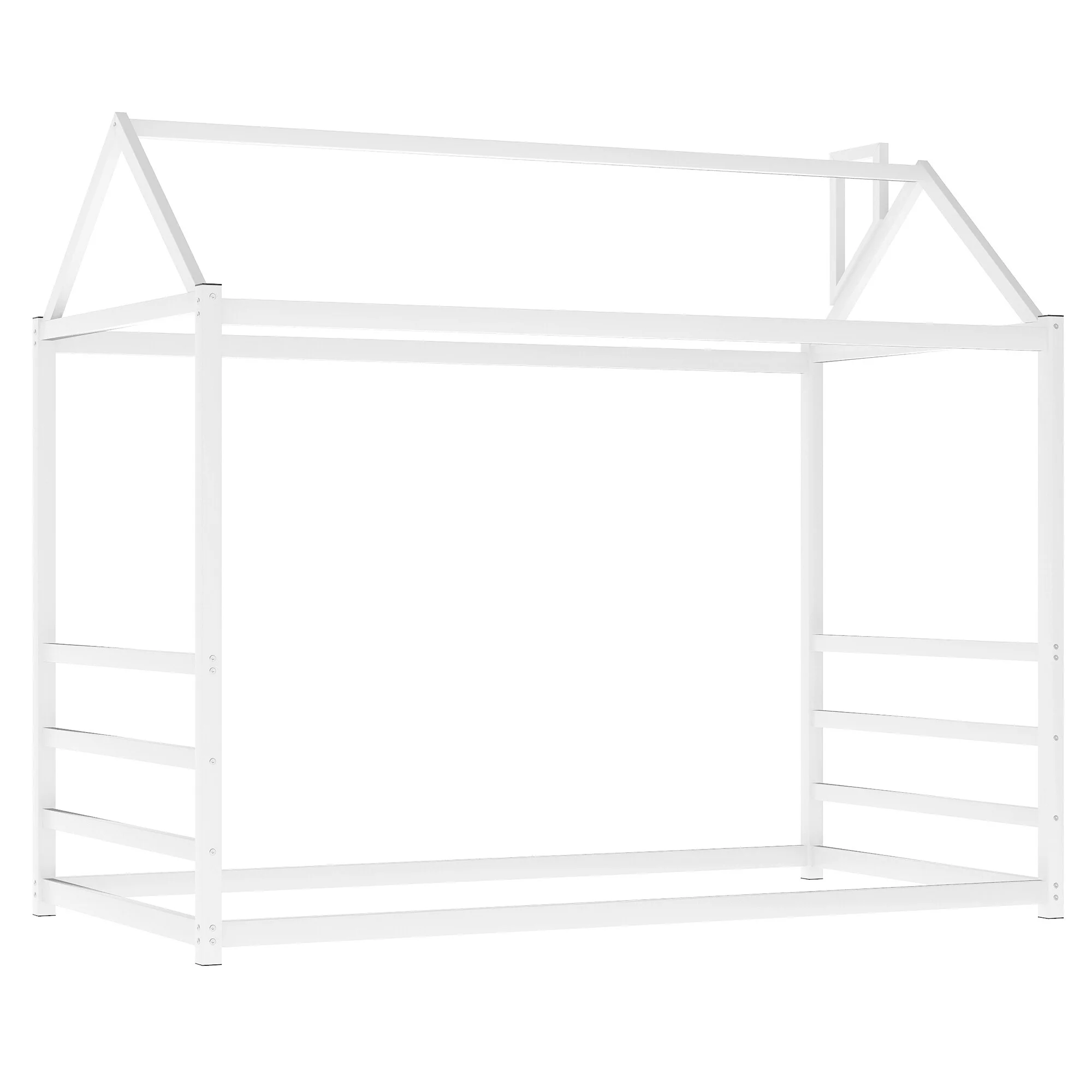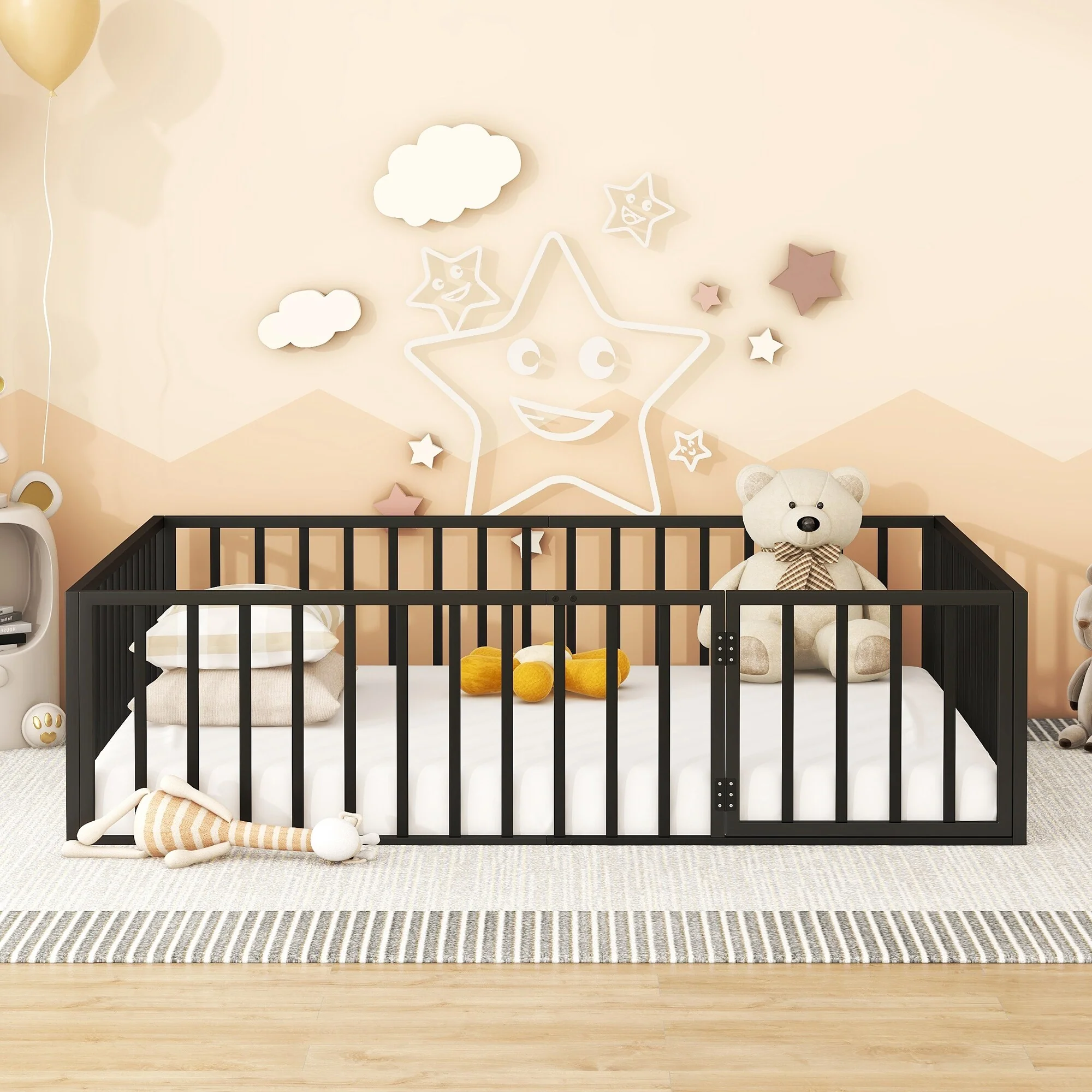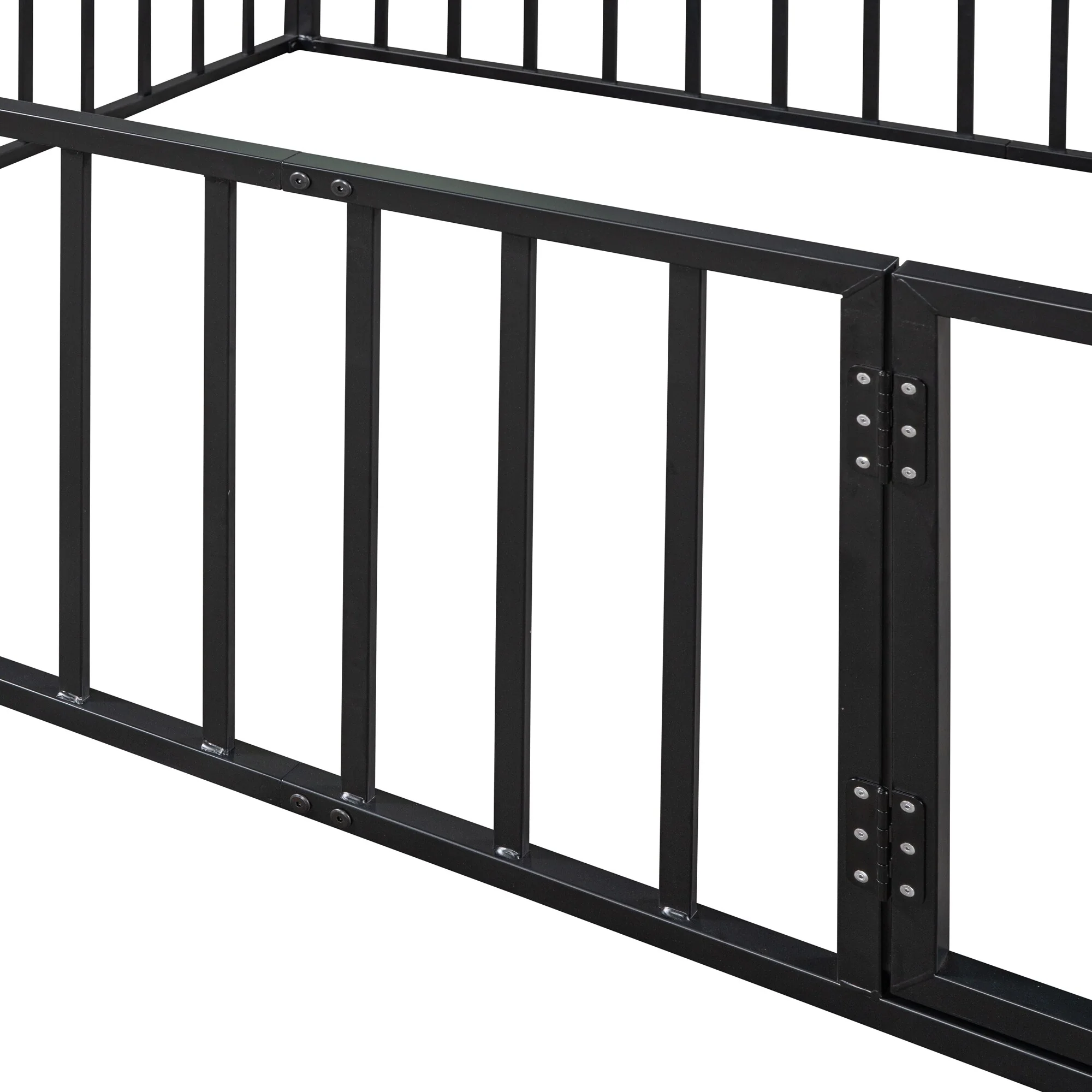 Twin Size Metal Floor Bed with Door and Fence, No Slats, Kids Play Space