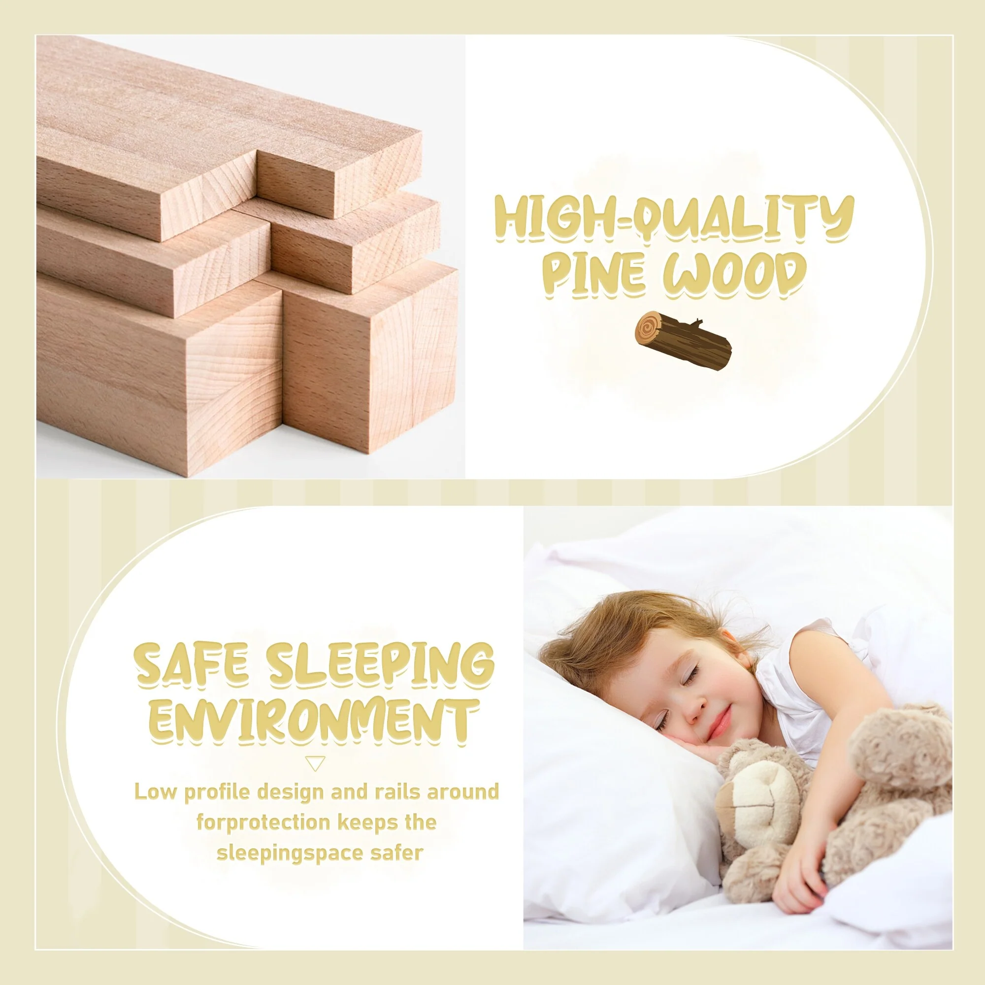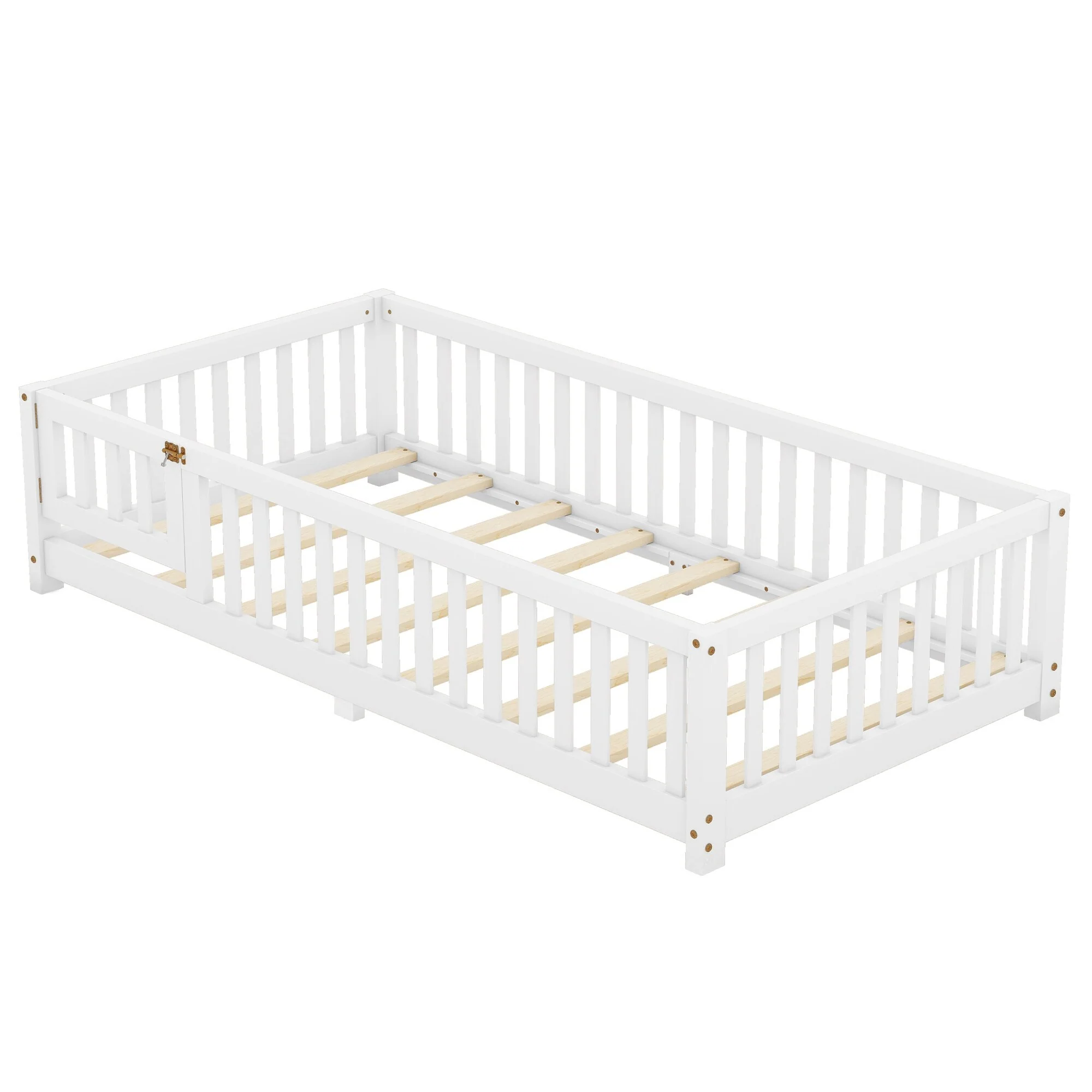 Low Profile Twin Floor Bed for Kids with Rails and Door, No Box Spring Needed