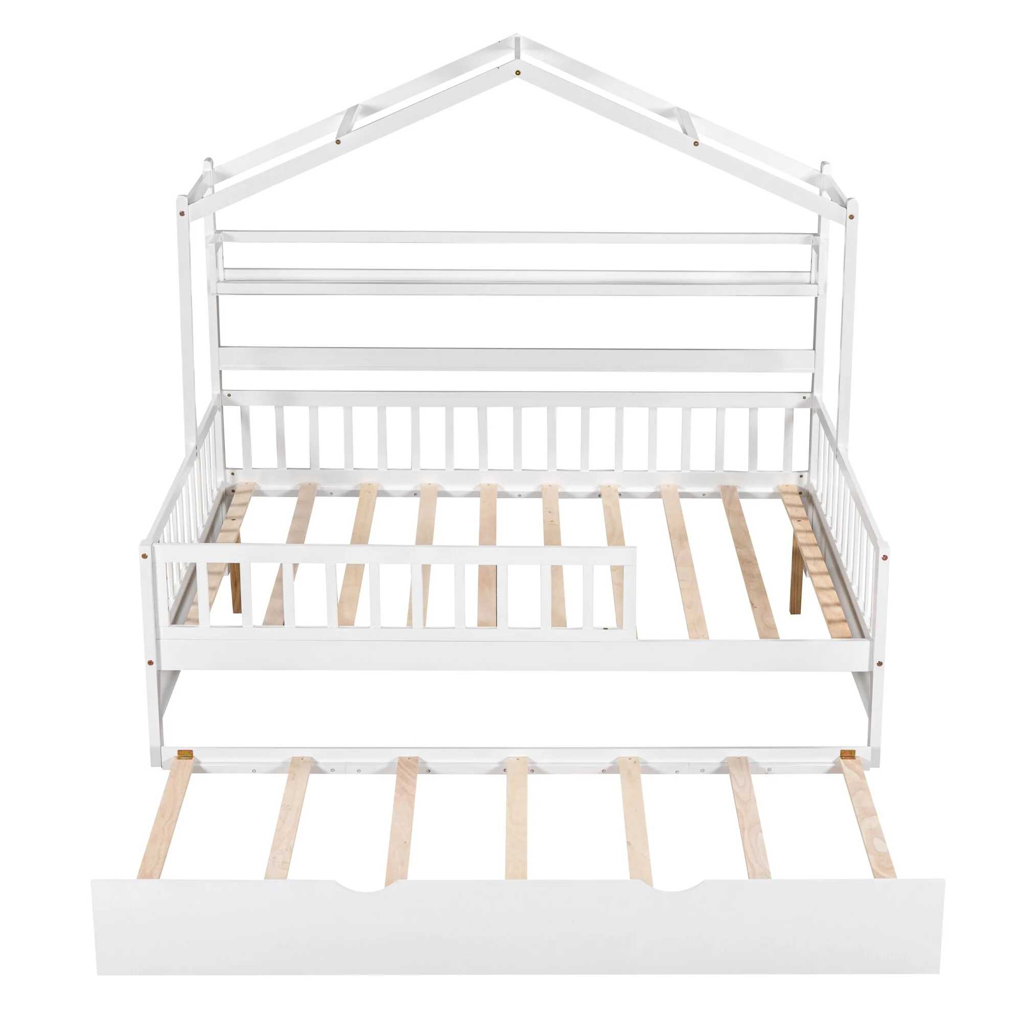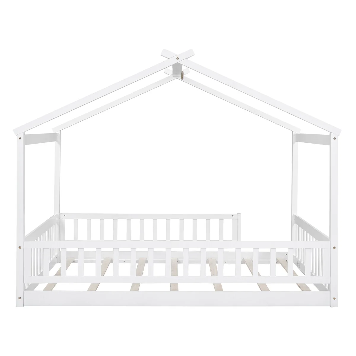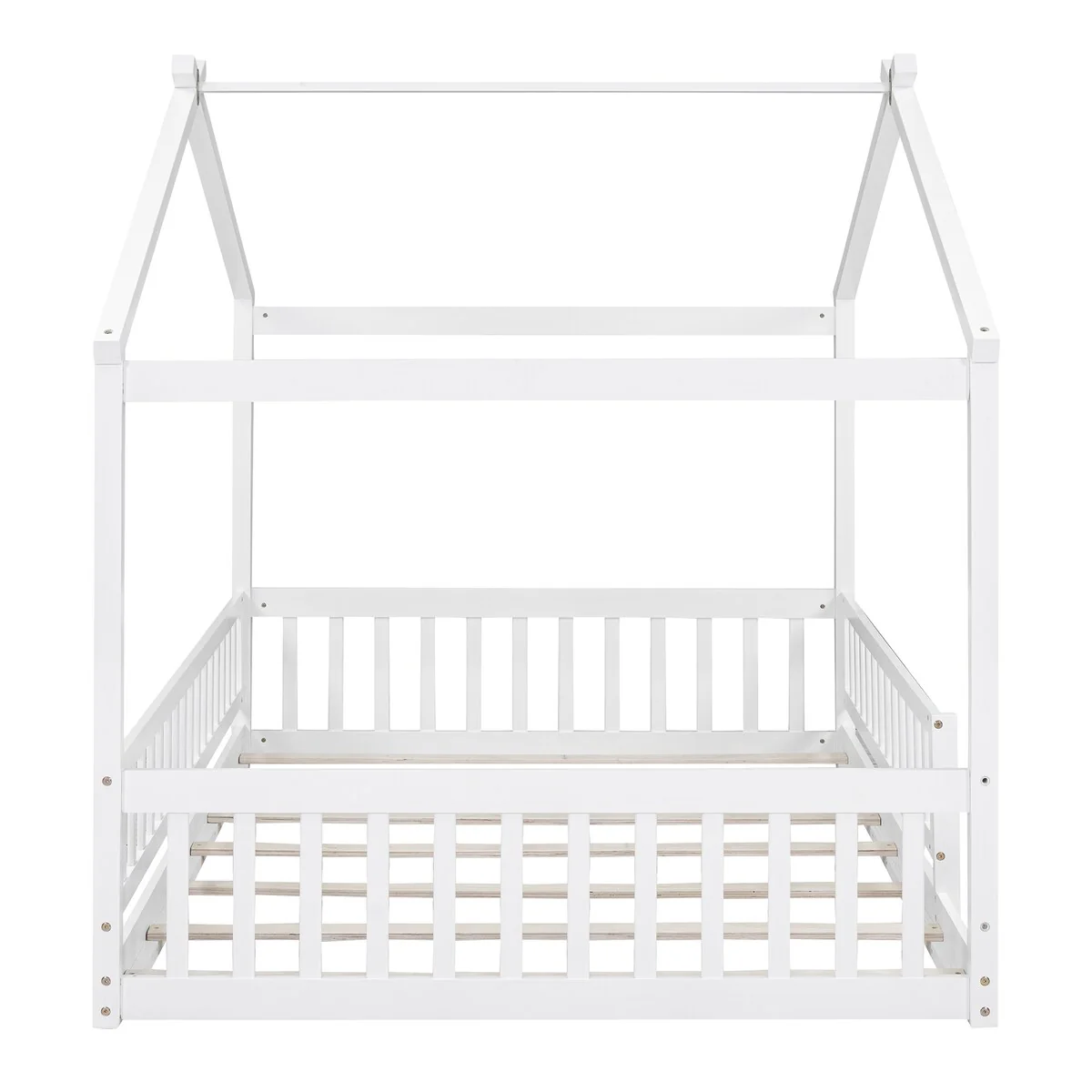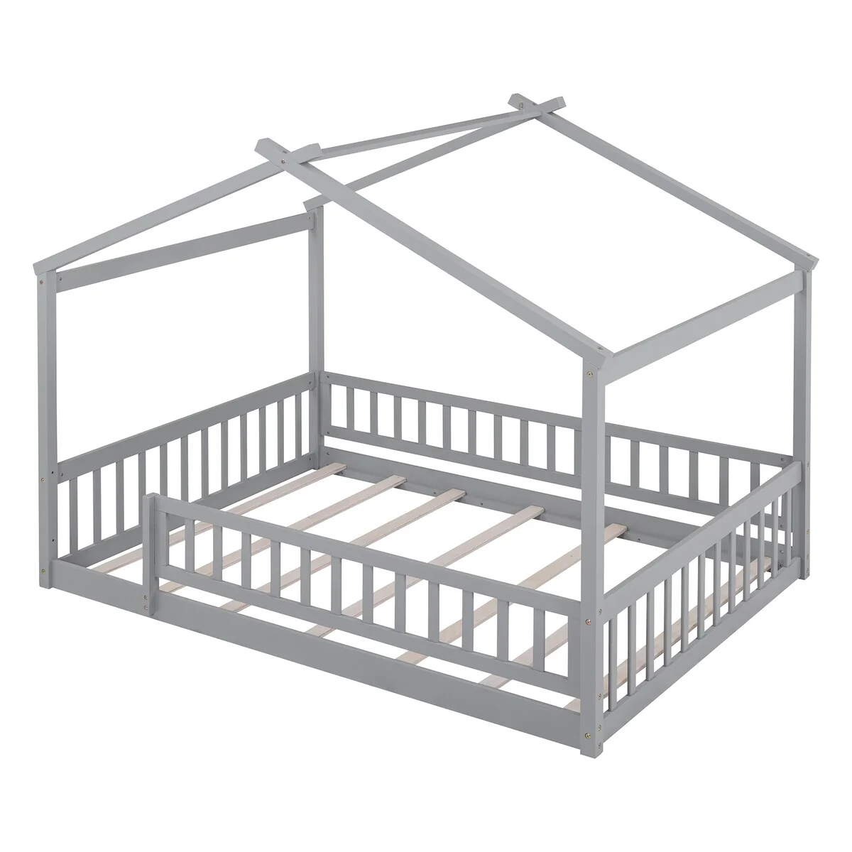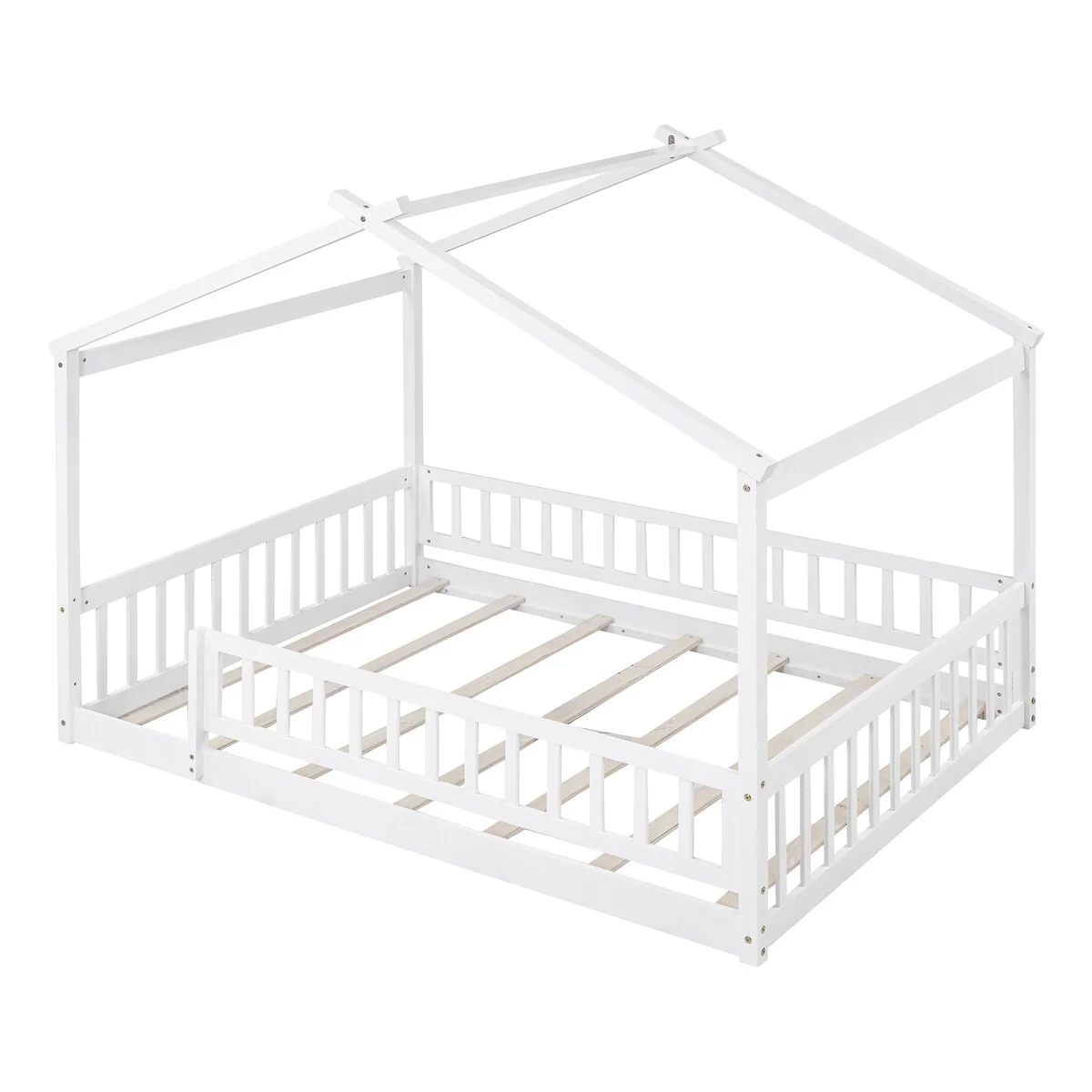 Full House Bed with Rails,Full Floor Bed for Kids,Full Size Montessori Bed Frame with Support Slats, Kids Full Playhouse Beds