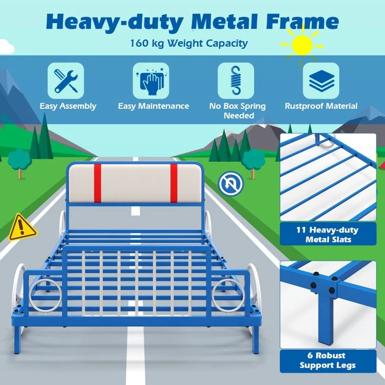 Twin Platform Bed for Kids with Metal Car-Shaped Frame