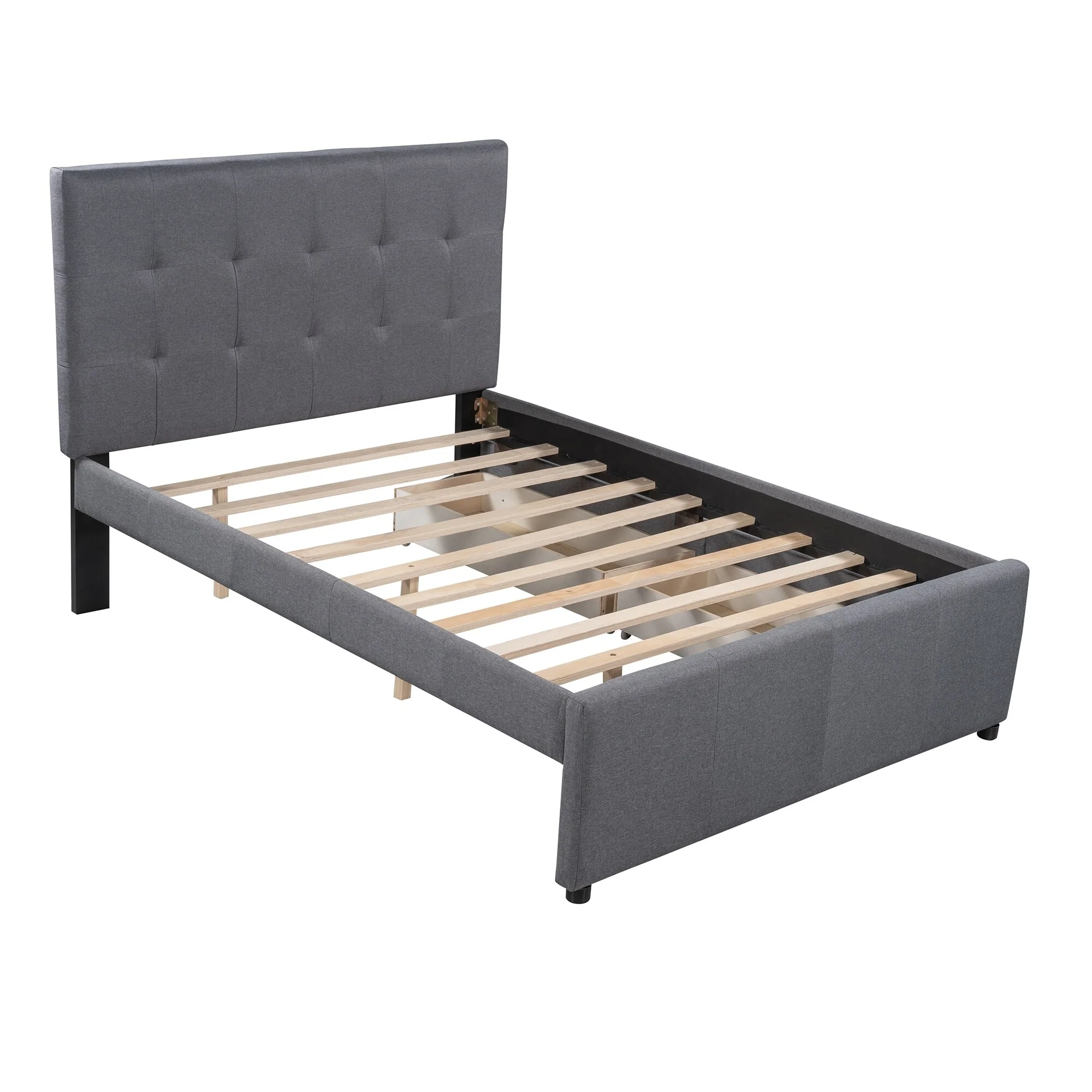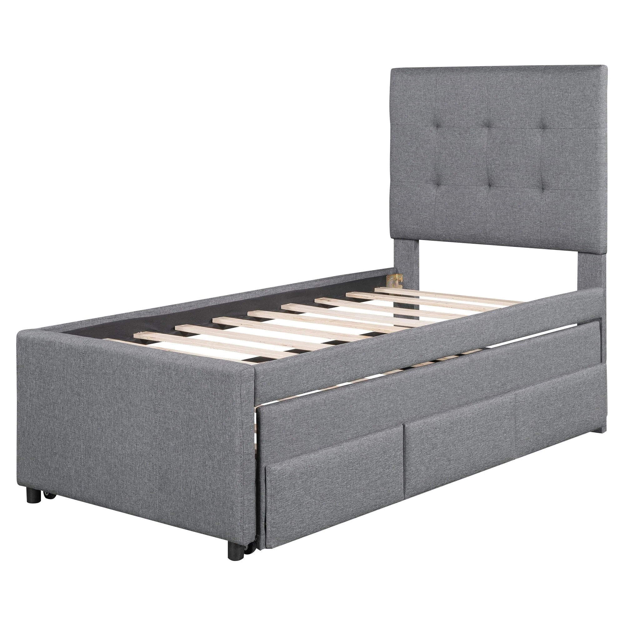 Upholstered Twin Platform Bed with Pull-Out Trundle and Under-Bed Storage, Gray