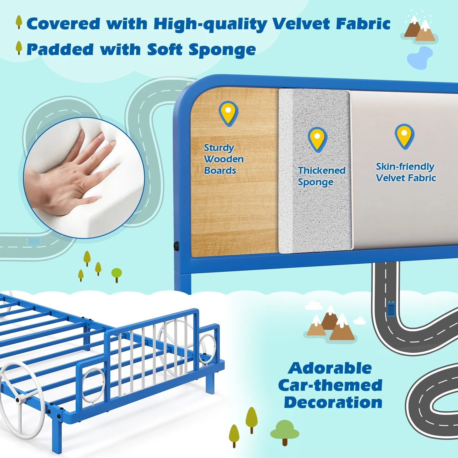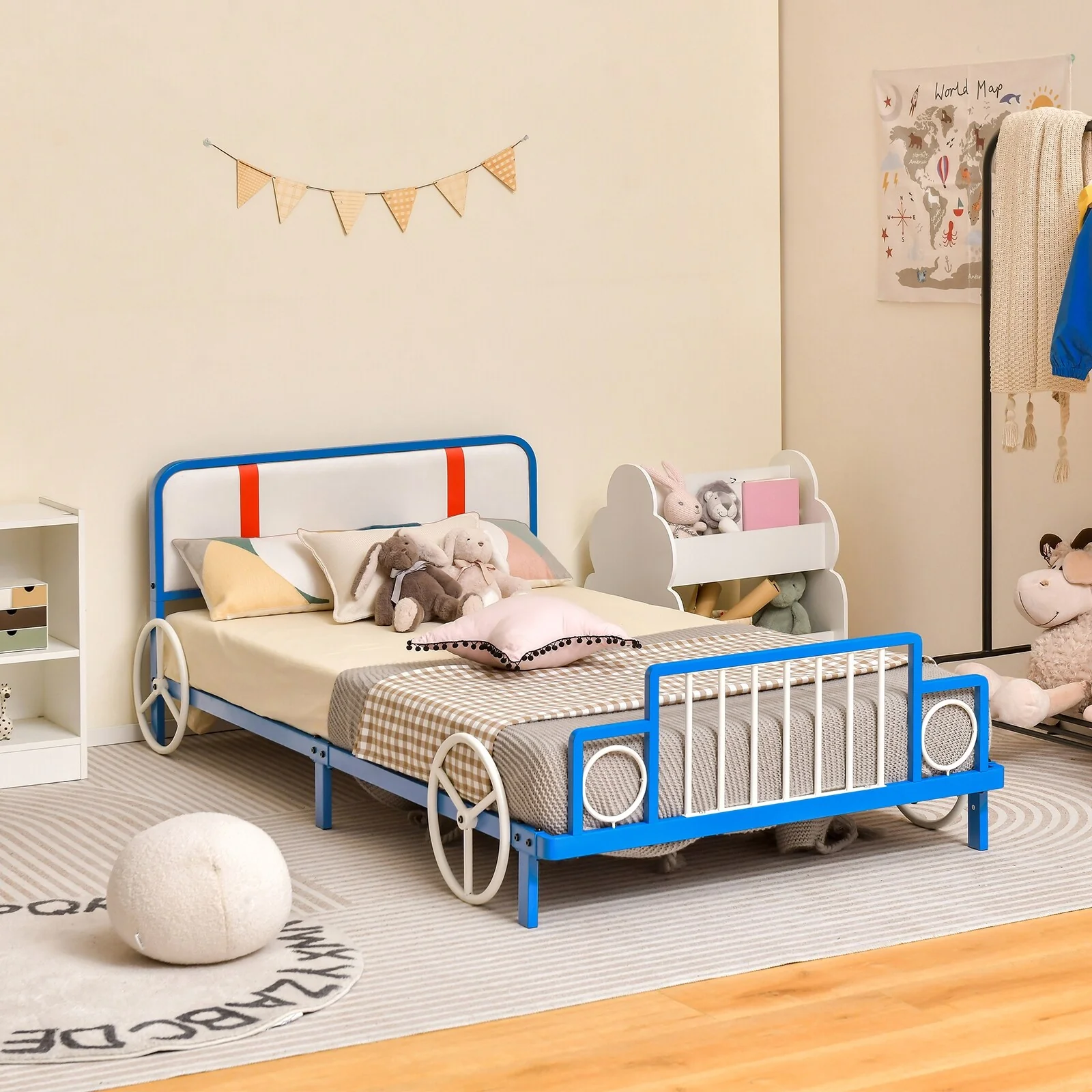 Twin Size Race Car Bed with Wheels and Rails, Fun Design for Kids' Rooms