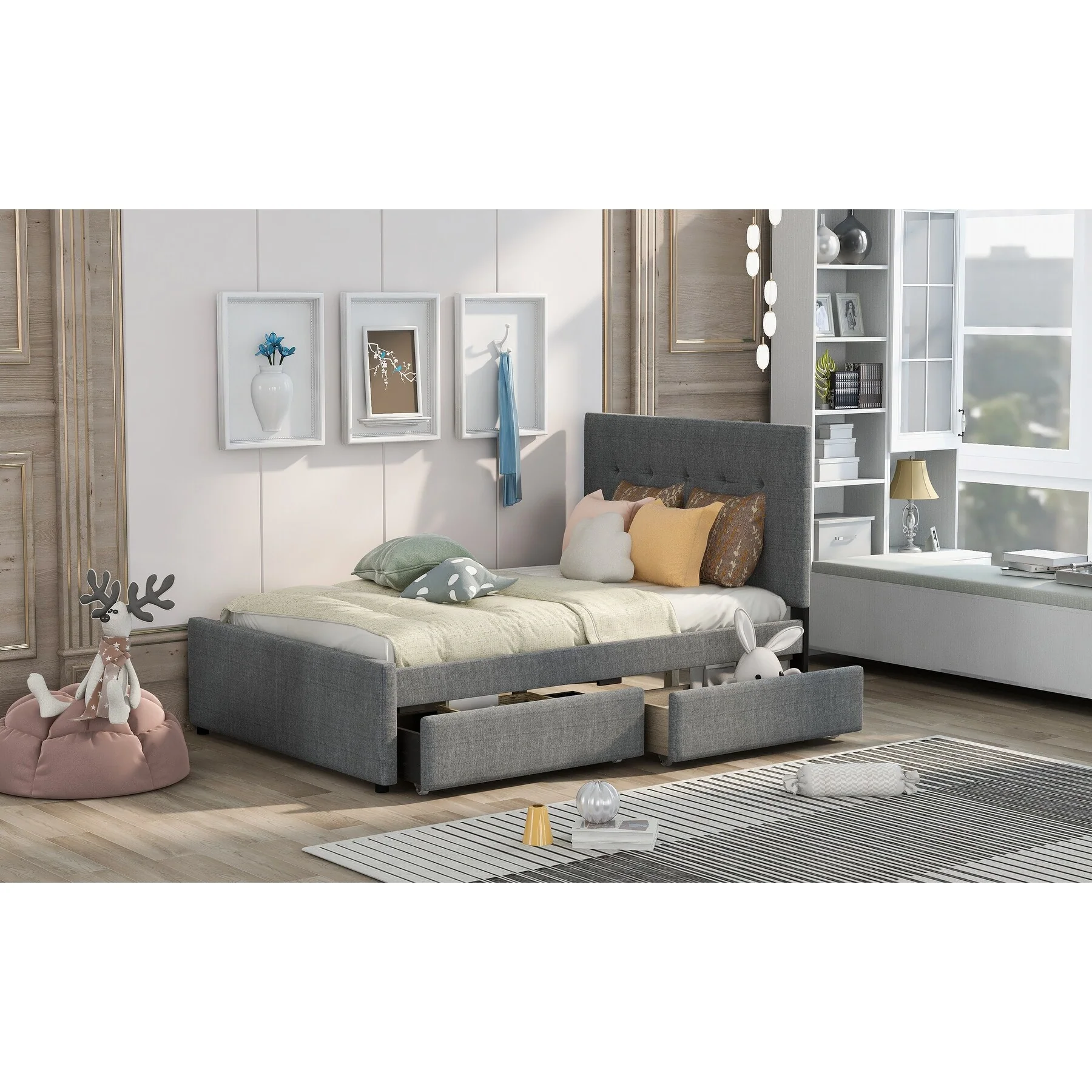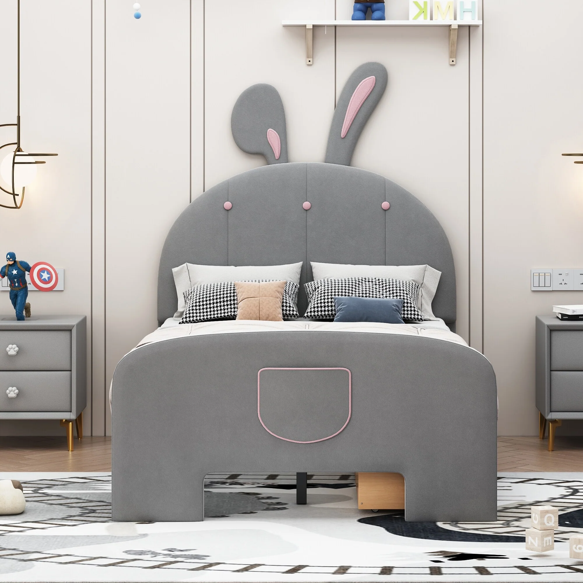 Adorable Rabbit-Themed Twin Platform Bed with Under-Bed Storage for Kids