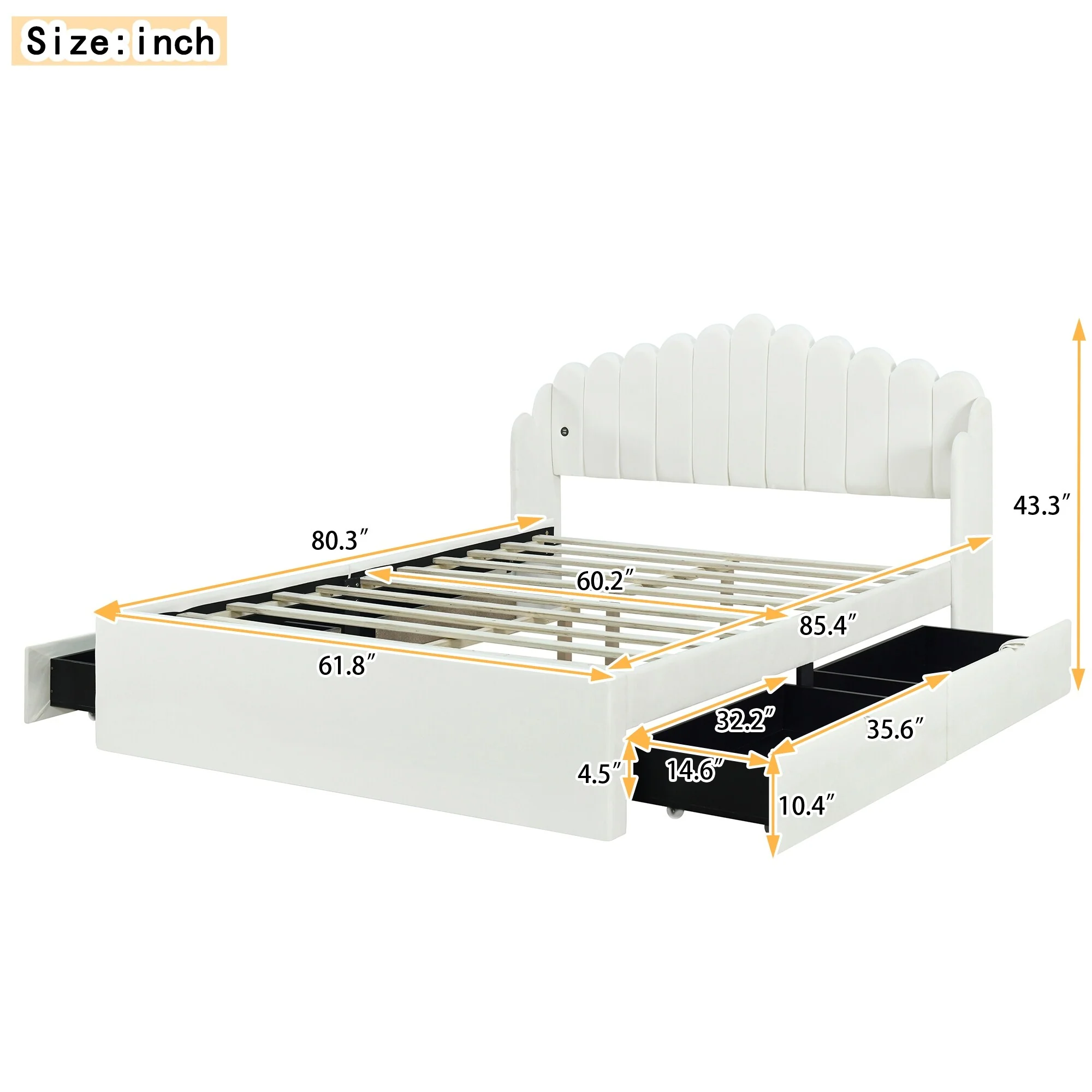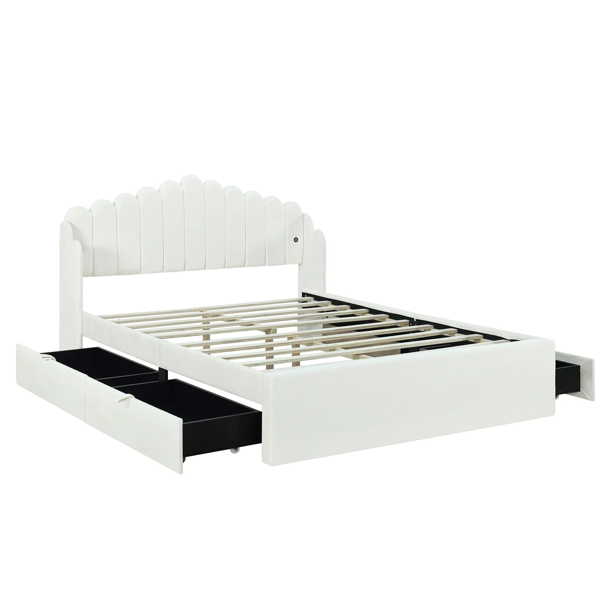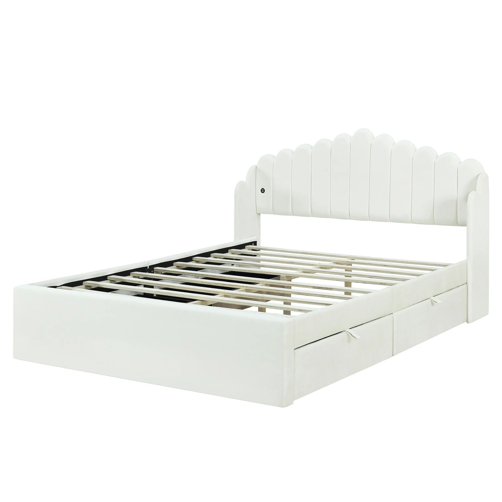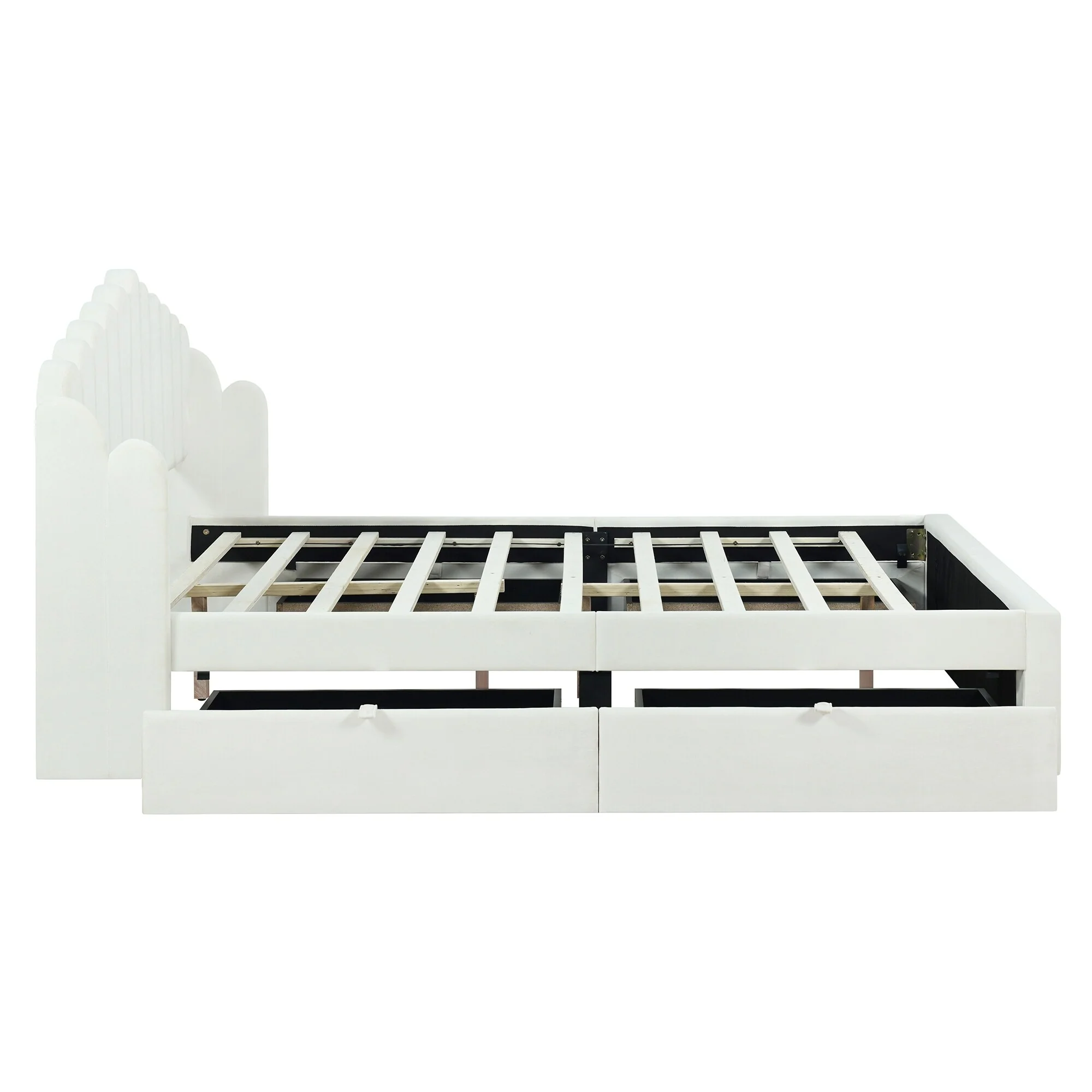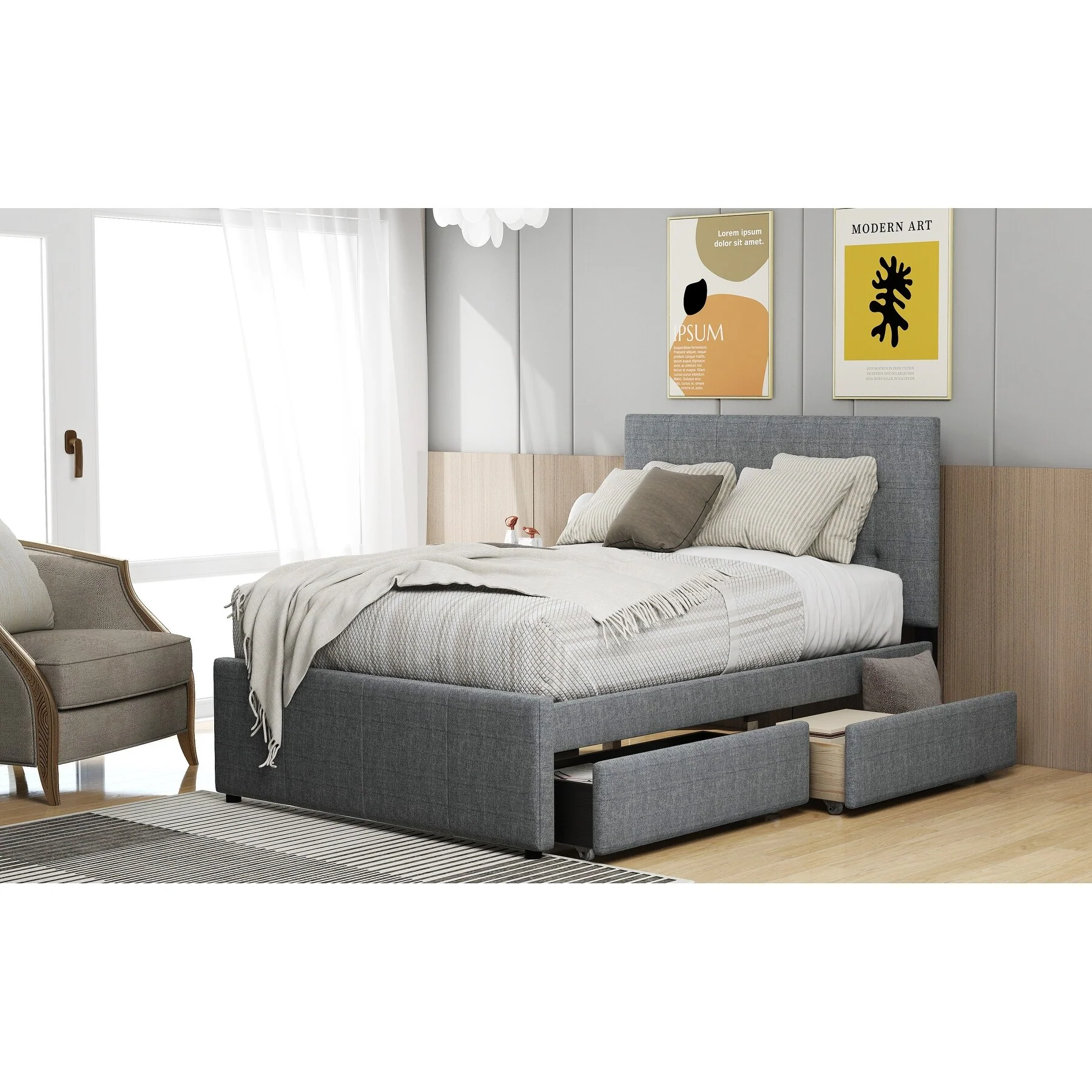 Full Upholstered Platform Bed with Built-In Storage Drawers and Solid Wood Frame