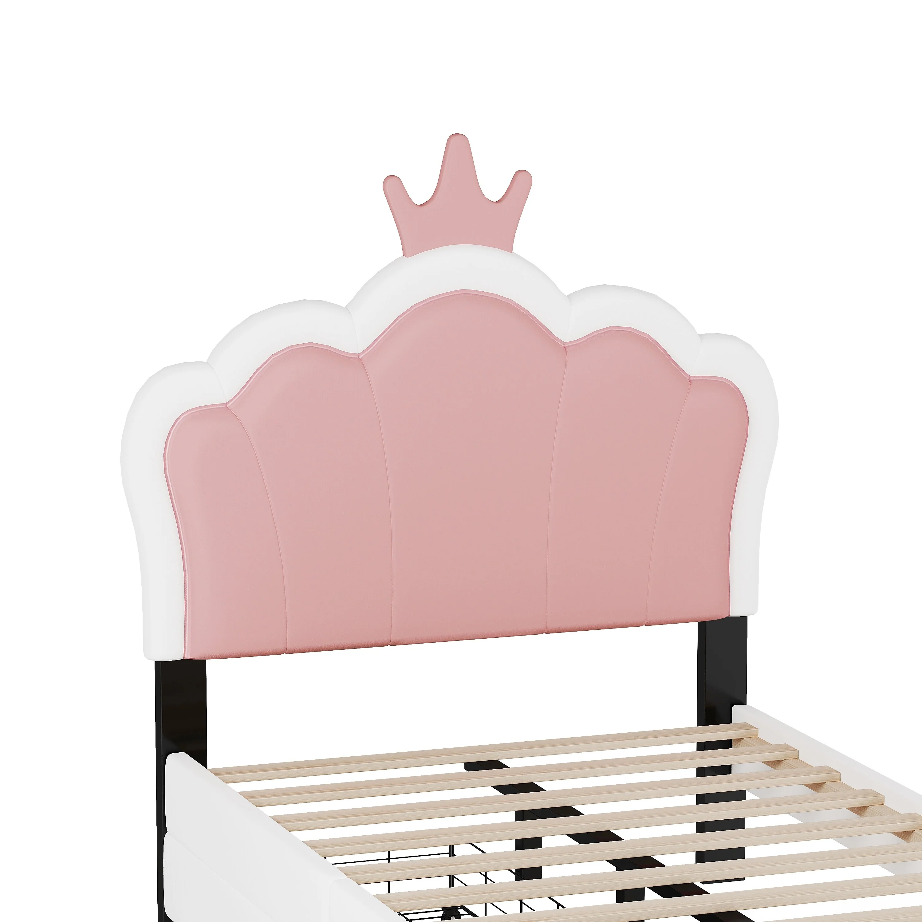 Crown Headboard Twin Platform Bed with 2 Storage Drawers, Ideal for Kids' Rooms
