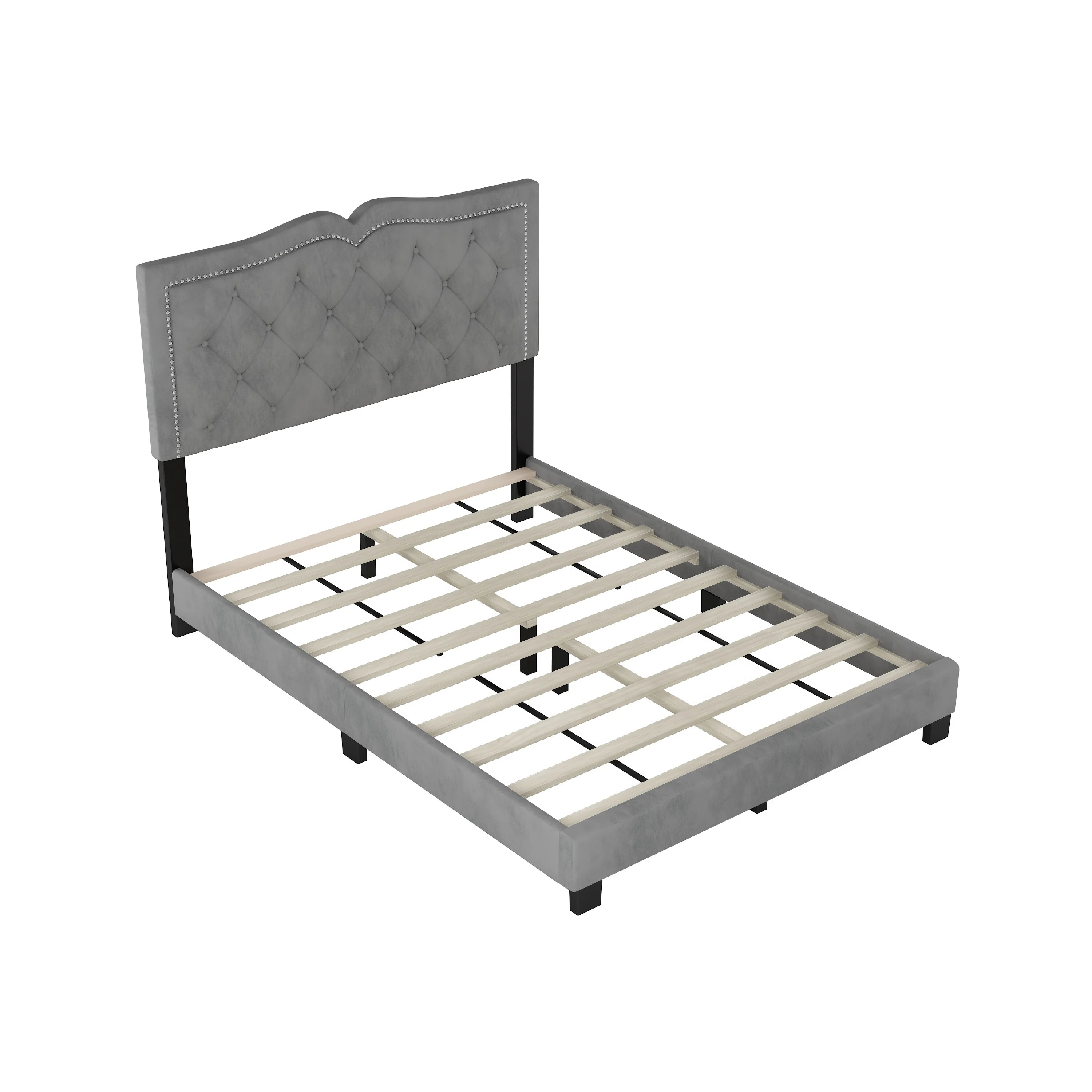 Full Size Velvet Upholstered Platform Bed with Tufted Headboard and Rivet Design