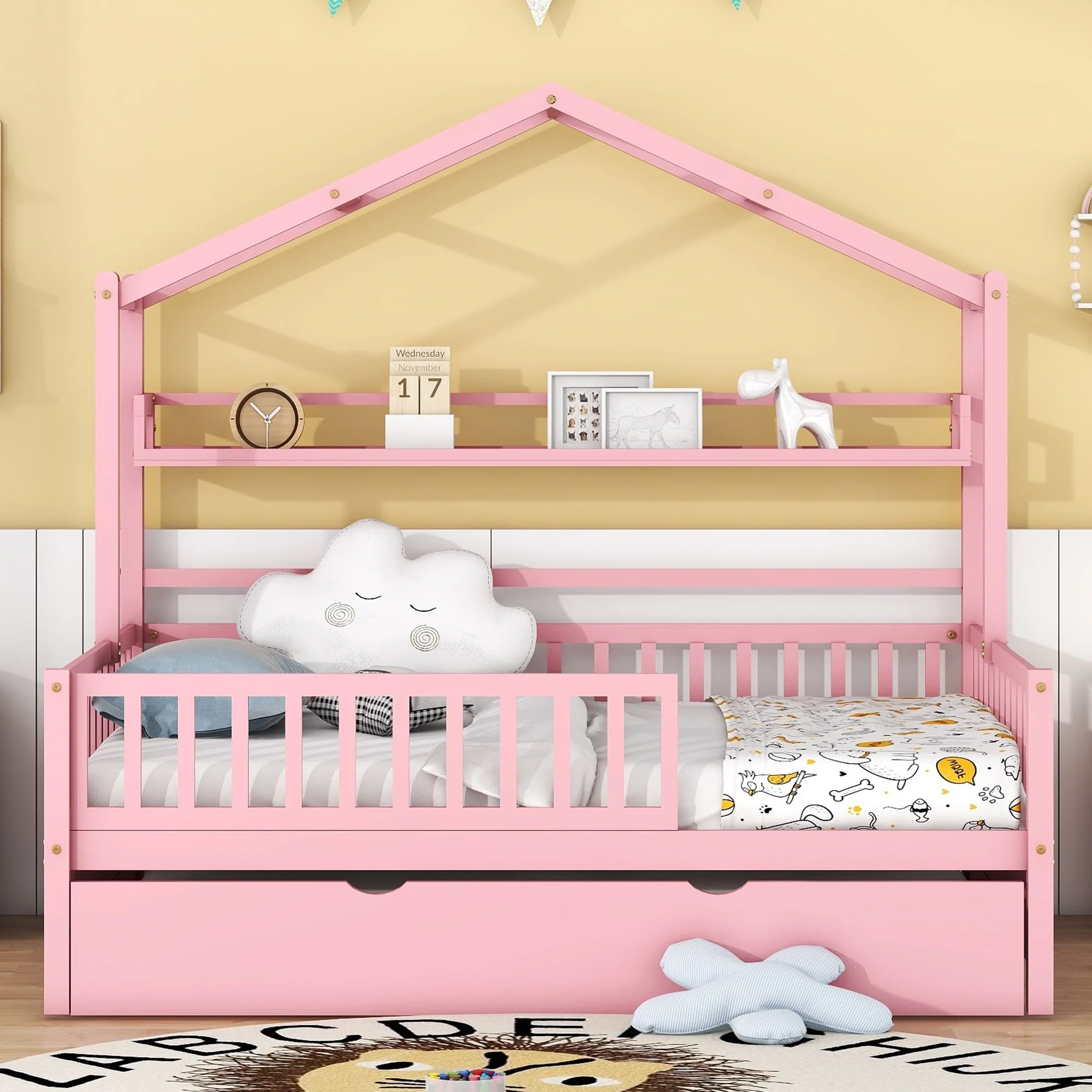 Fun House-Shaped Twin Platform Bed, Pine Wood and MDF Construction