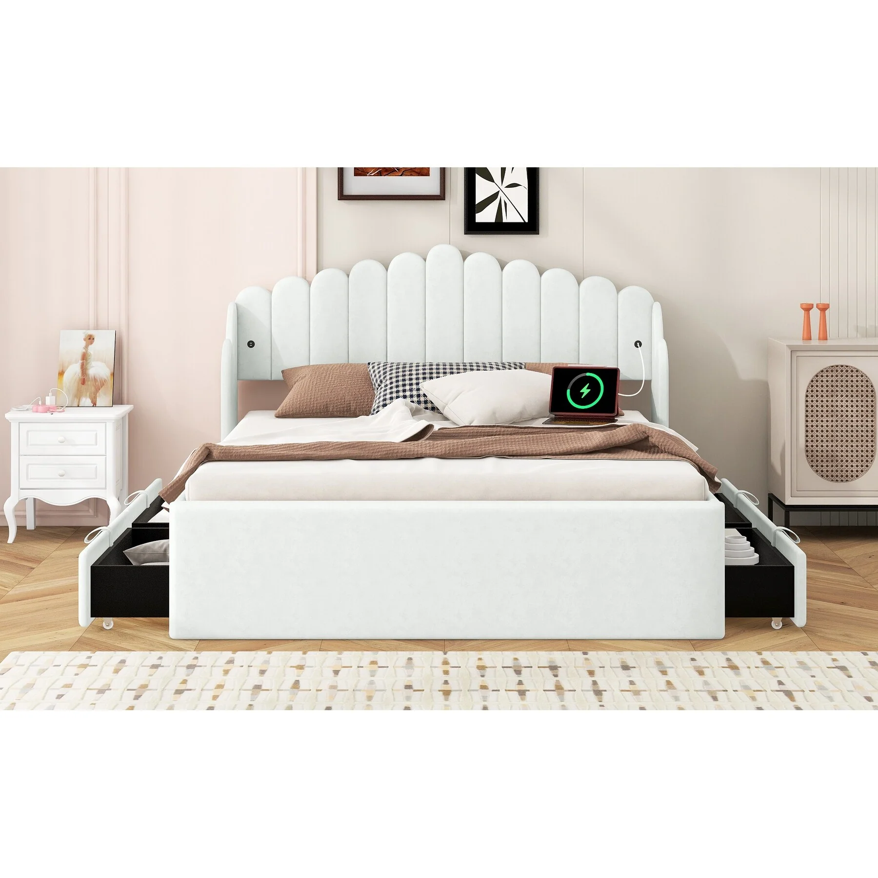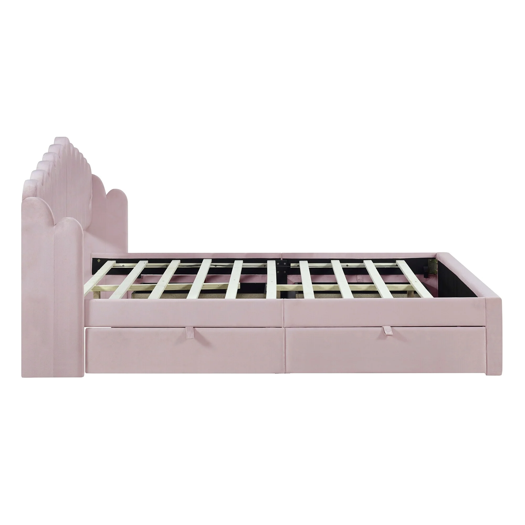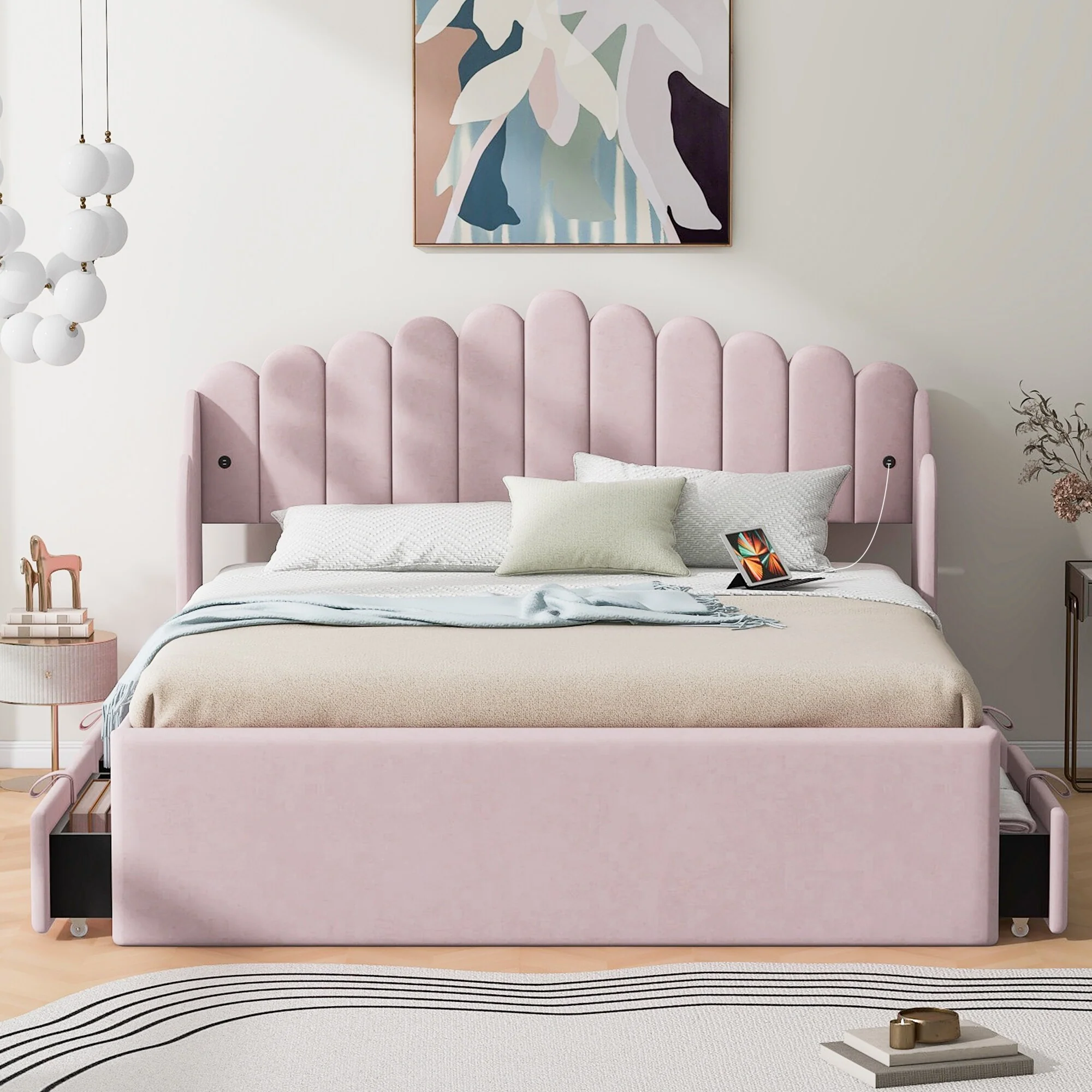 Pink Queen Platform Bed with 4 Storage Drawers and USB Charging Ports