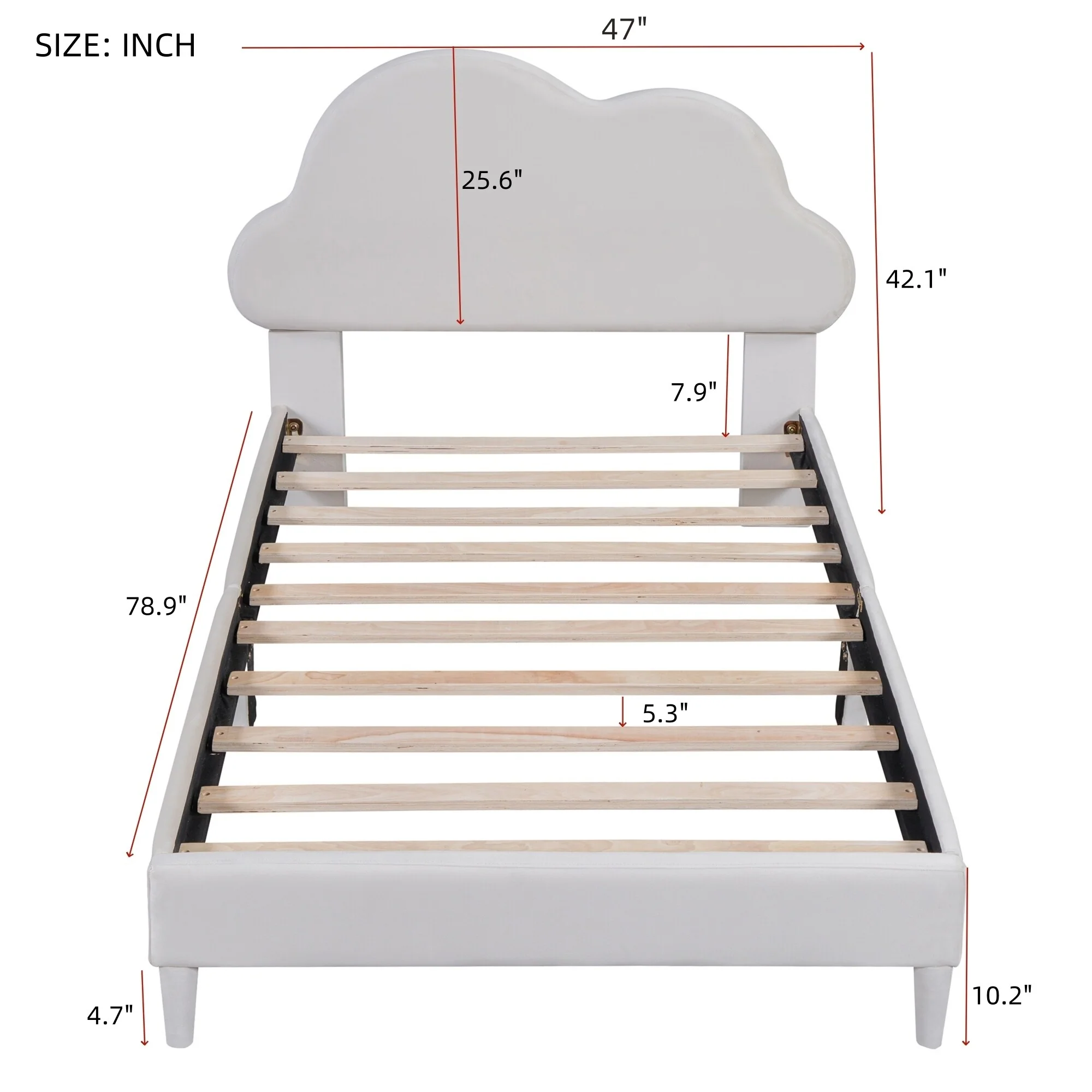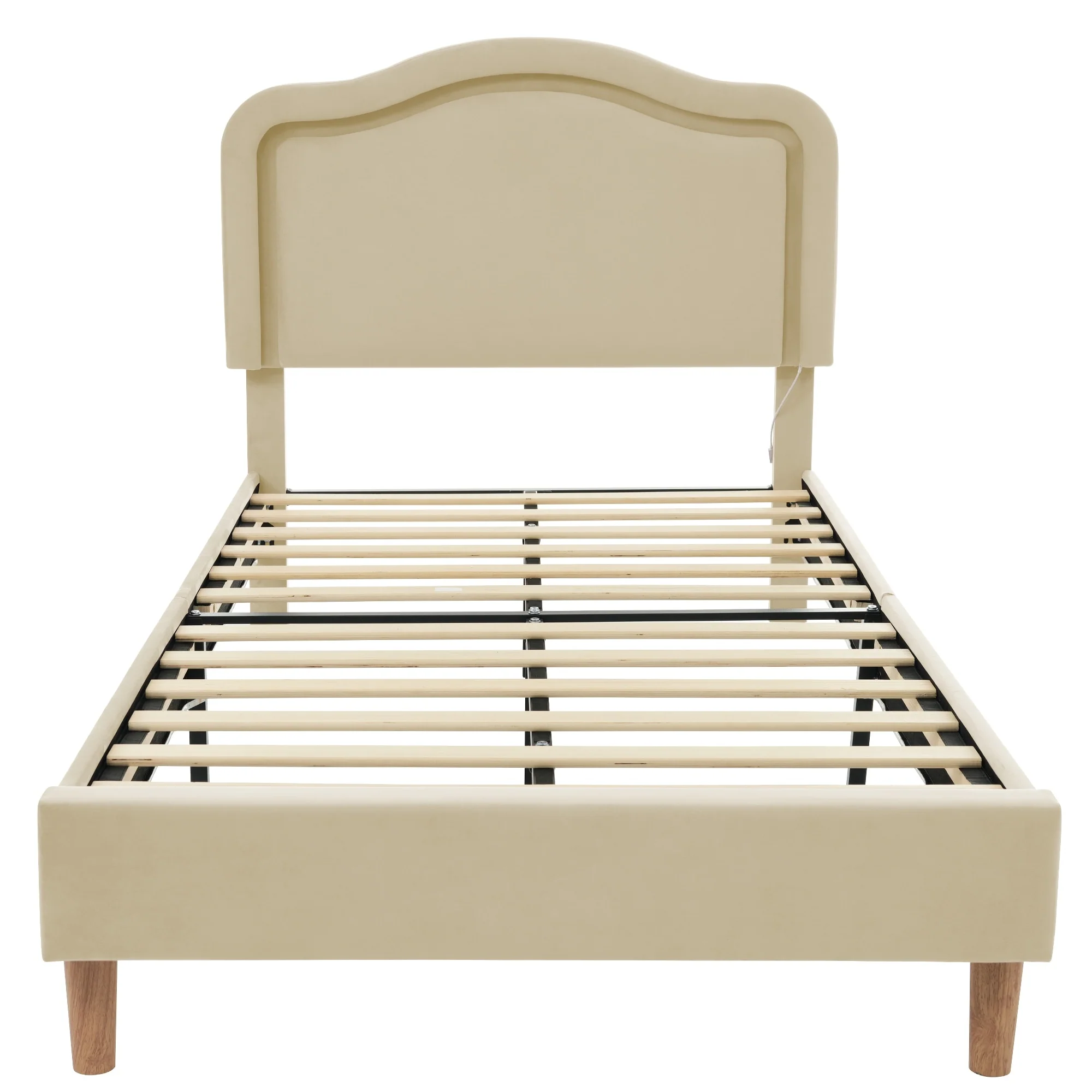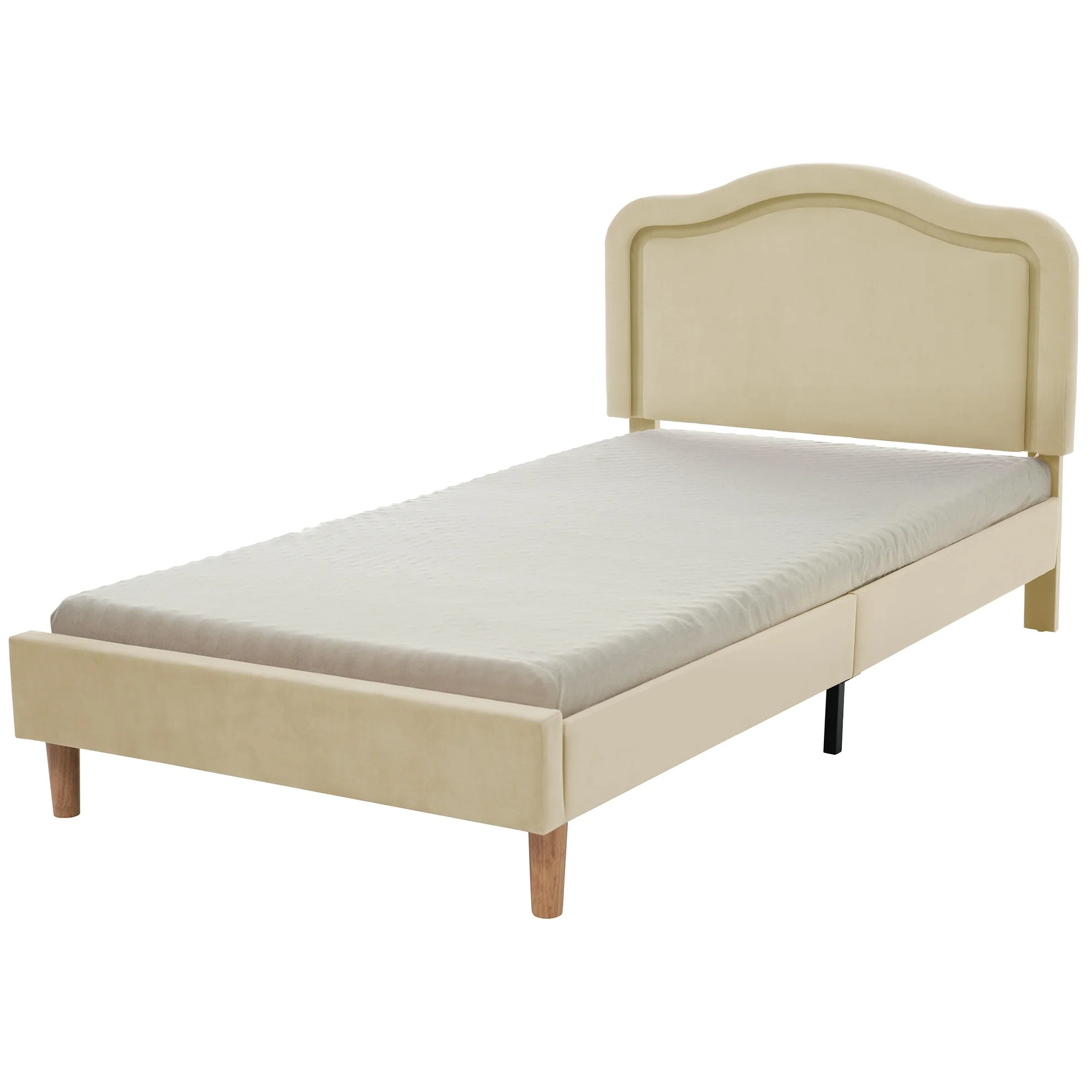Twin Size Velvet Upholstered Cloud-Shaped Platform Bed with Headboard