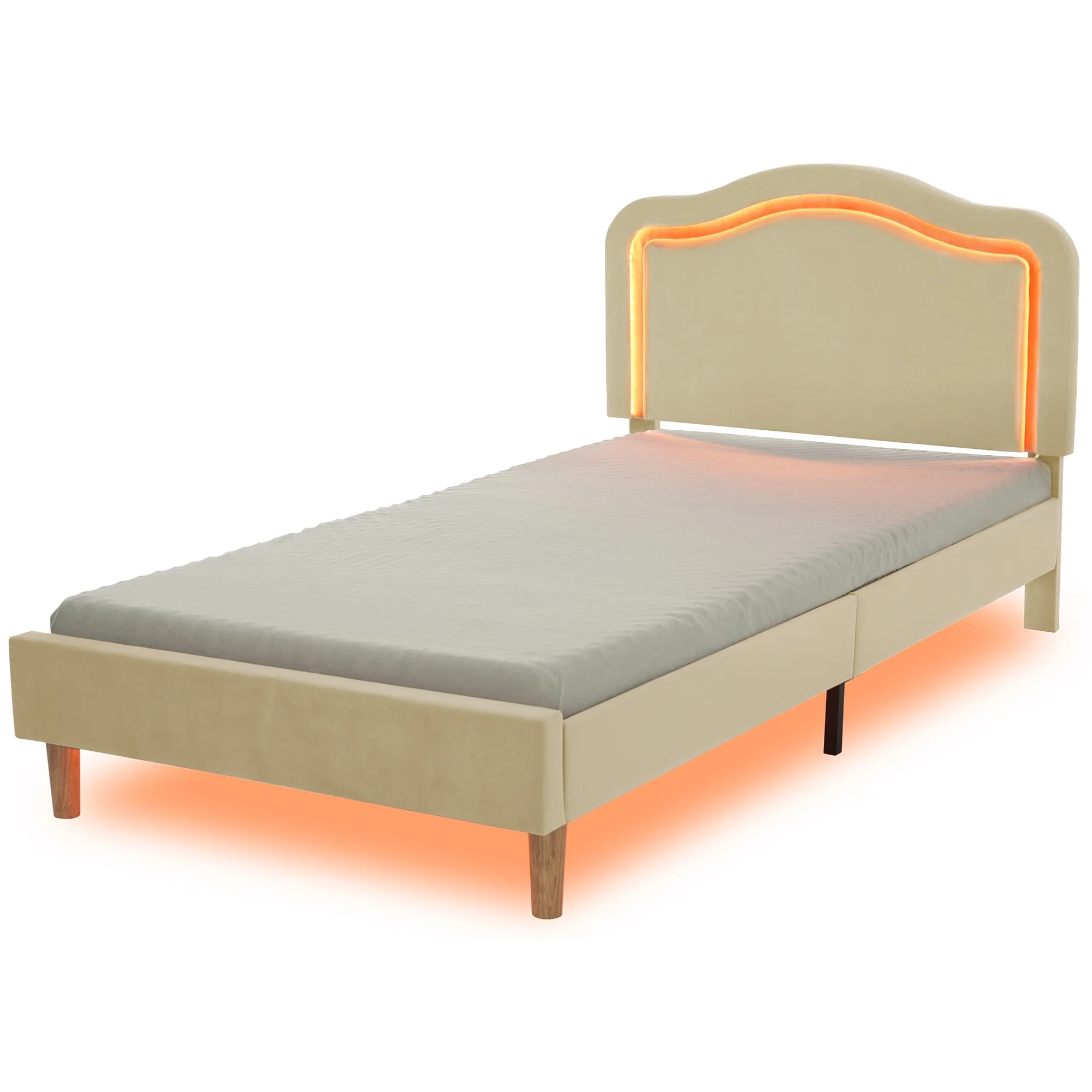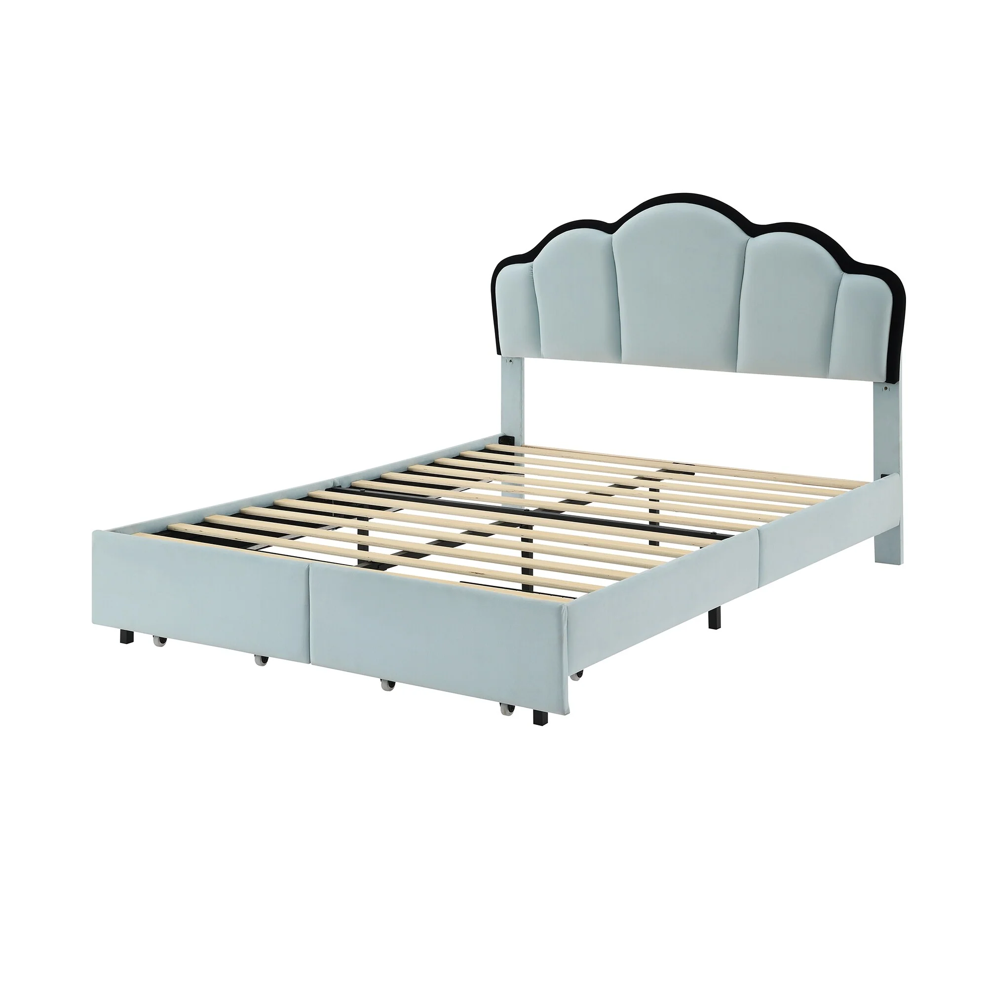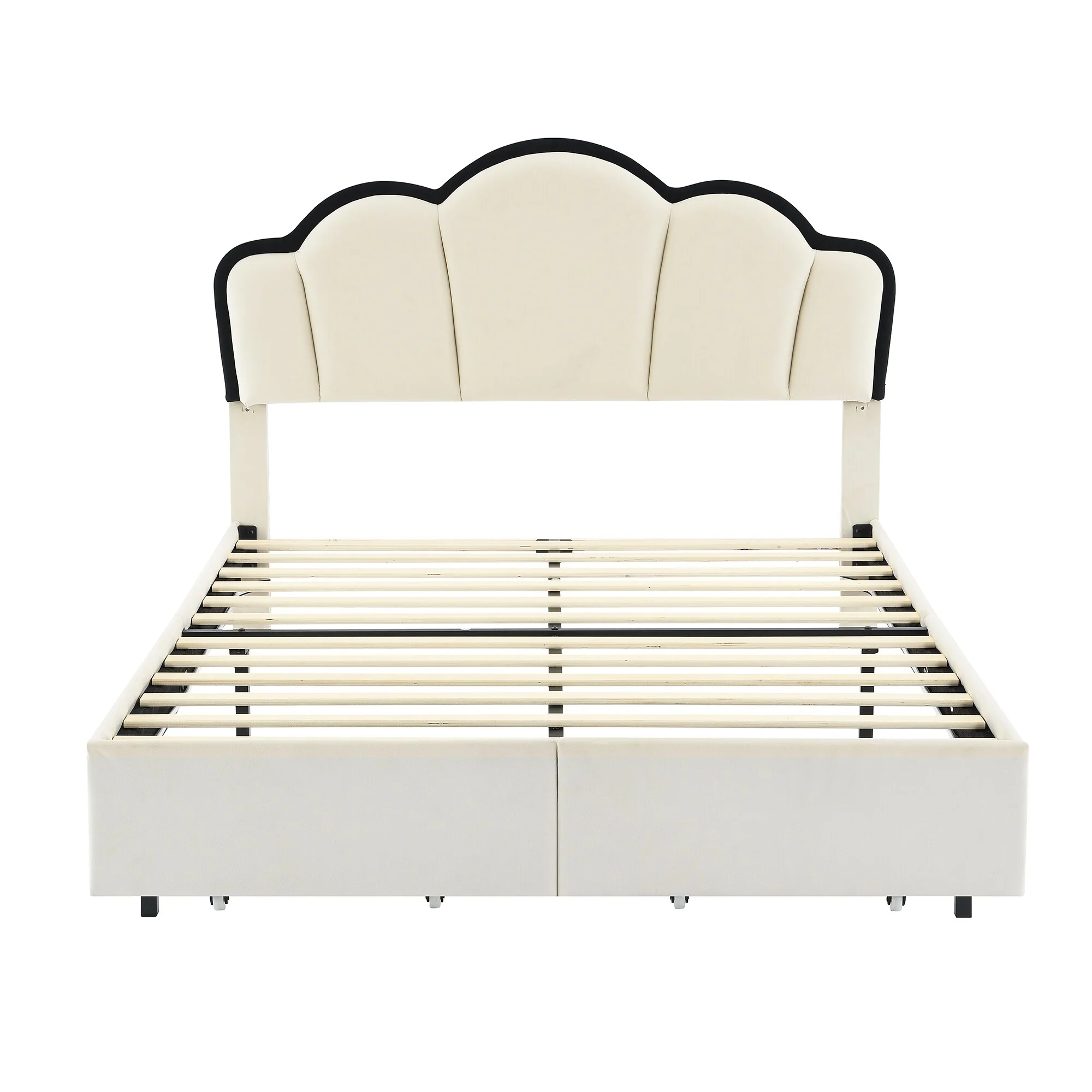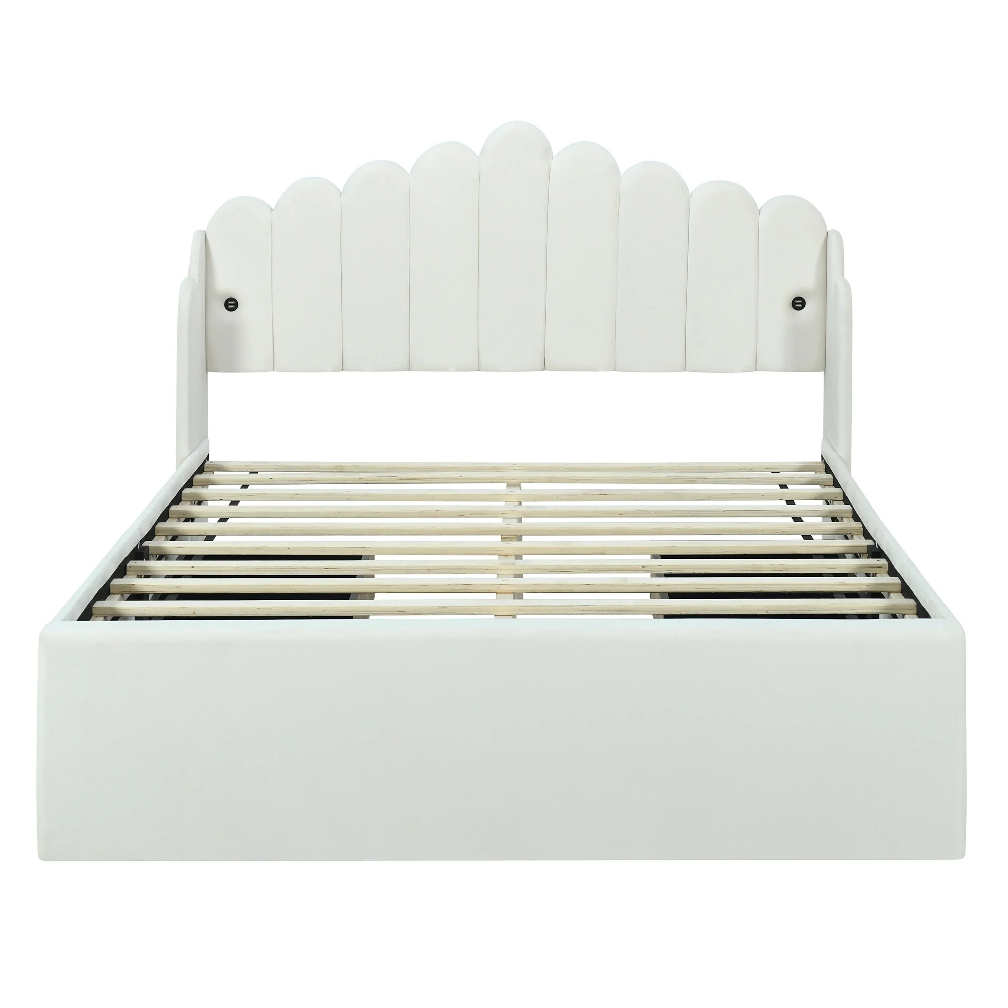 Twin Size Velvet Upholstered Cloud-Shaped Platform Bed with Headboard