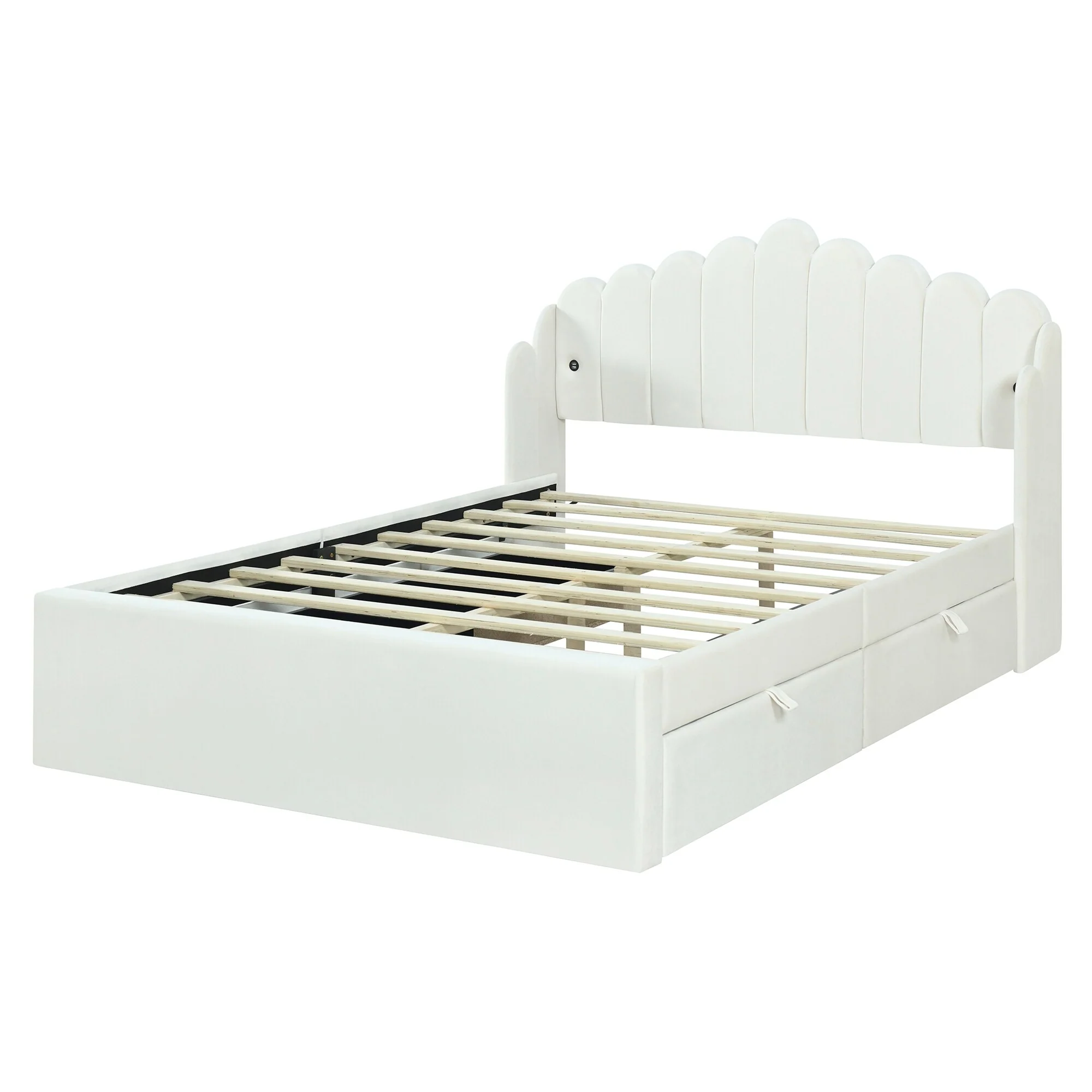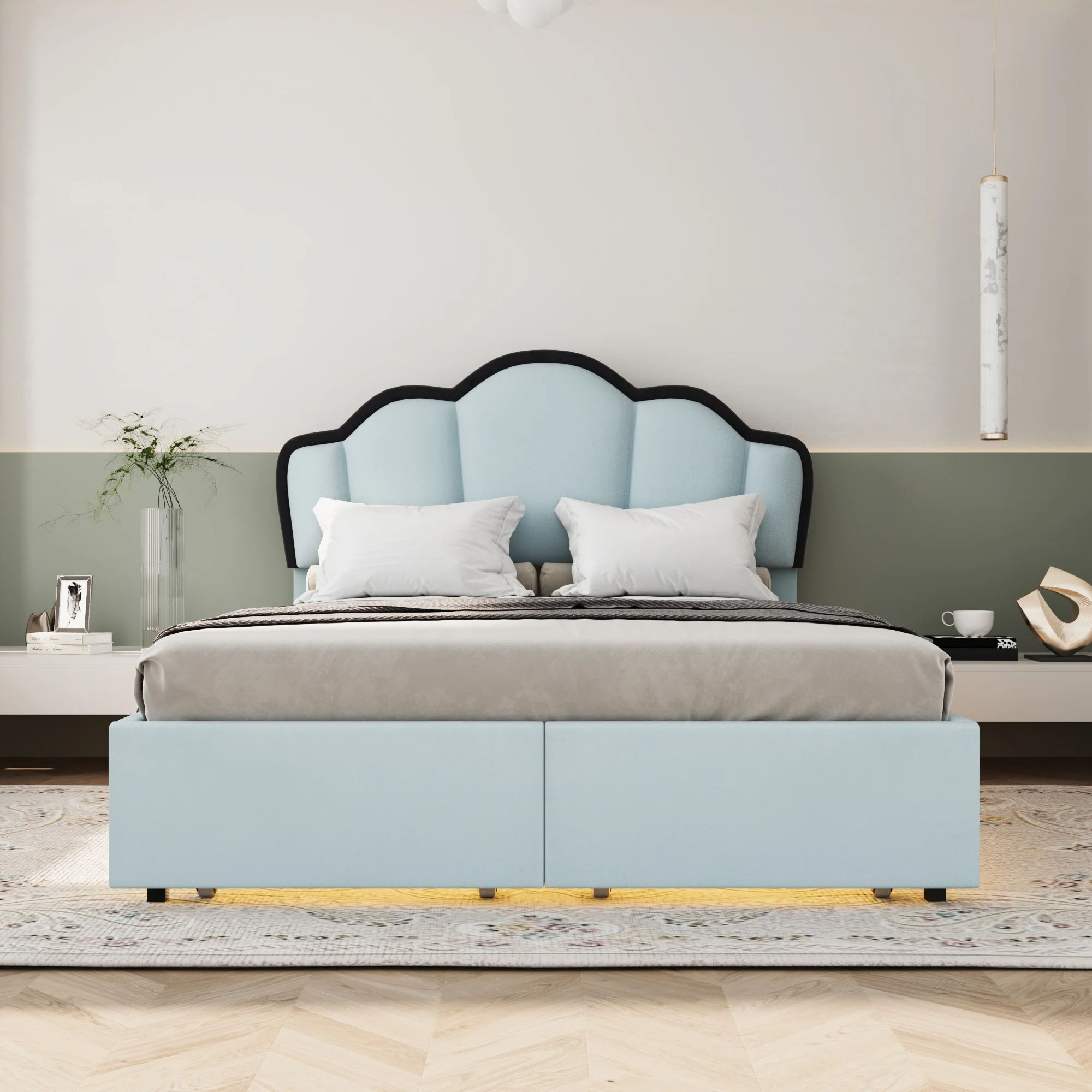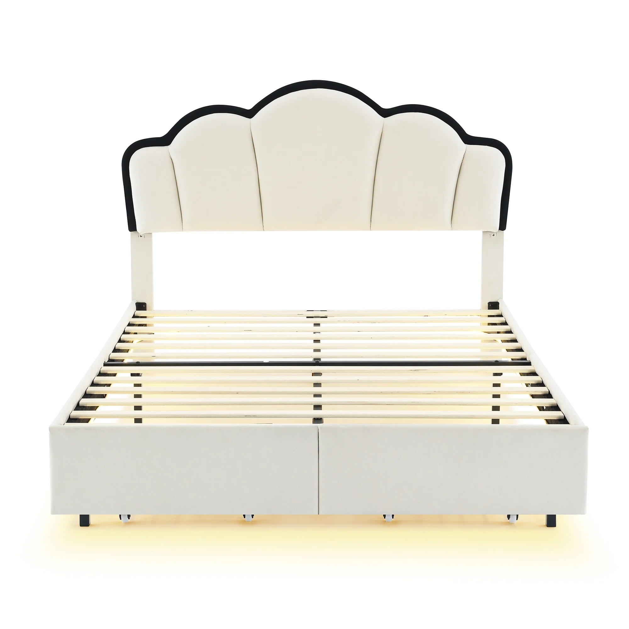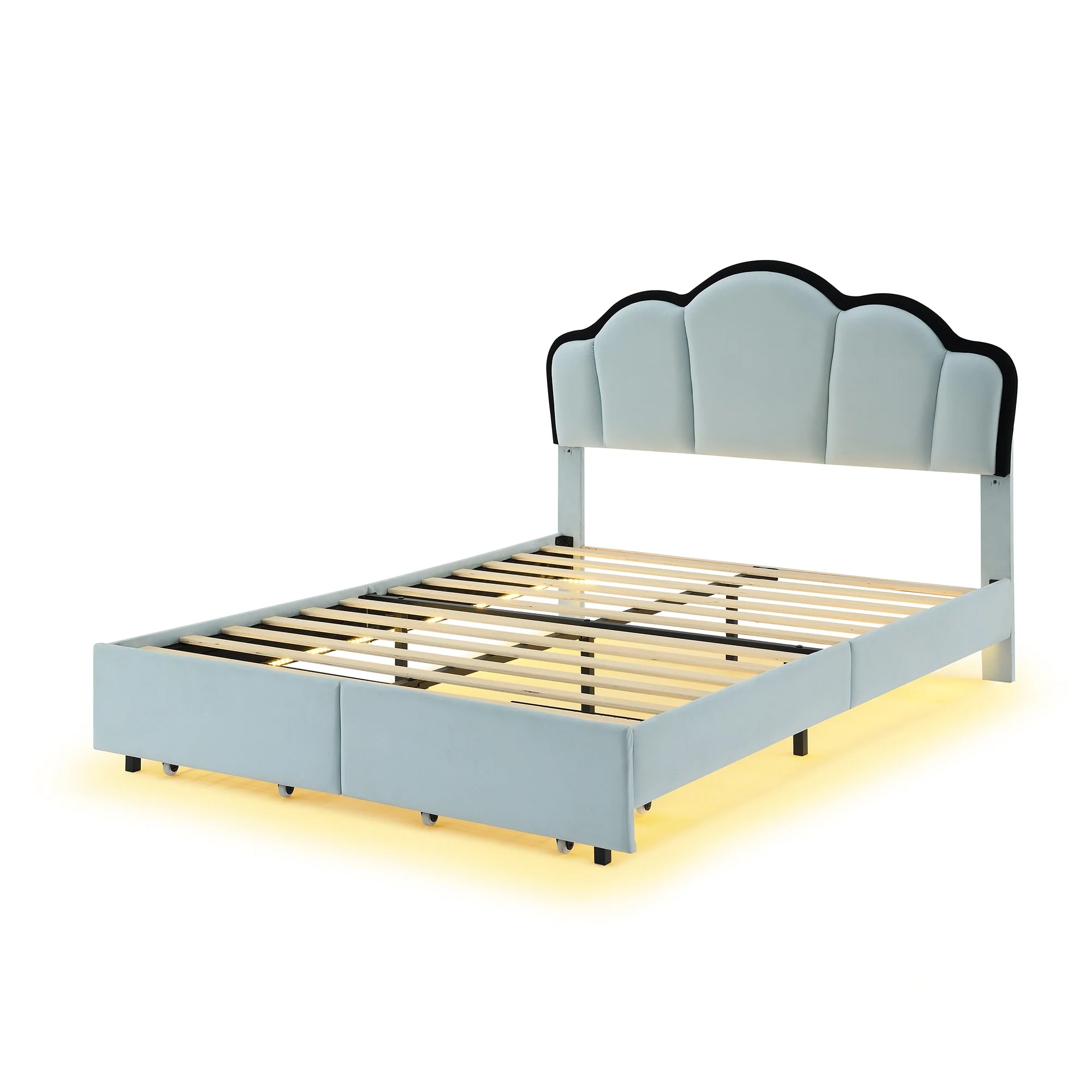Full Size Upholstered Platform Bed with LED and 2 Storage Drawers, Princess Style