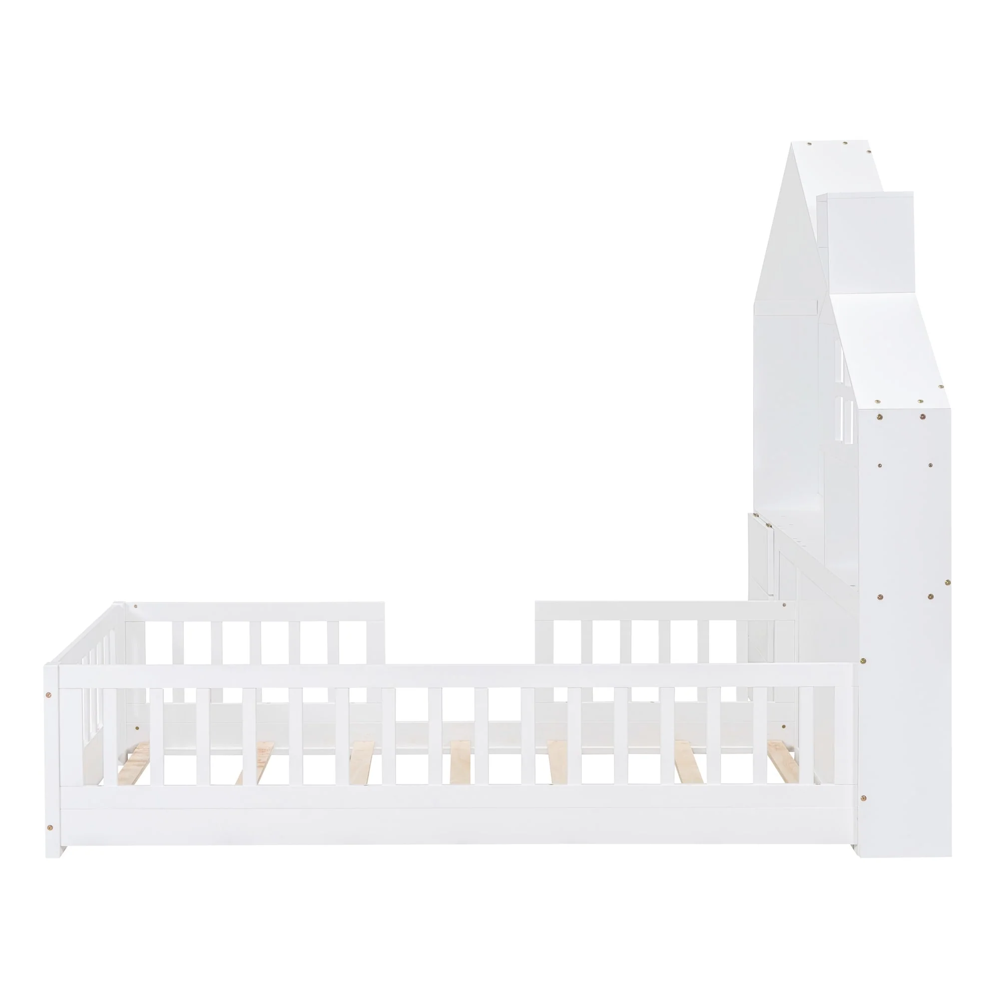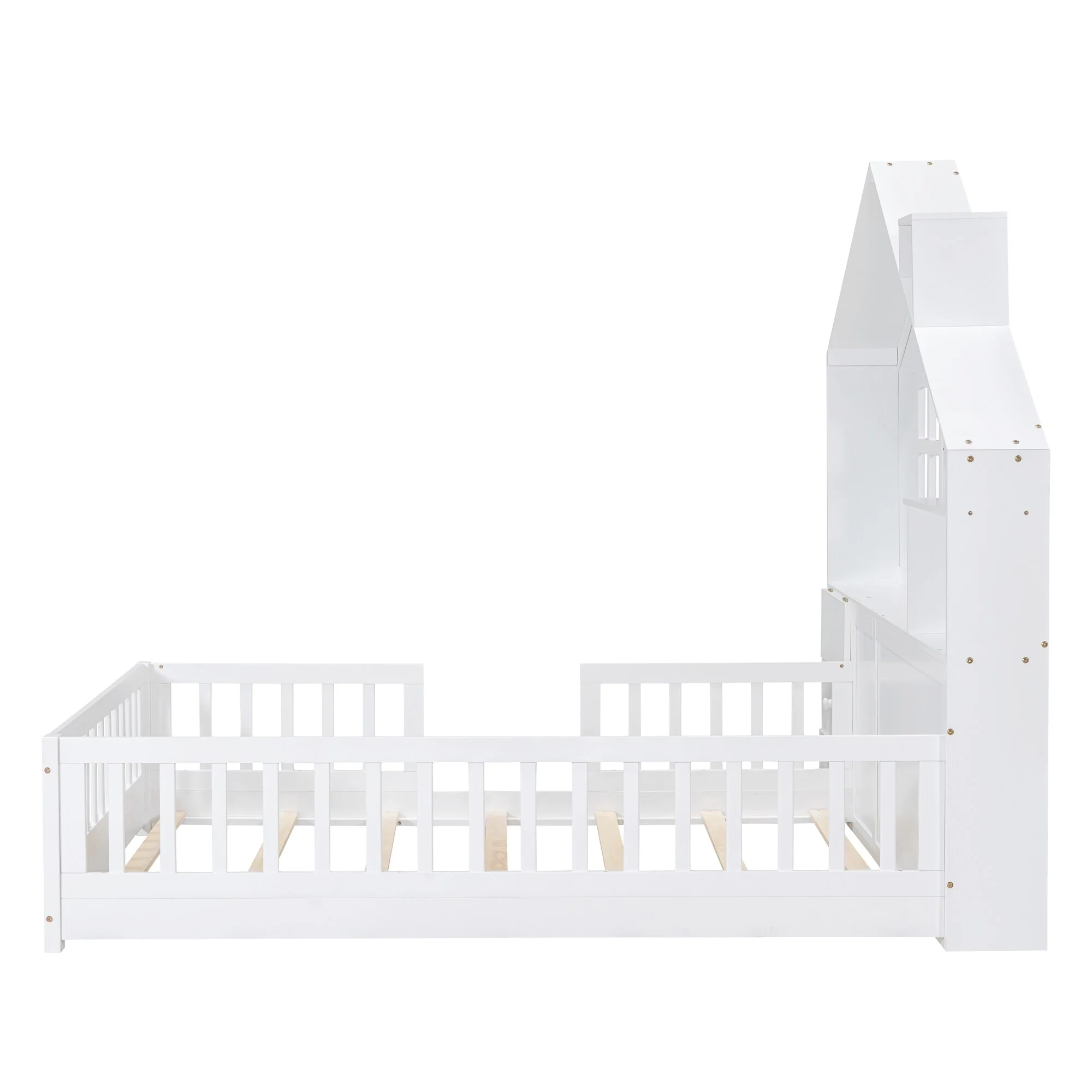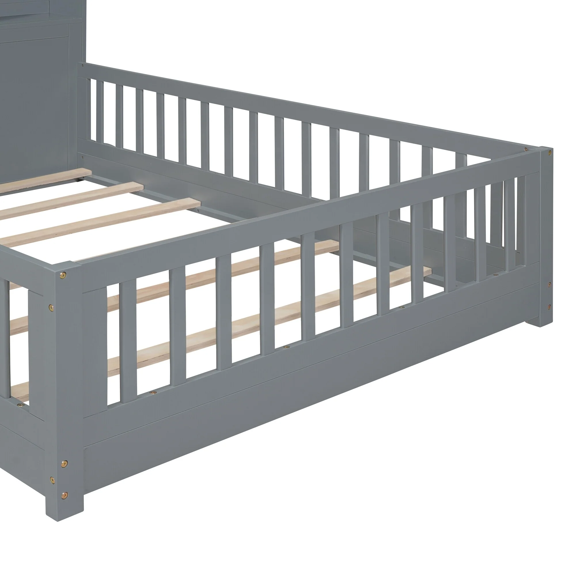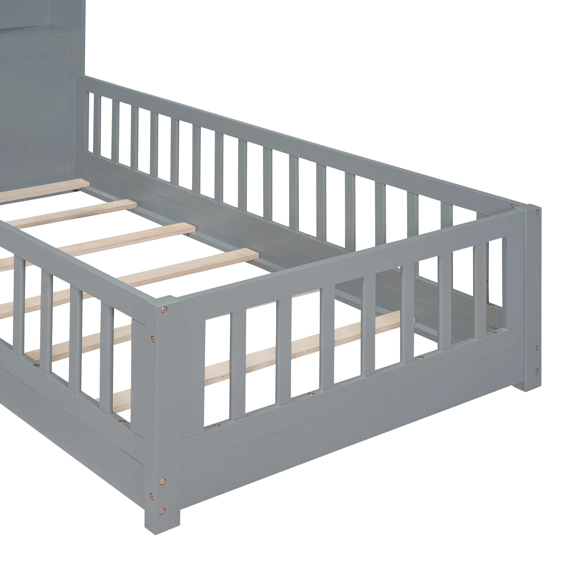 Twin Size Kids Floor Bed with Safety Rails and Removable Door