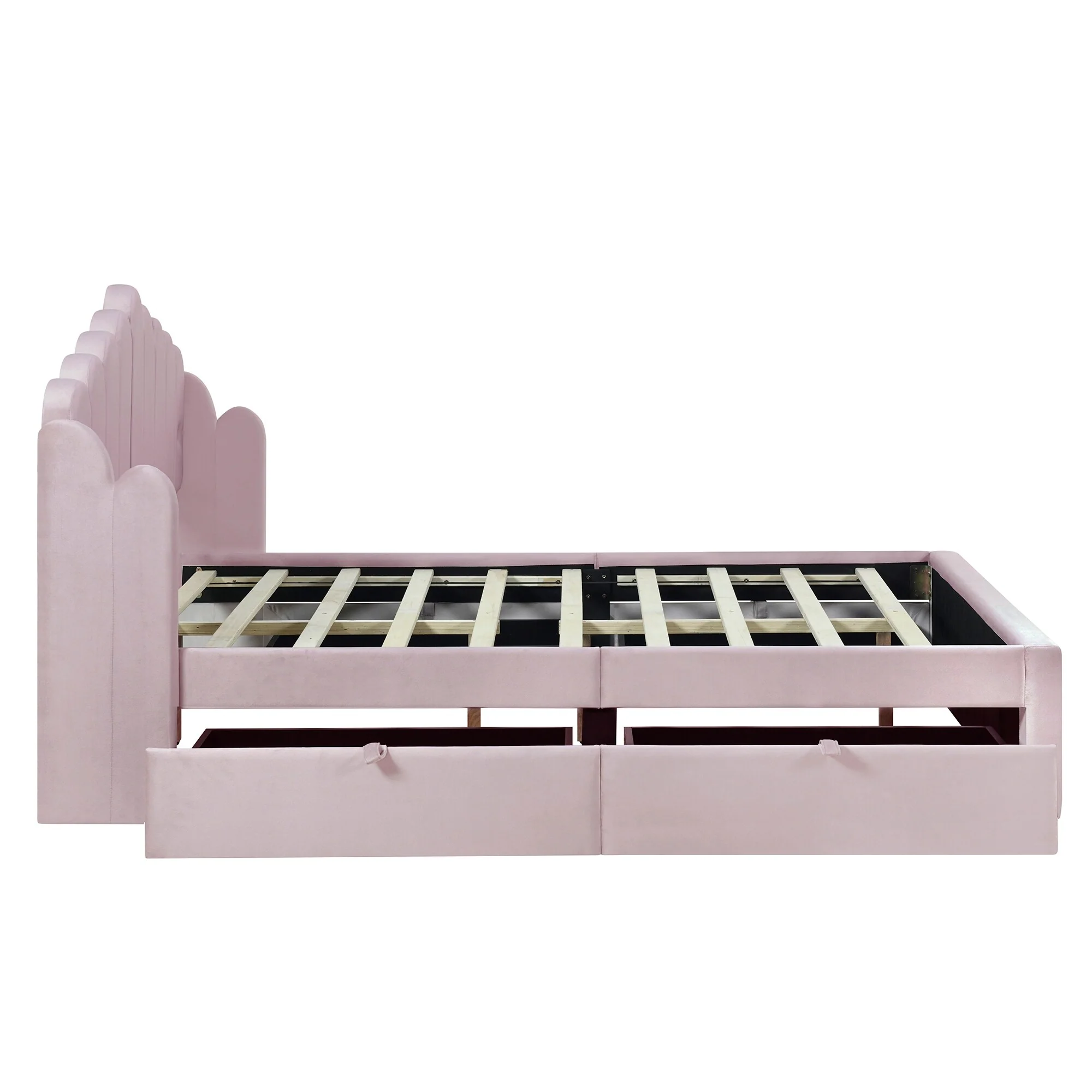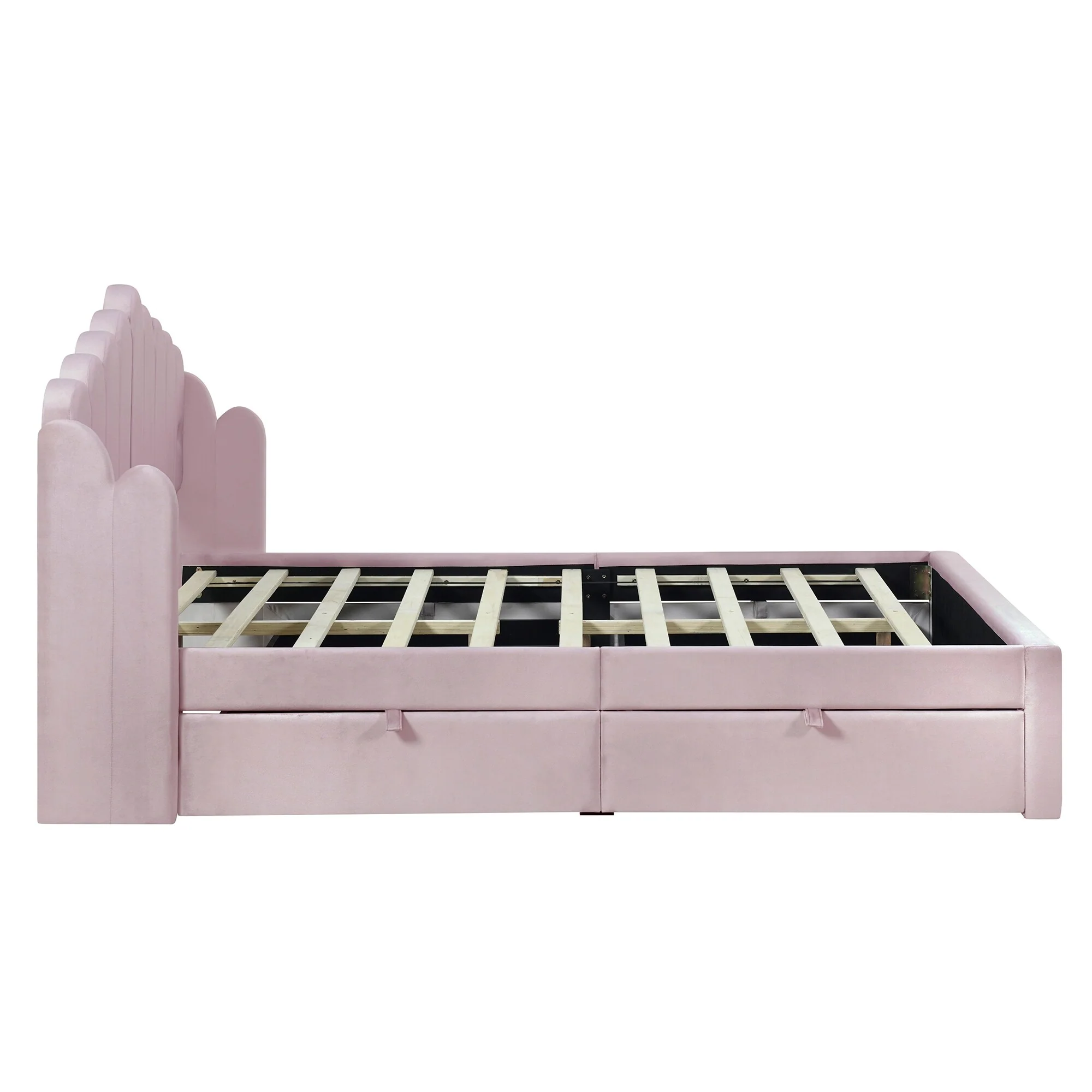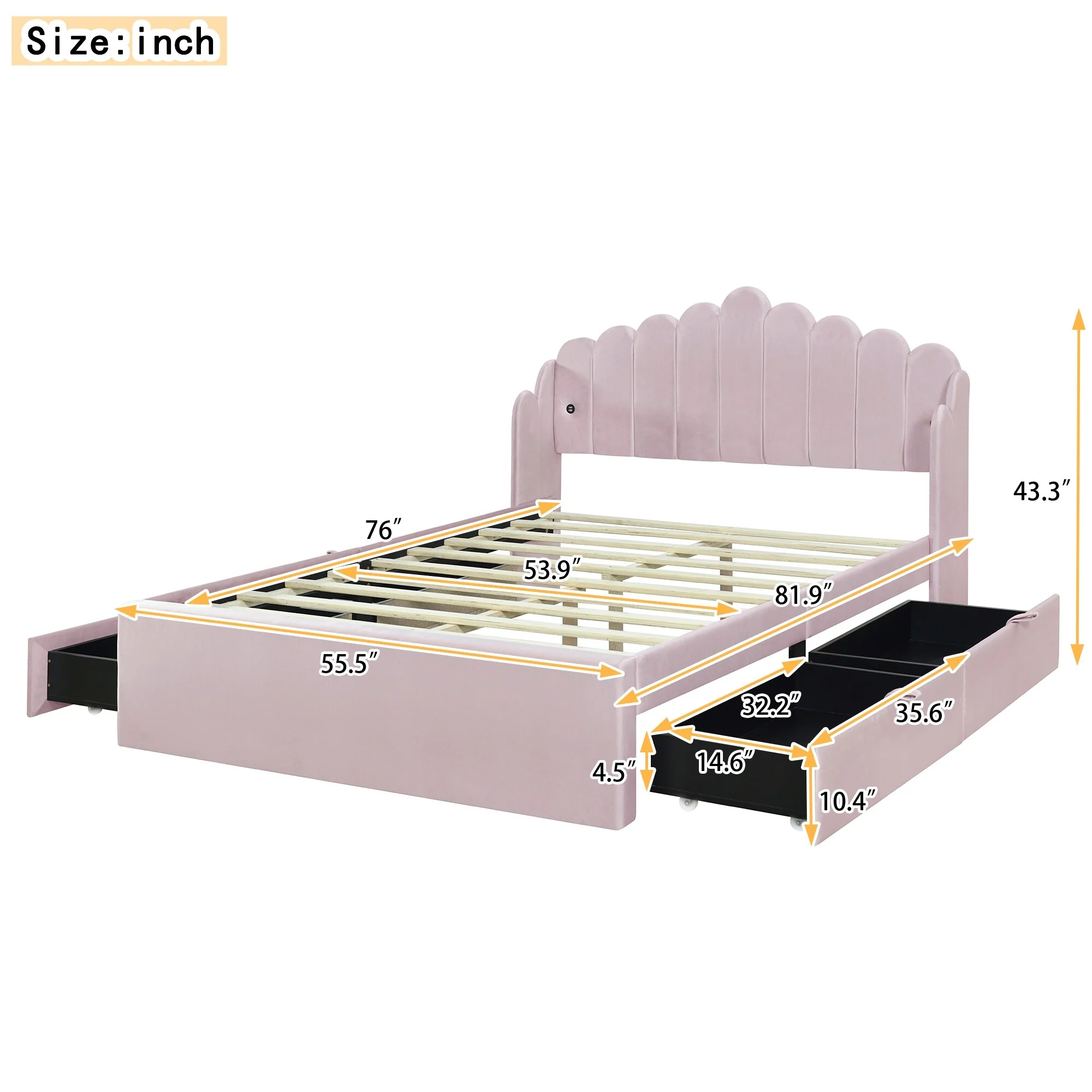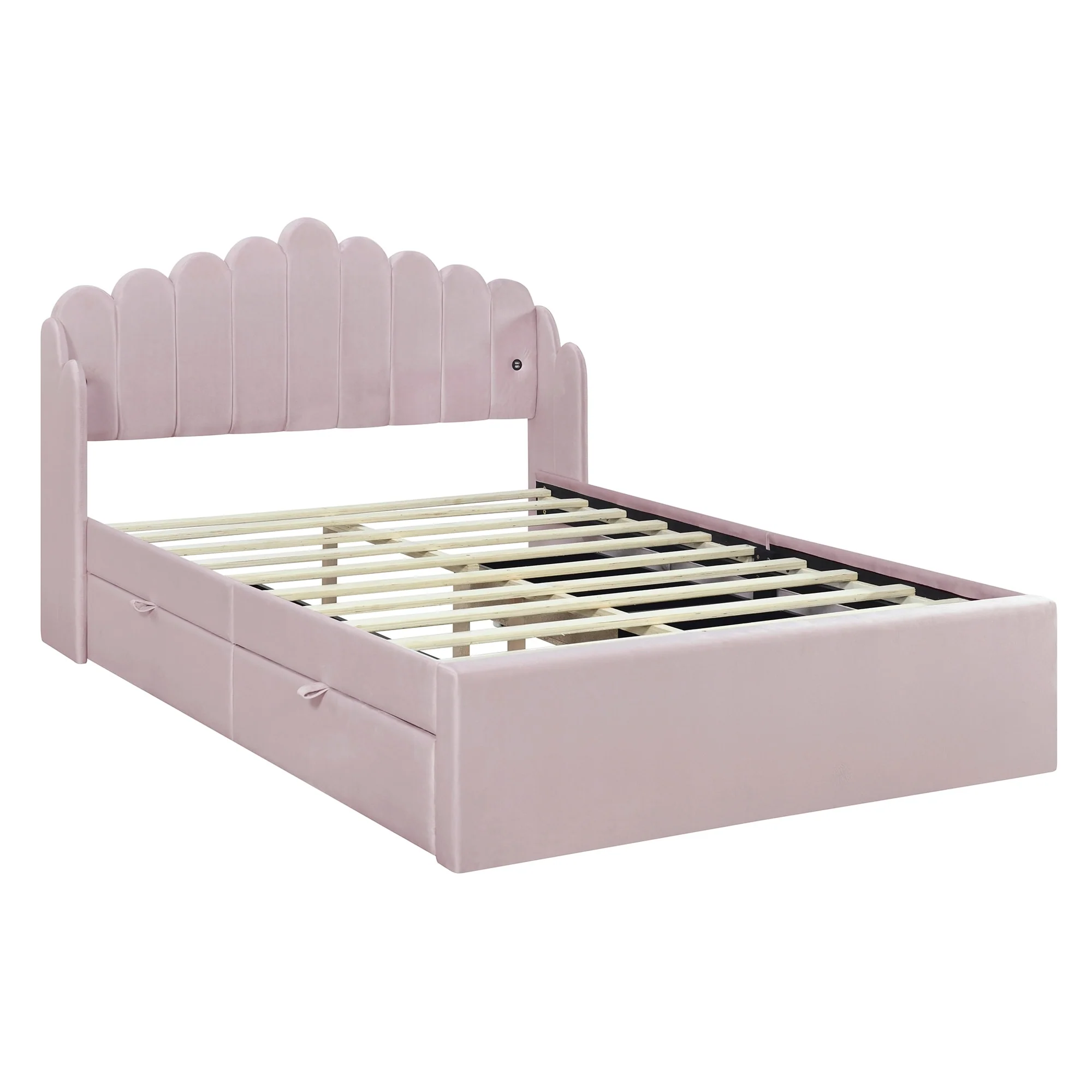 Pink Full Platform Bed with Storage Drawers and USB Headboard for Convenience