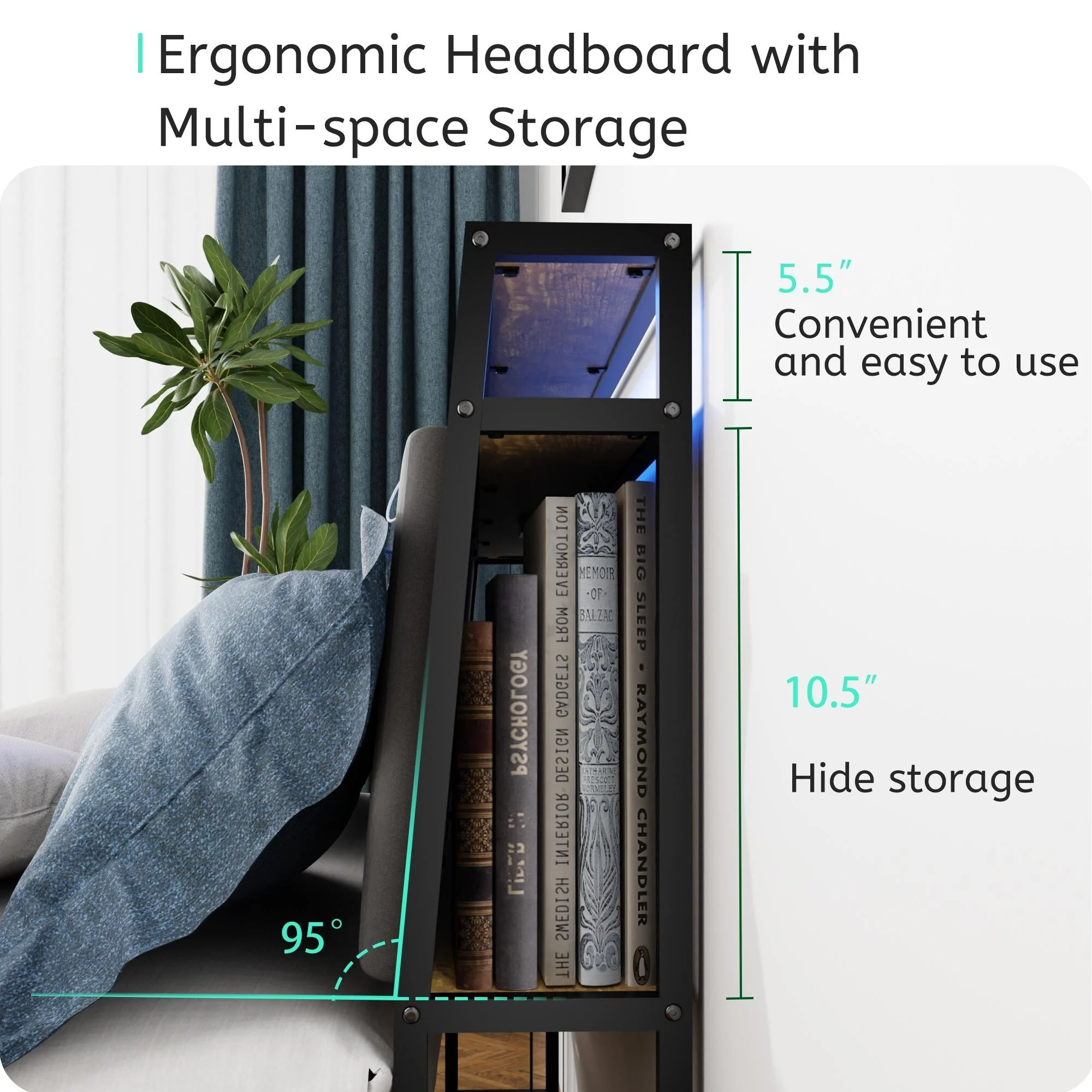 Queen Metal Platform Bed with Ergonomic Headboard, RGB Lights, and Built-in Chargers