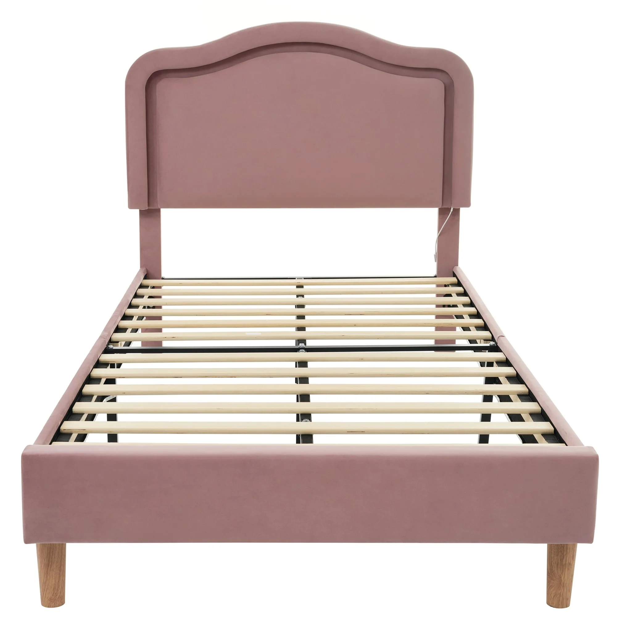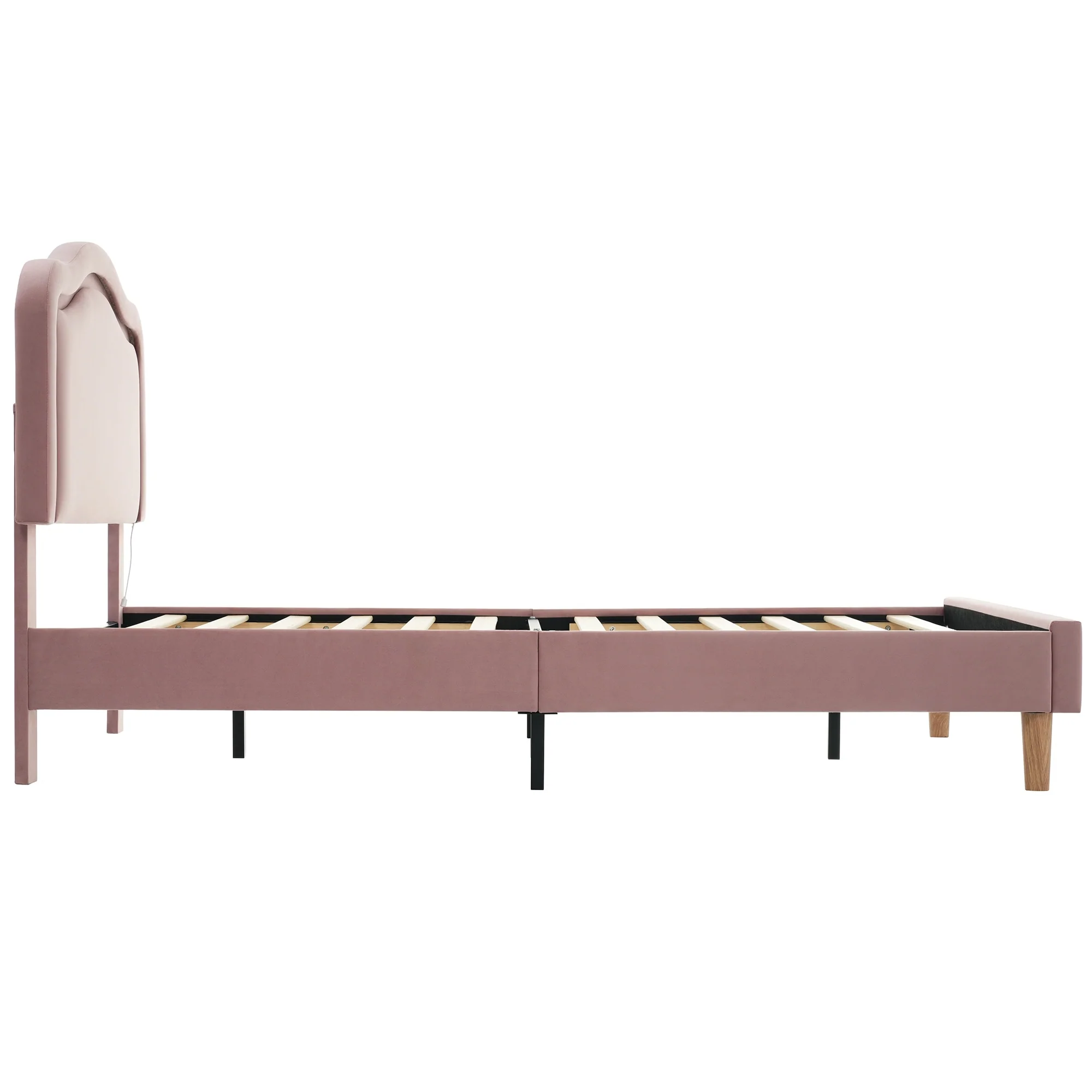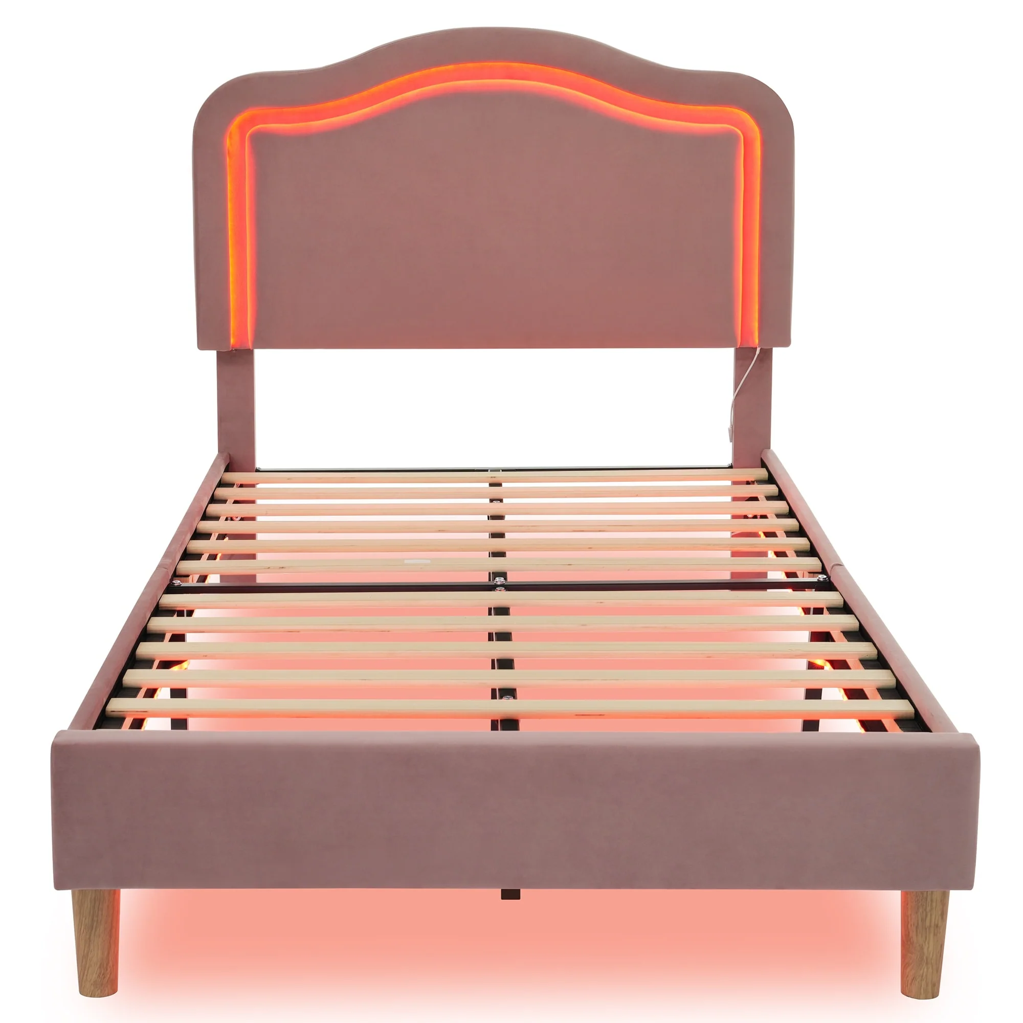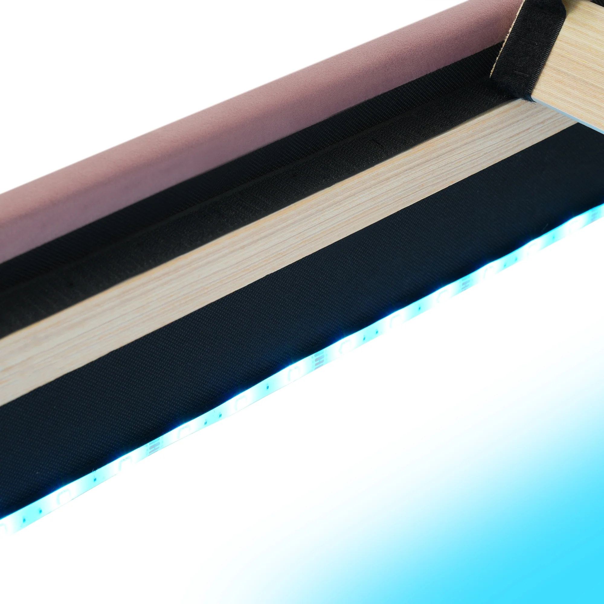 Full Size Velvet Upholstered LED Bed Frame - Adjustable Height Headboard, Pink