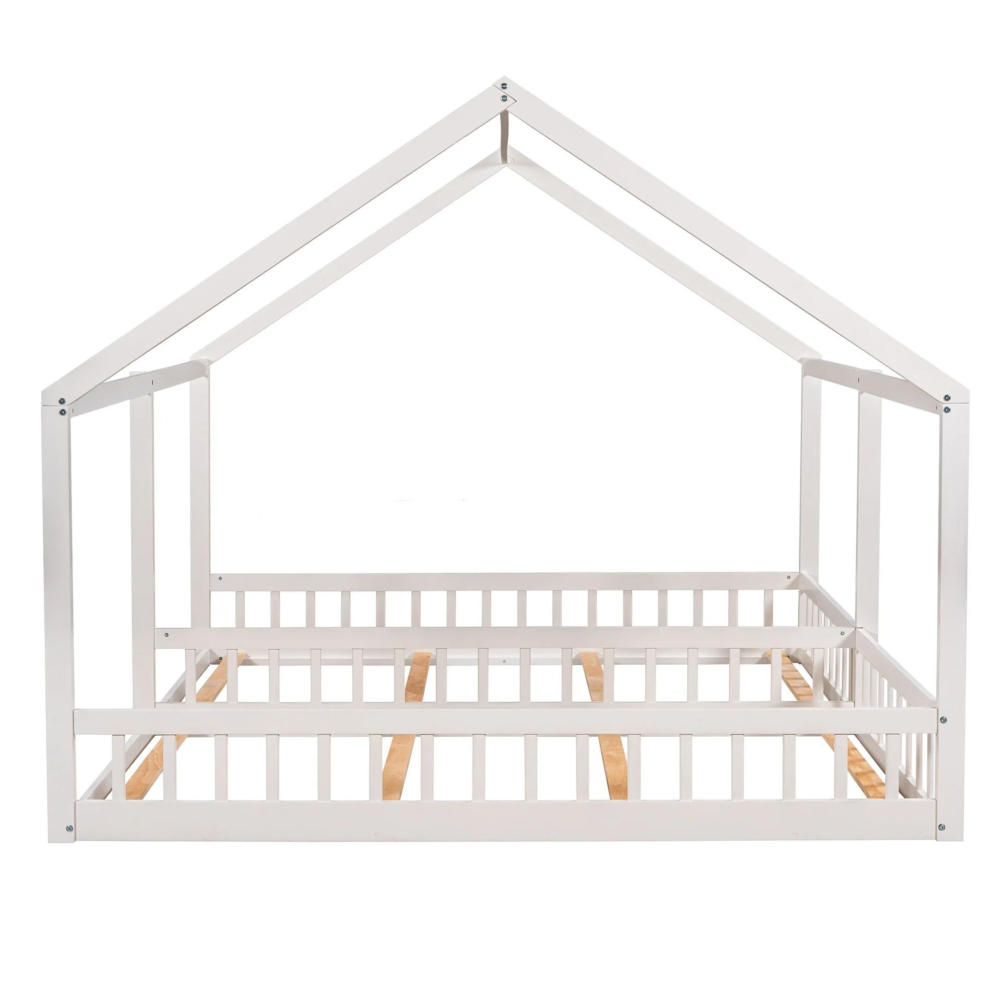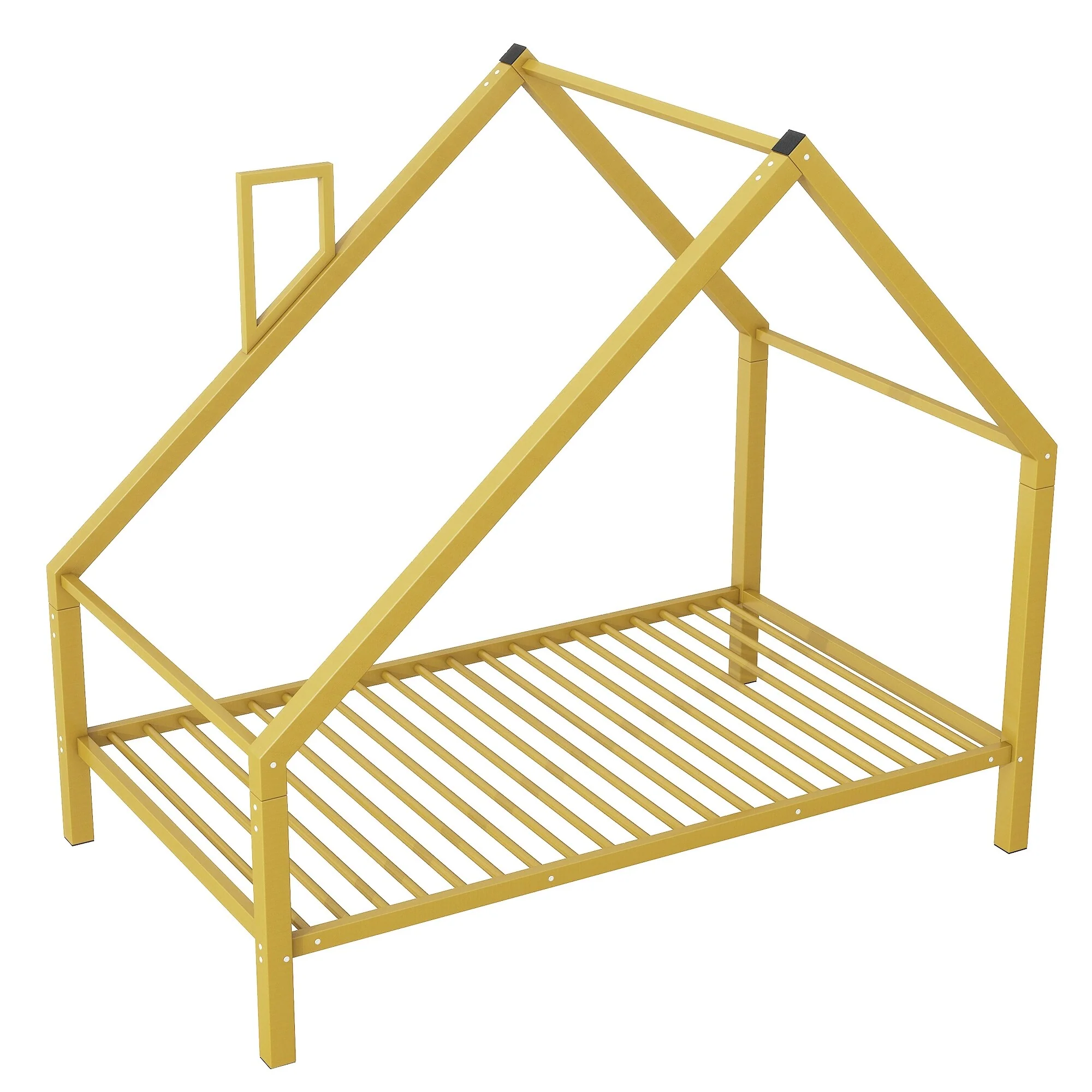 Twin Size Metal House Bed for Kids, Floor Bed Frame with Slats