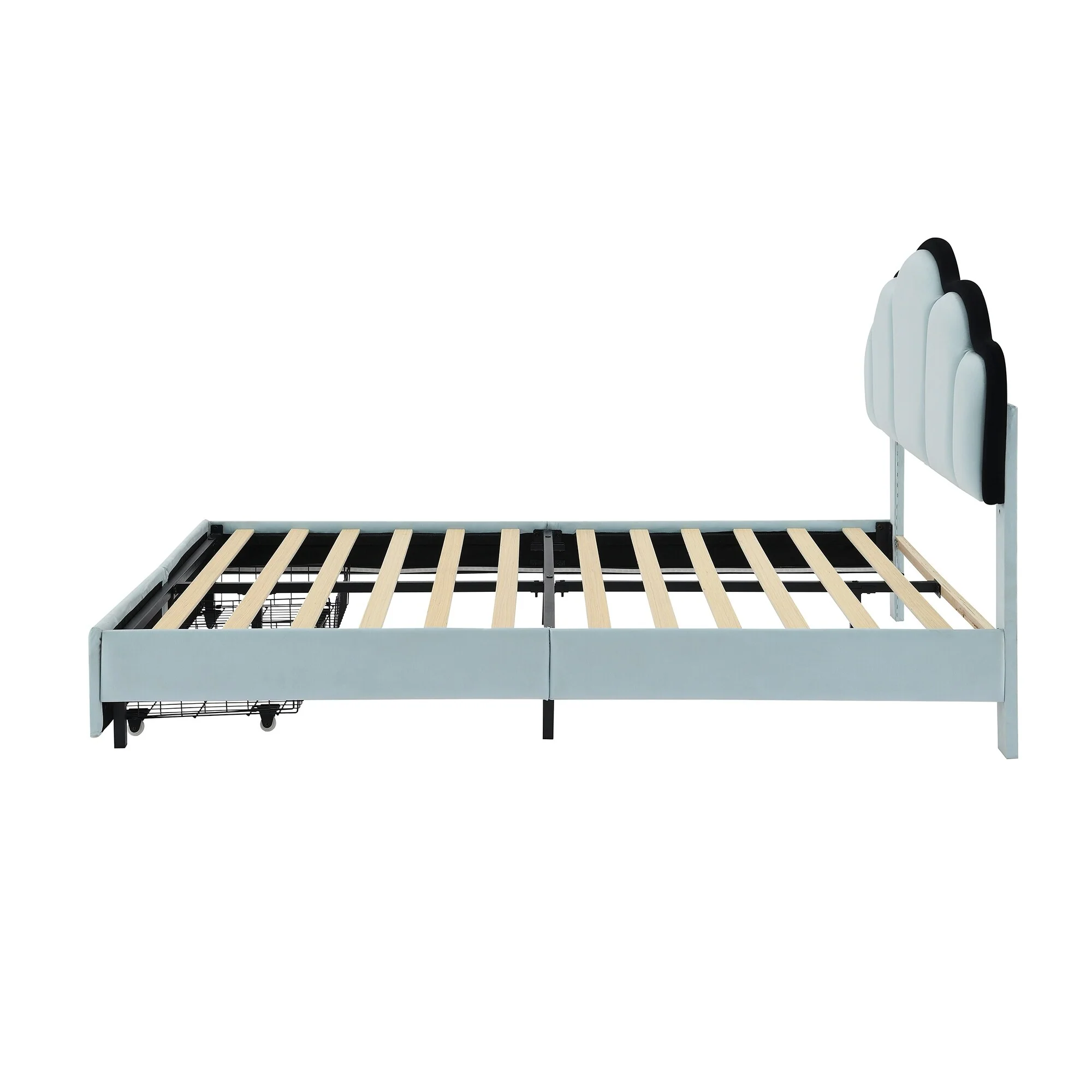 Queen Size Upholstered Platform Bed with Trundle and Headboard, Black