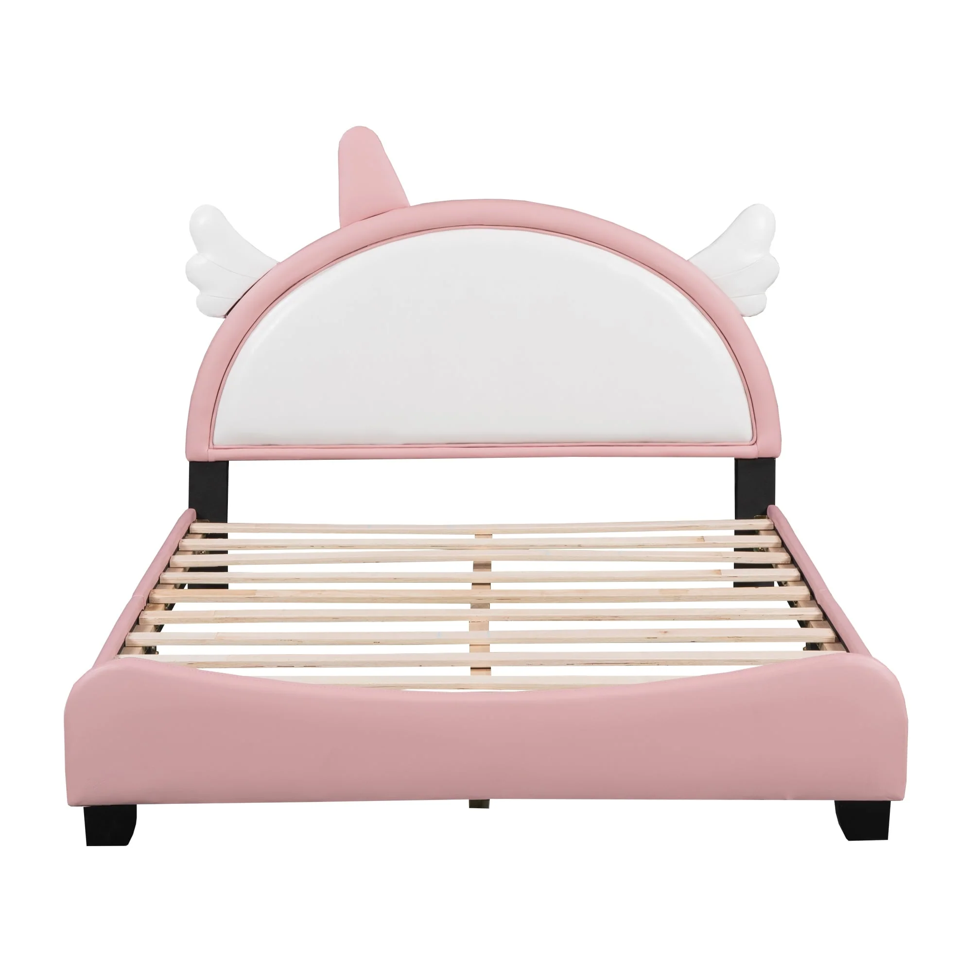 Full Size Pink Upholstered Bed with Unicorn Shape Headboard