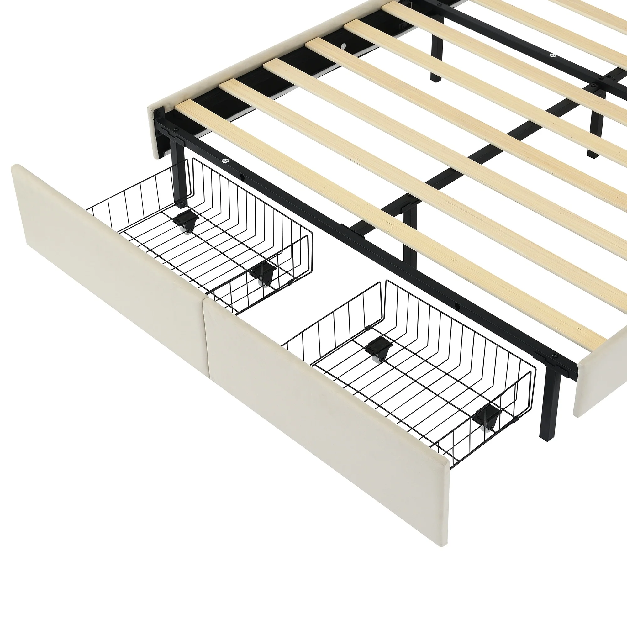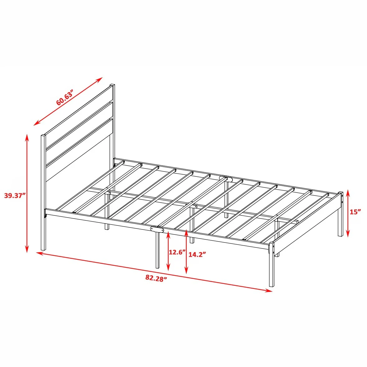 Sturdy Platform Bed Frame with Iron Bars and 12.6-Inch Underbed Storage