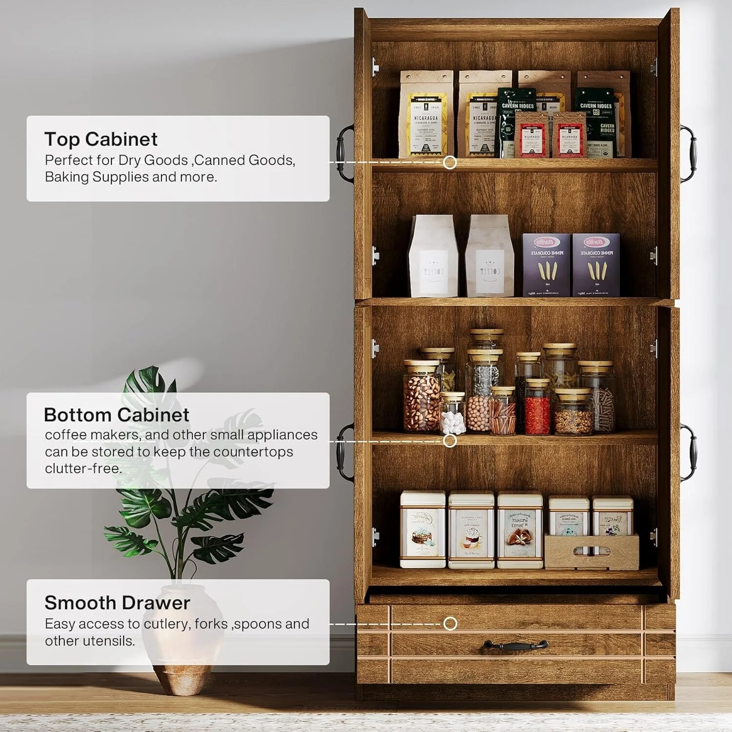 Tall Kitchen Pantry Cabinet, Freestanding Storage Cabinet, Bathroom Storage Cabinet with Doors