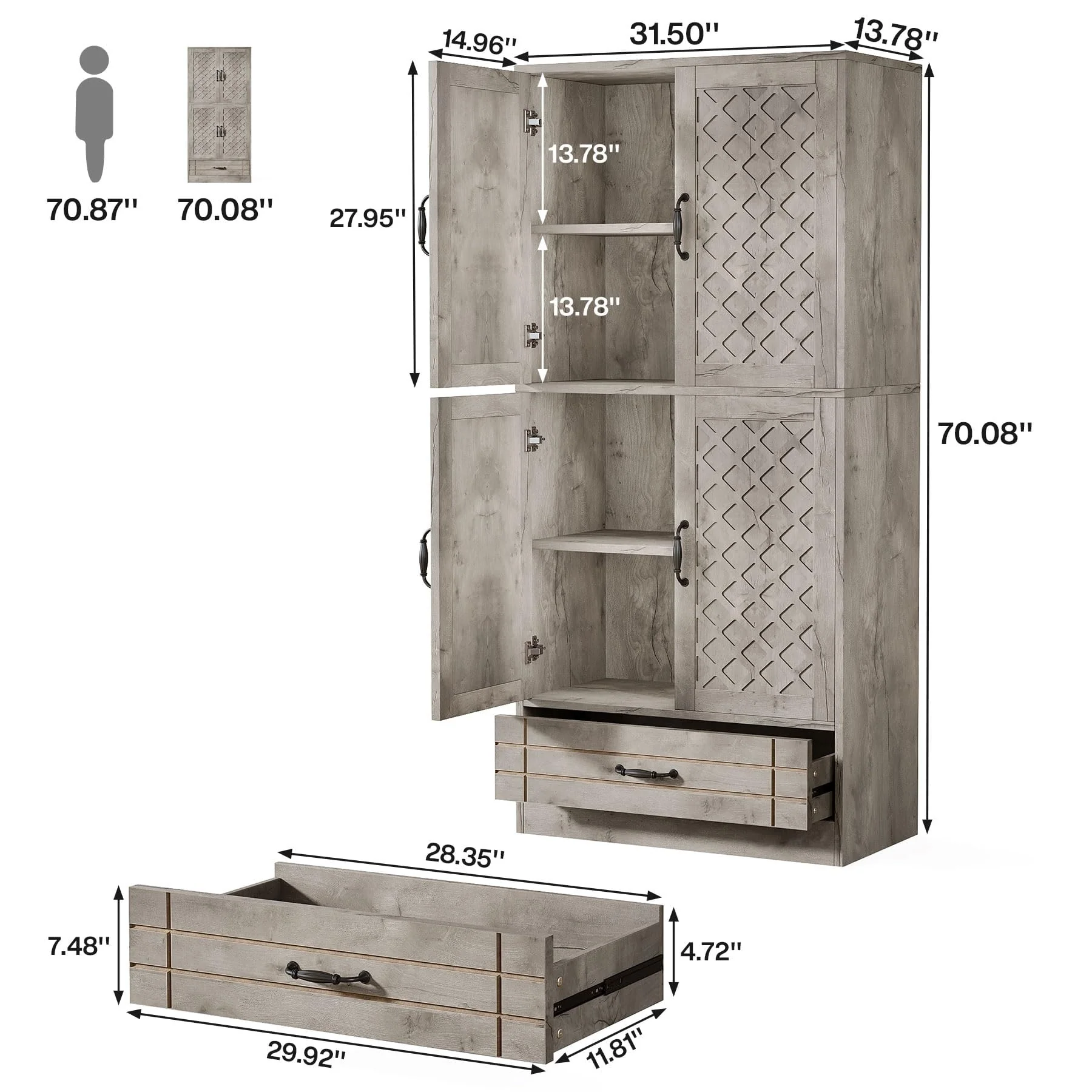70-Inch Kitchen Pantry Cabinet, Tall Bakers' Rack Kitchen Cabinet with Doors and Drawer - N/A